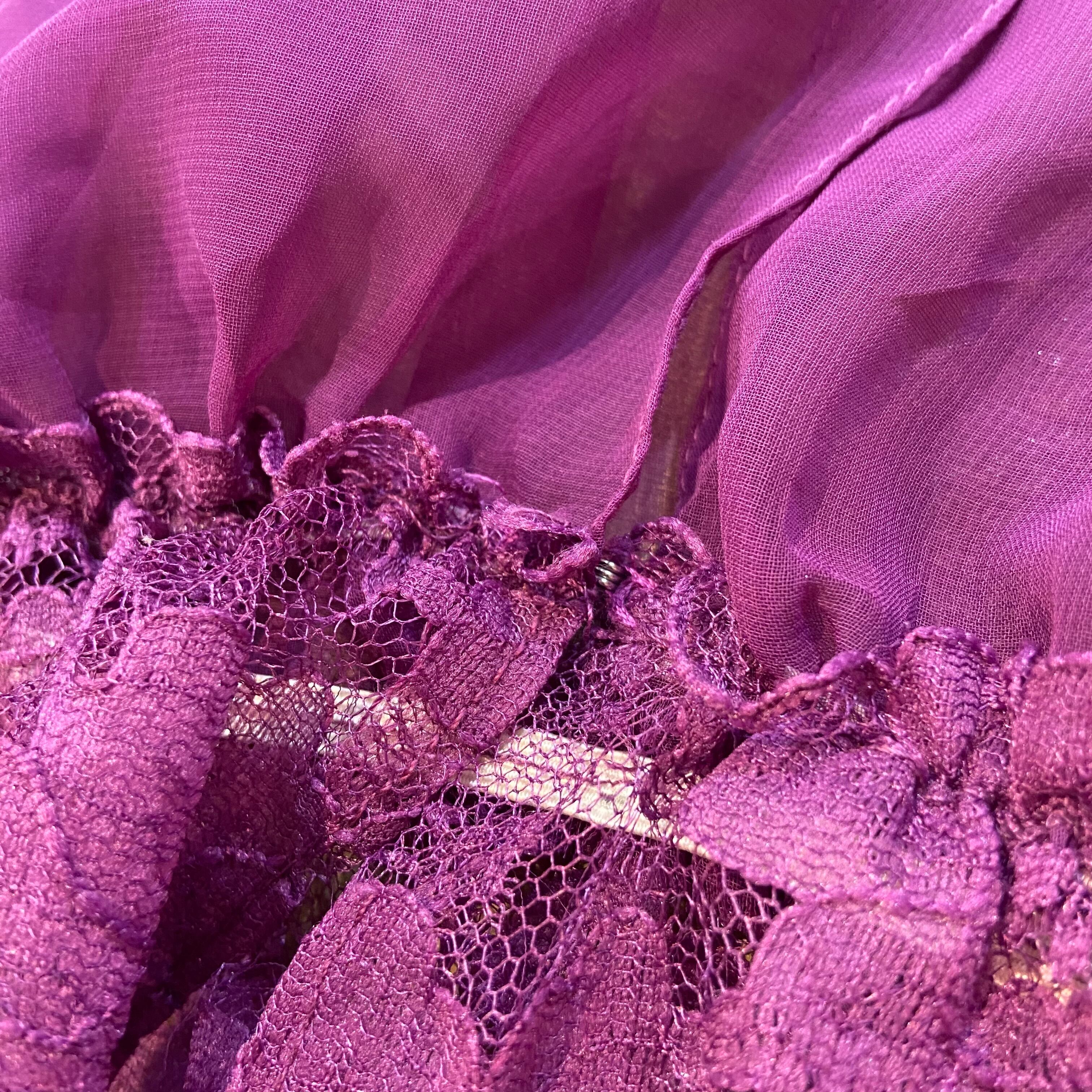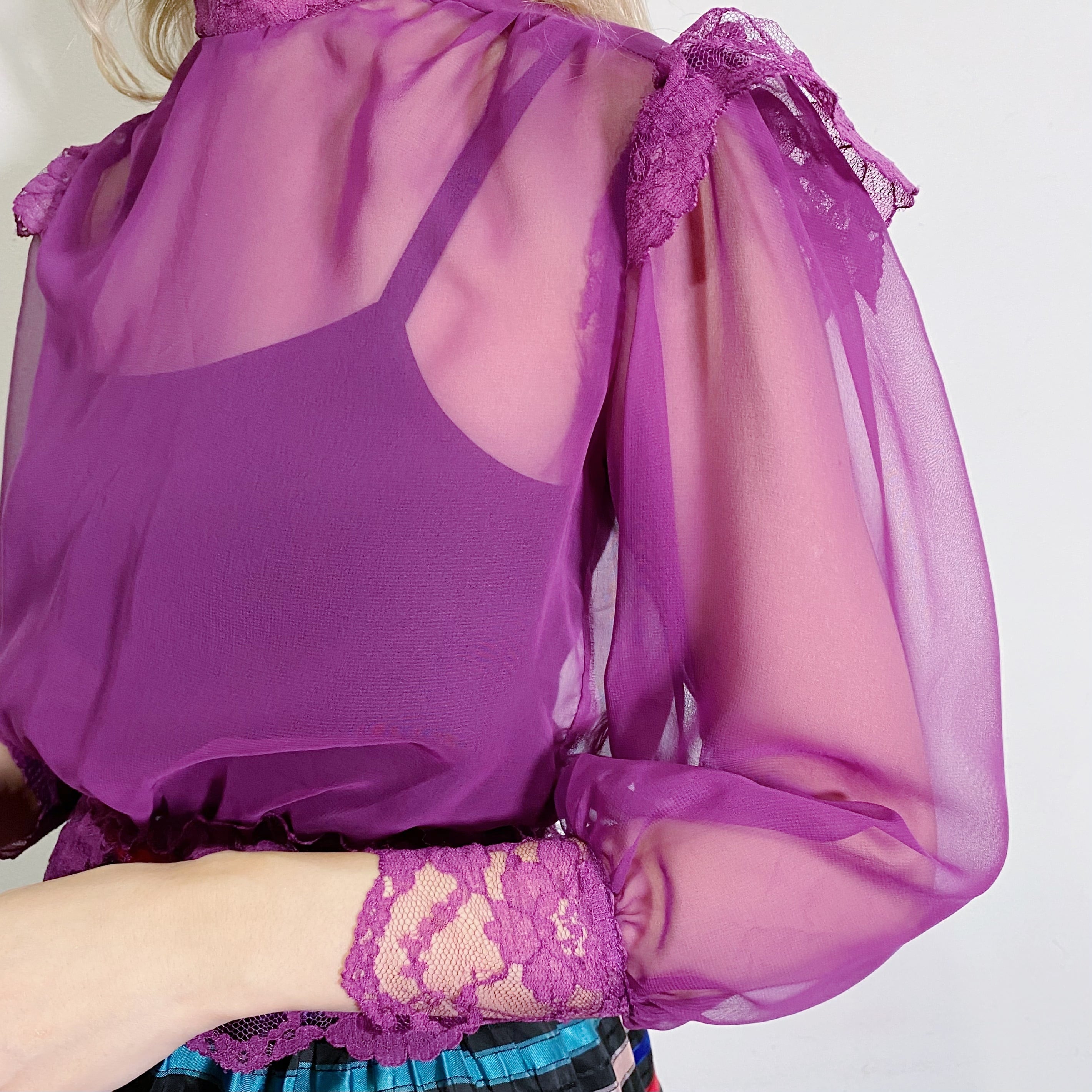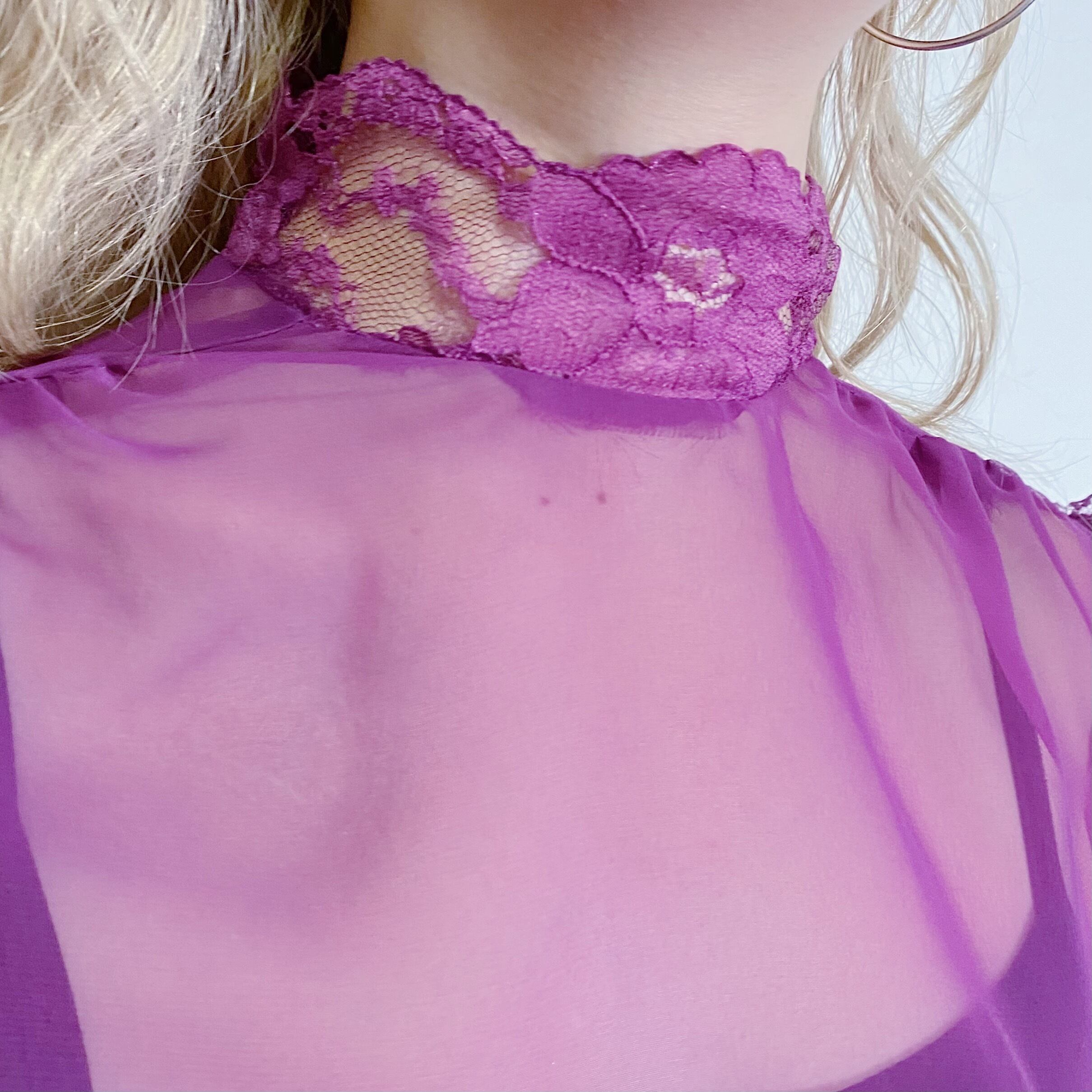 綺麗なパープルカラーに、ぽわんとしたお袖にペプラムになった裾のレースが魅力的。