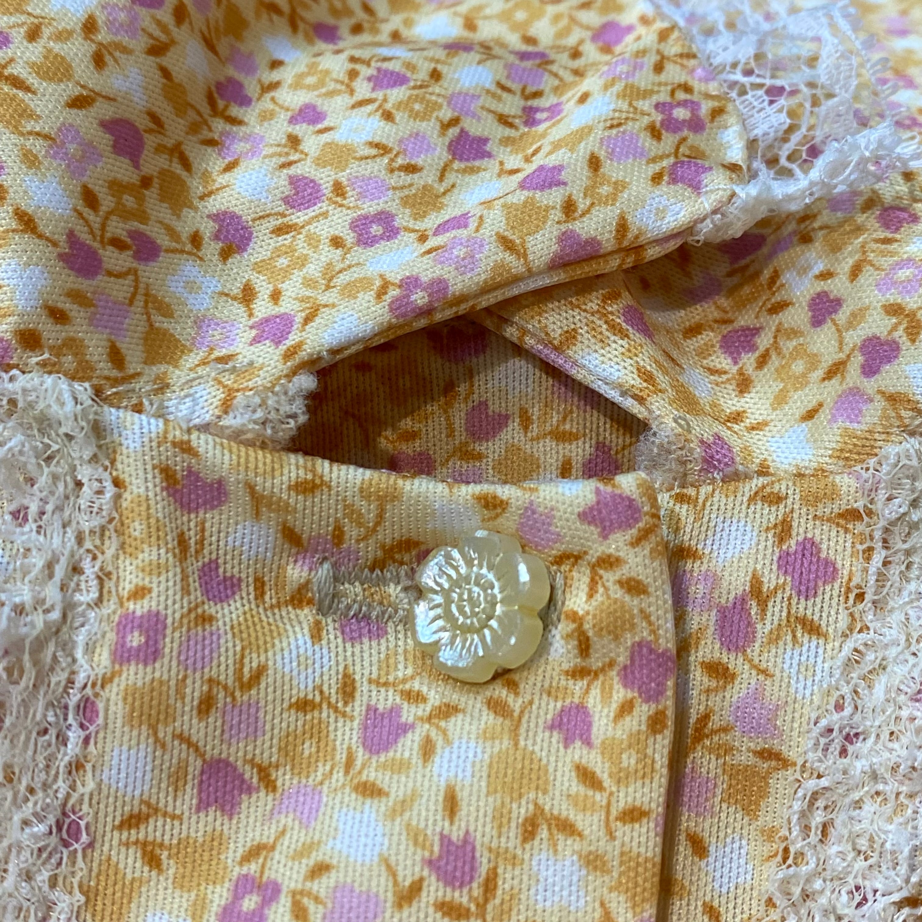 イエローベースに小花柄が可愛い、70年代のワンピースです。