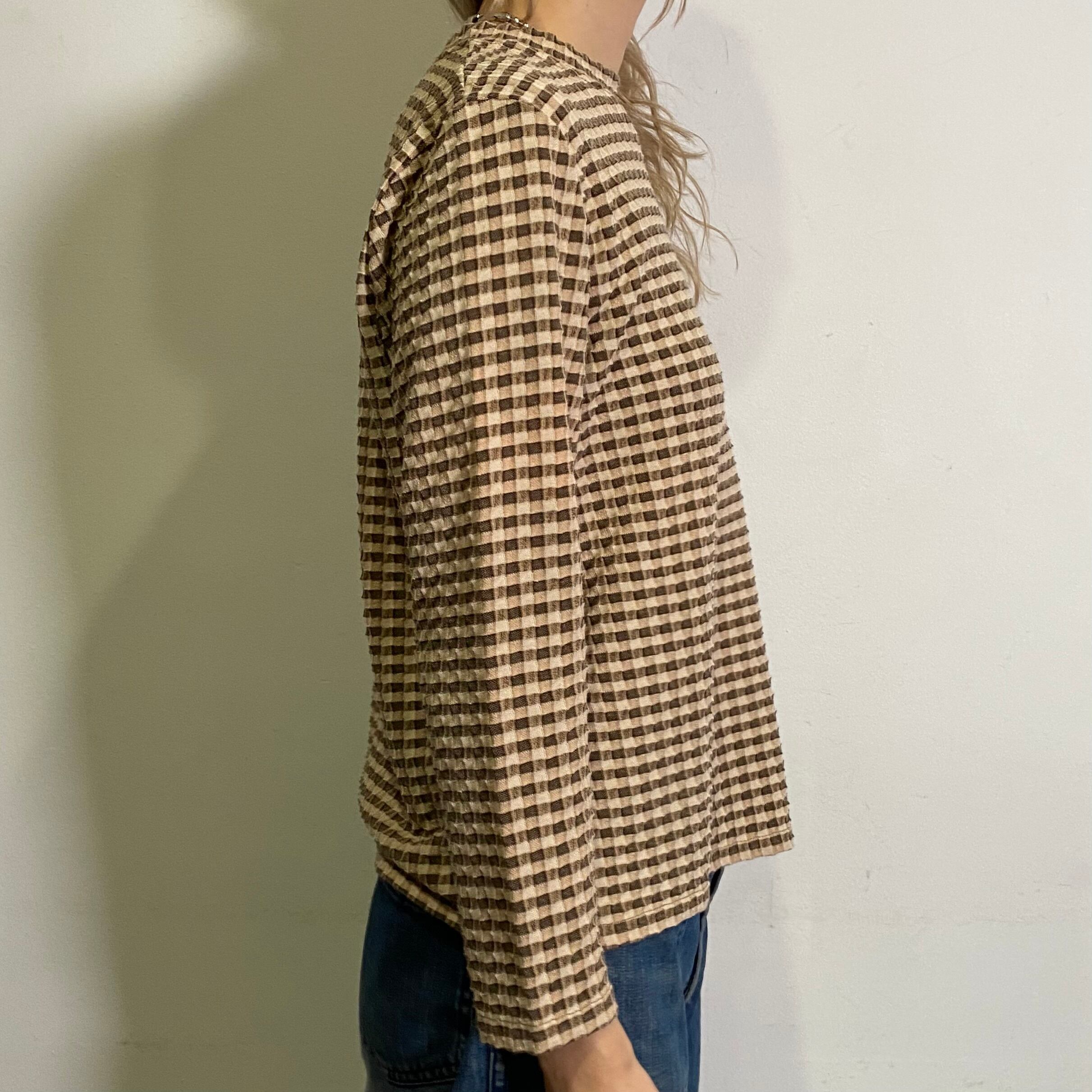 総柄ではありますが着こなしやすい色合いで、コーディネートしやすい一枚ですよ。
