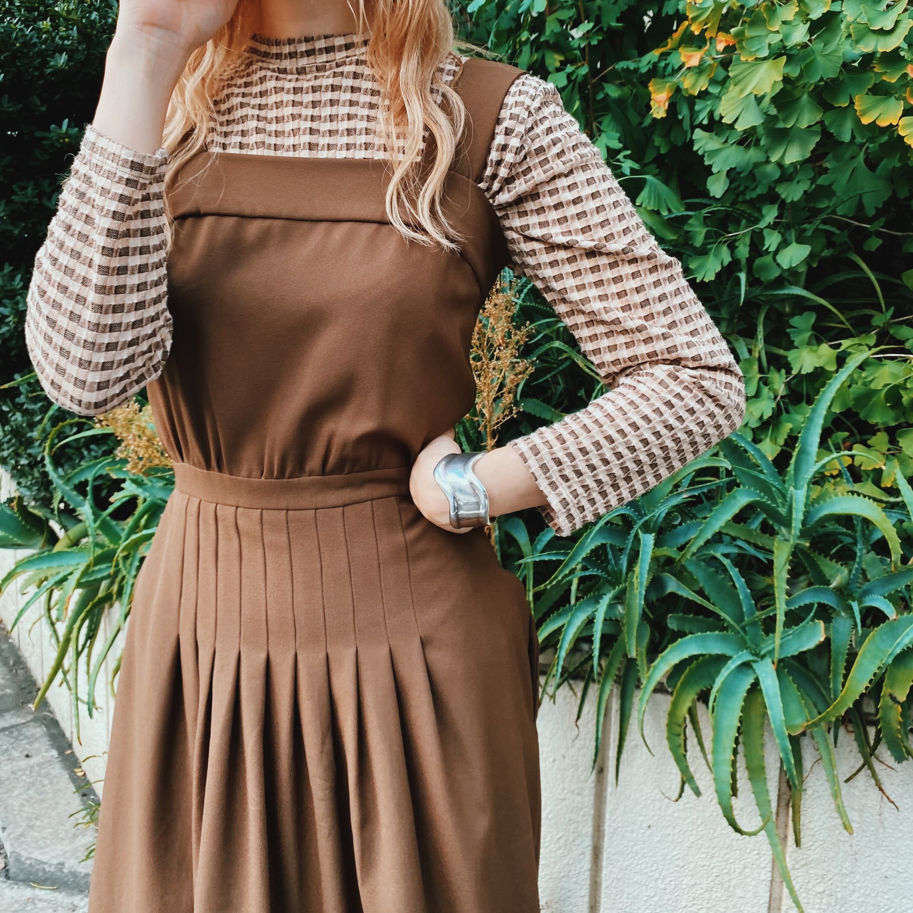 トップスメインの着こなしも、着用写真のようにキャミワンピースやオーバーオールなどのインナーにもおすすめです。