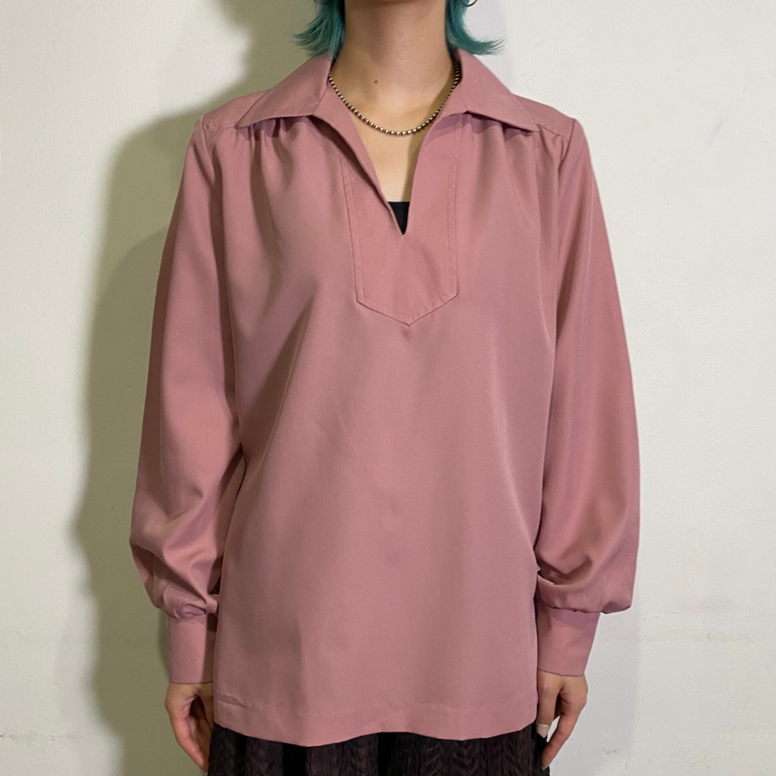 スモーキーな色合いのピンクが可愛い、70年代のプルオーバーシャツです。