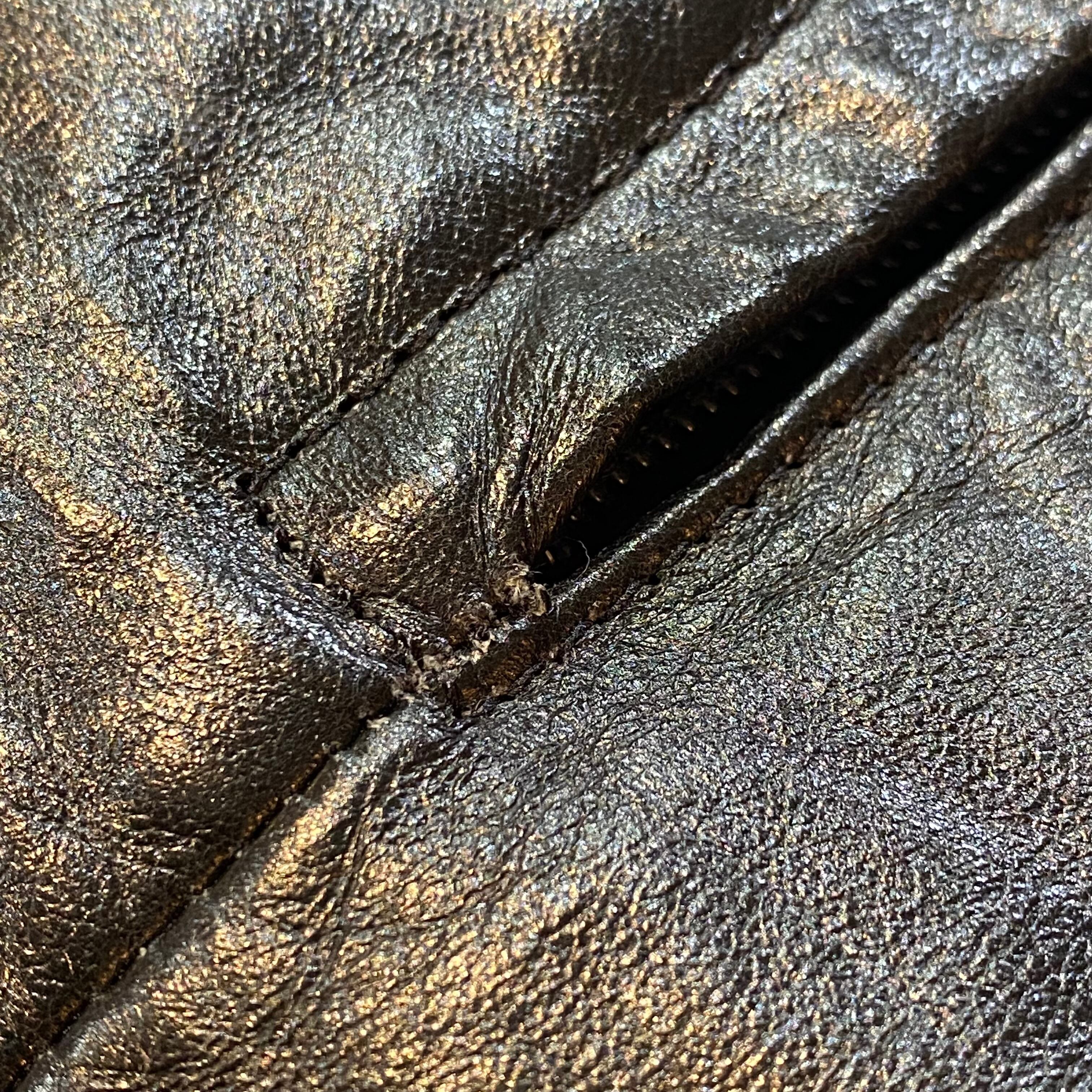 レザー特有のシワやキズが見受けられますが、あまり気にならない程度かと思われます。