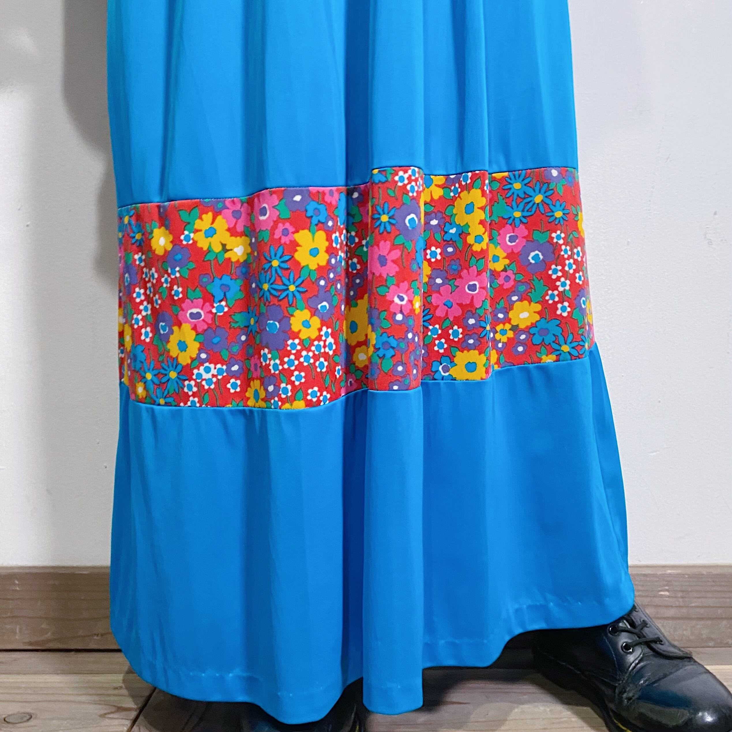 鮮やかなブルーとレッドの切り替えが可愛い、70年代のワンピースです。