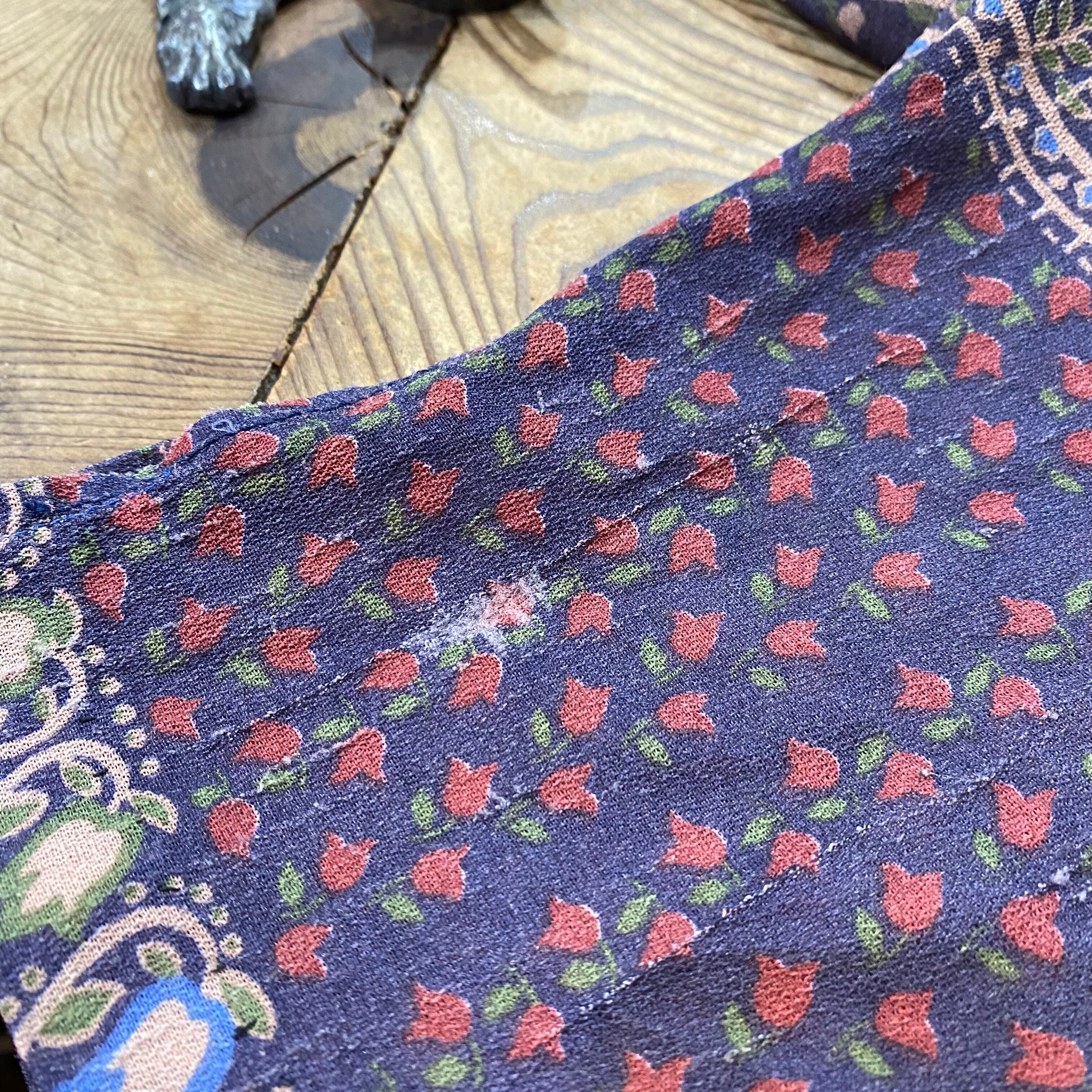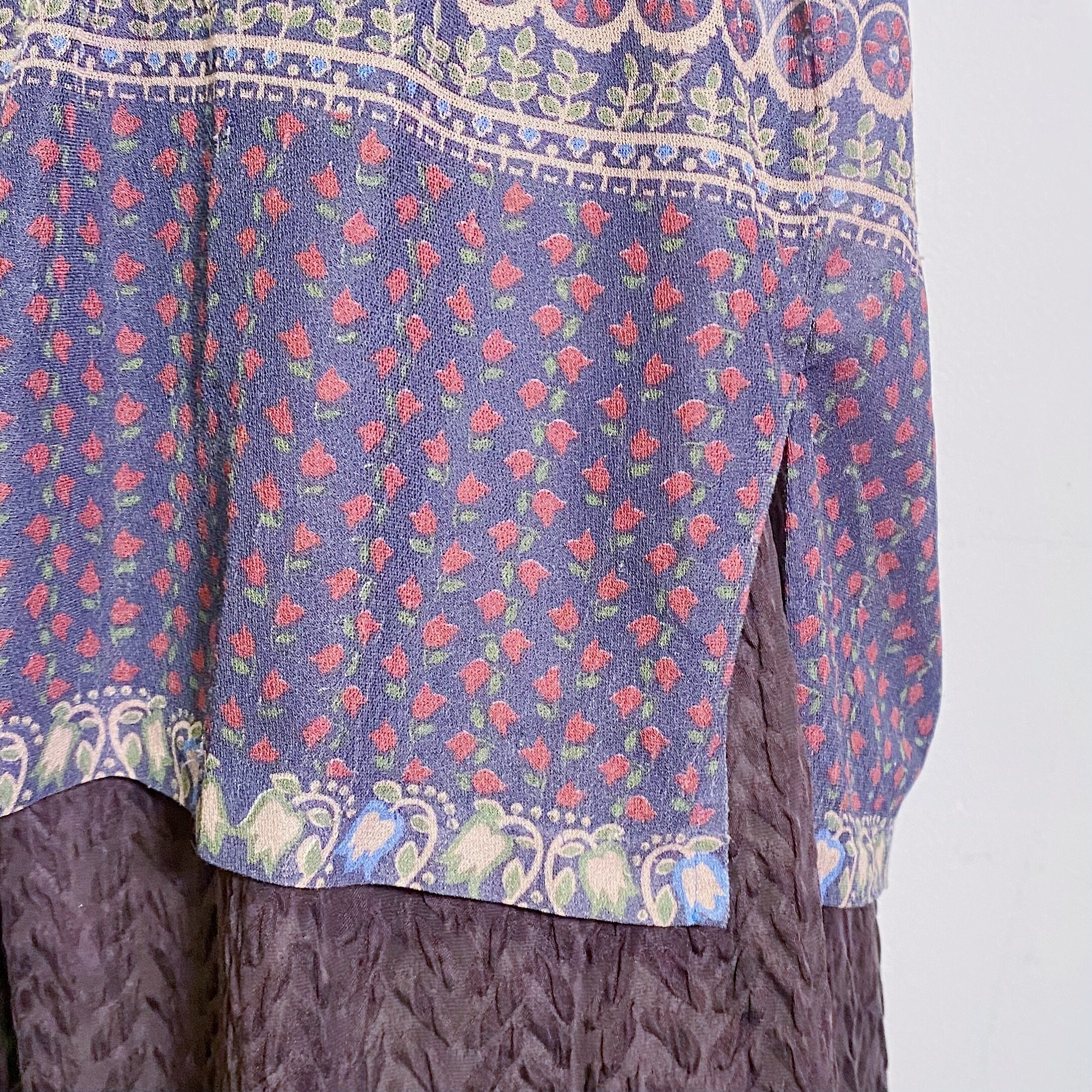 まるで花壇のようなテキスタイルが可愛い、70年代のトップスです。