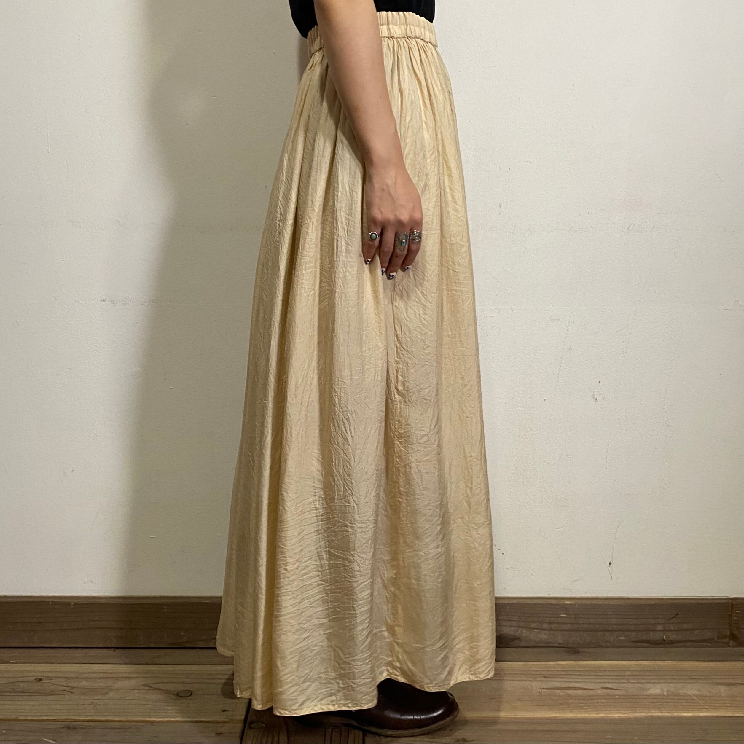 無地なので柄トップスとの相性も抜群ですし、合わせやすいので持っていて損のないスカートです。