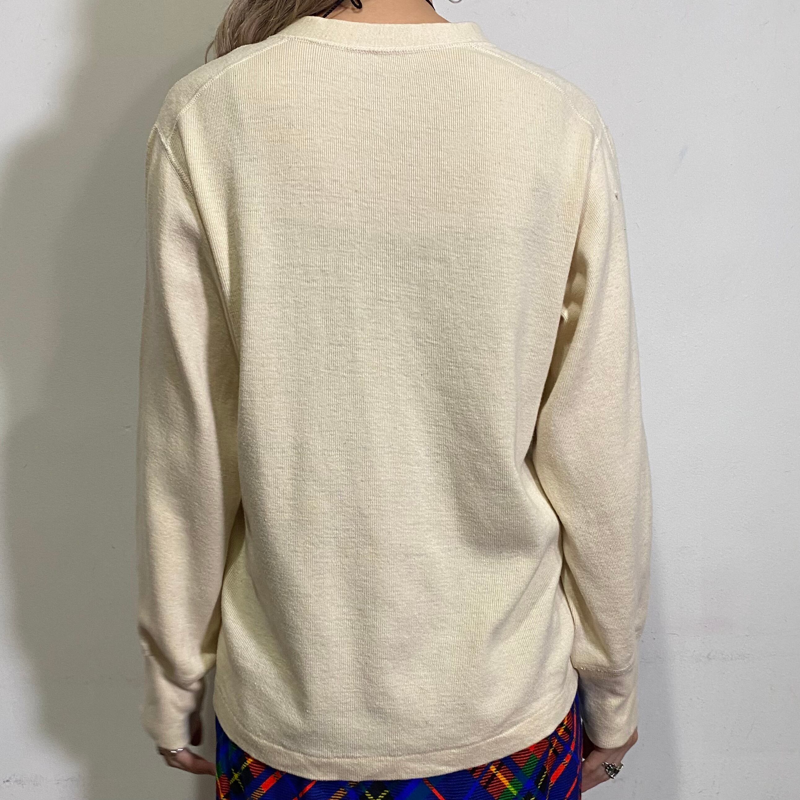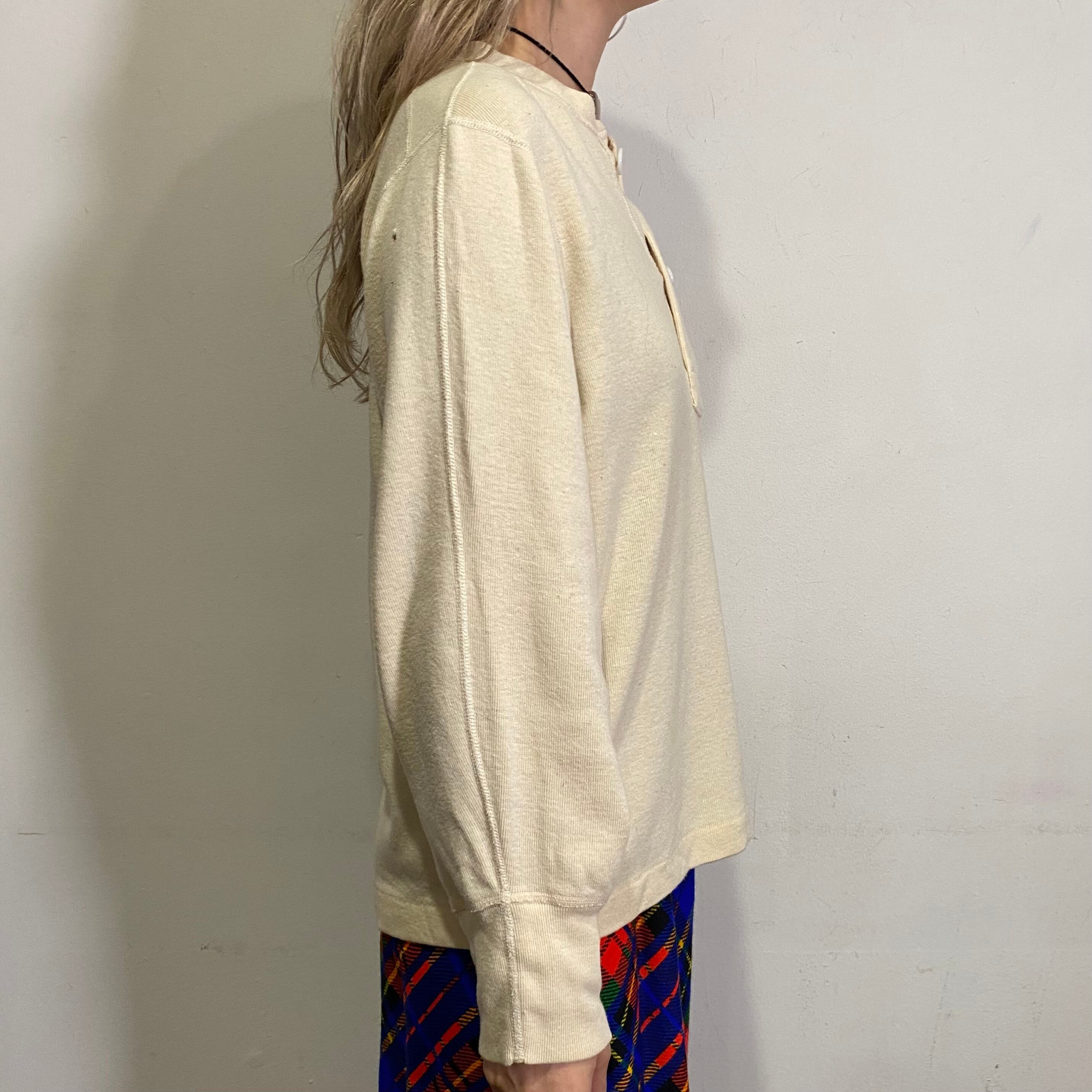 真っ白ではなく生成りっぽい色合いで着こなしやすい、70年代のアメリカ軍のサーマルトップスです。