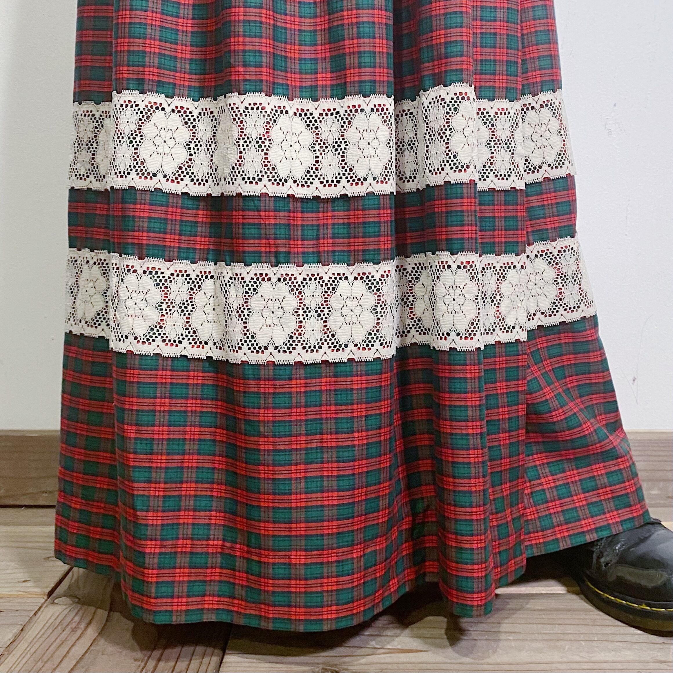 レッドとグリーンの色合わせが可愛い、70年代のチェックスカートです。