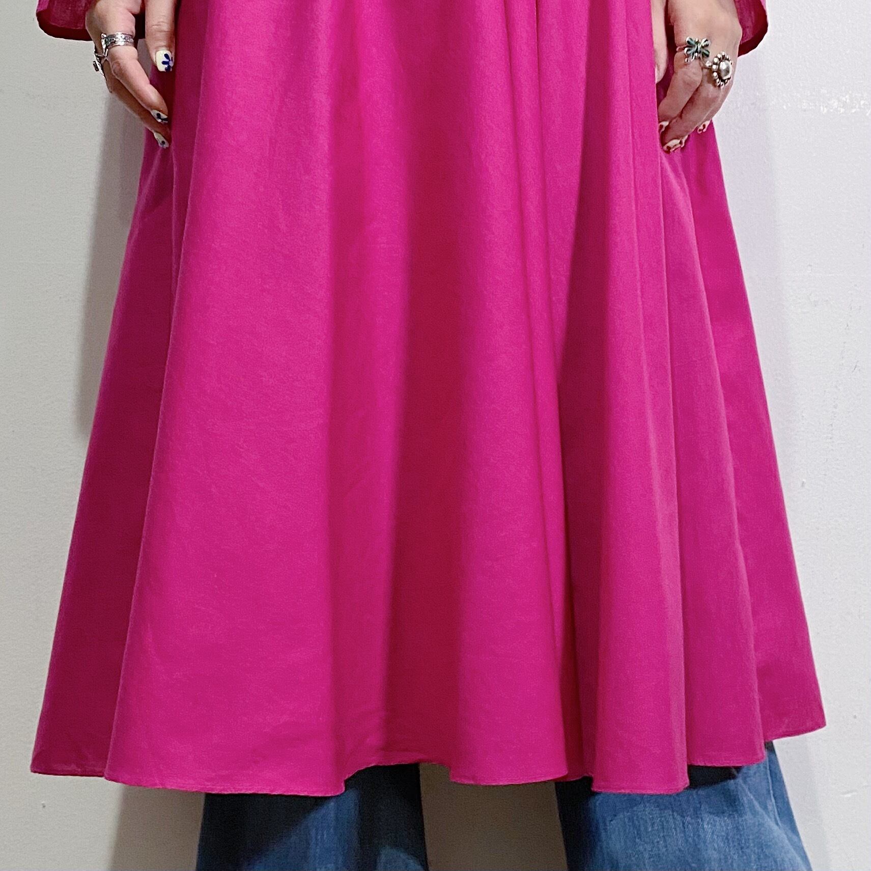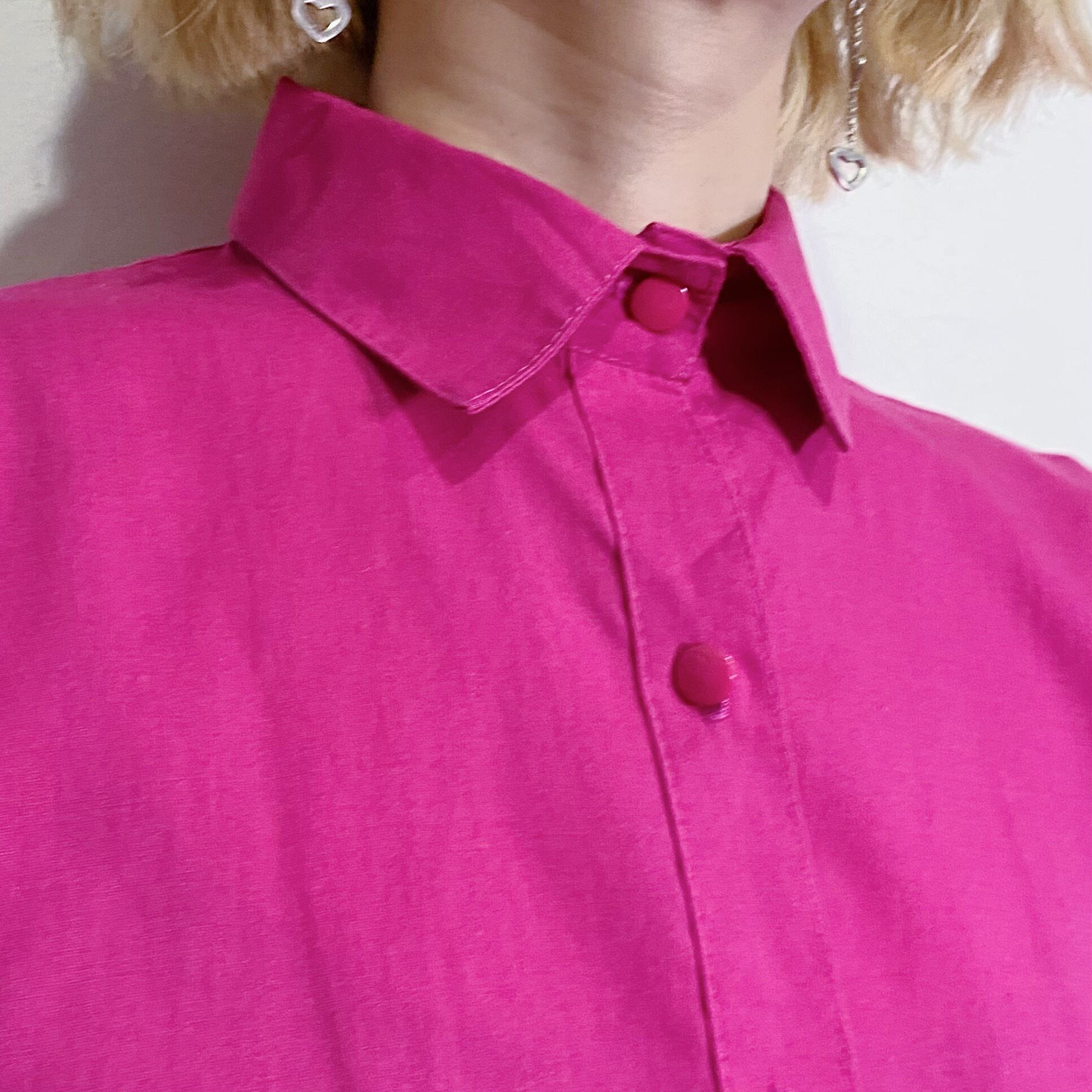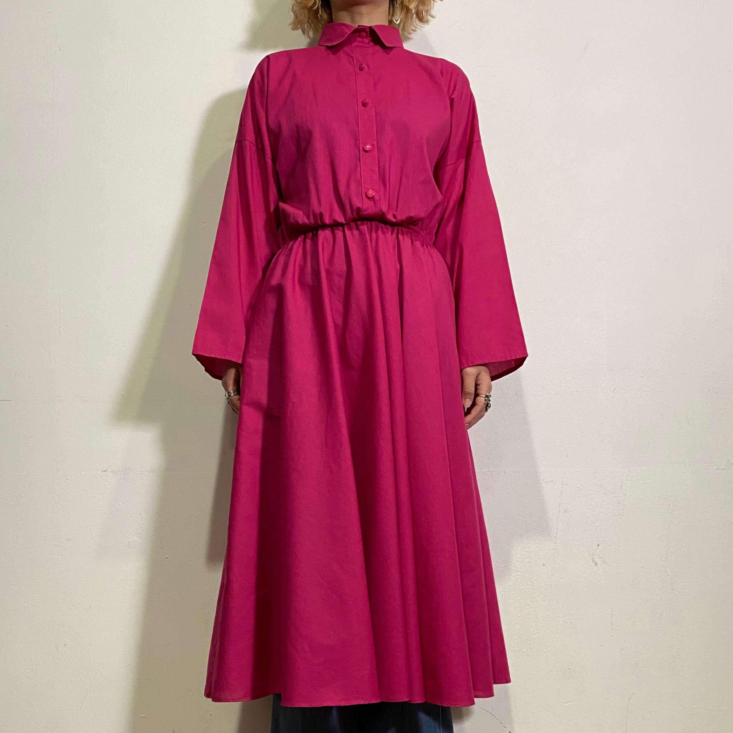 鮮やかなショッキングピンクの色合いが可愛い、80年代のシャツワンピースです。