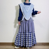 ブルー×ホワイトのギンガムチェックが可愛い、70年代のロングスカートです。