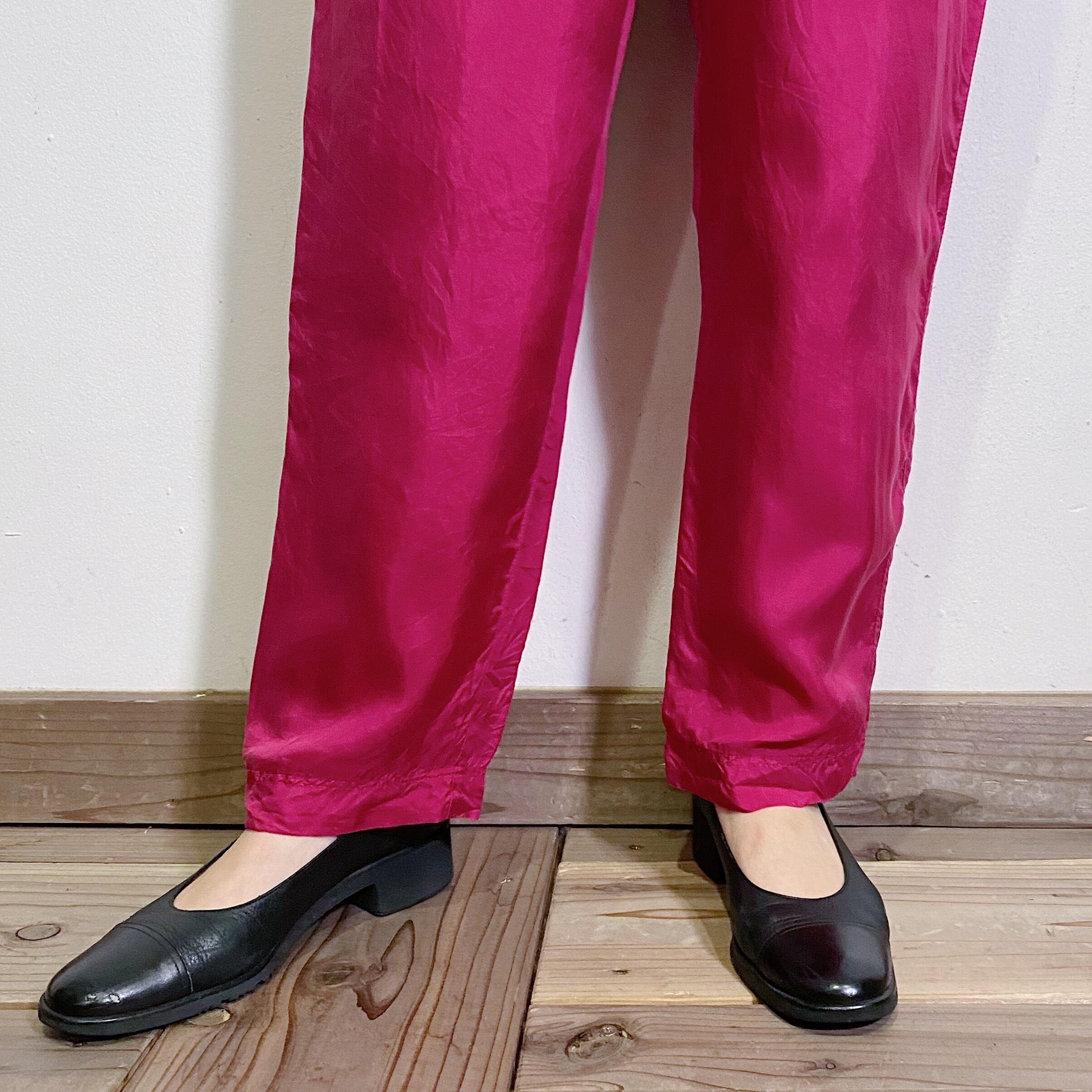 ボルドーとパープルの中間のような絶妙なカラーが可愛い、90年代のイージーパンツです。