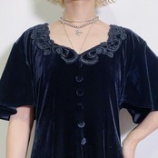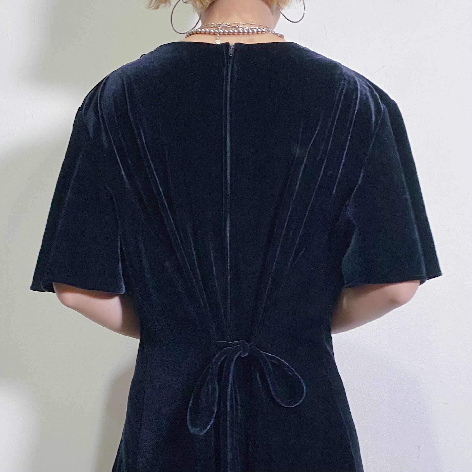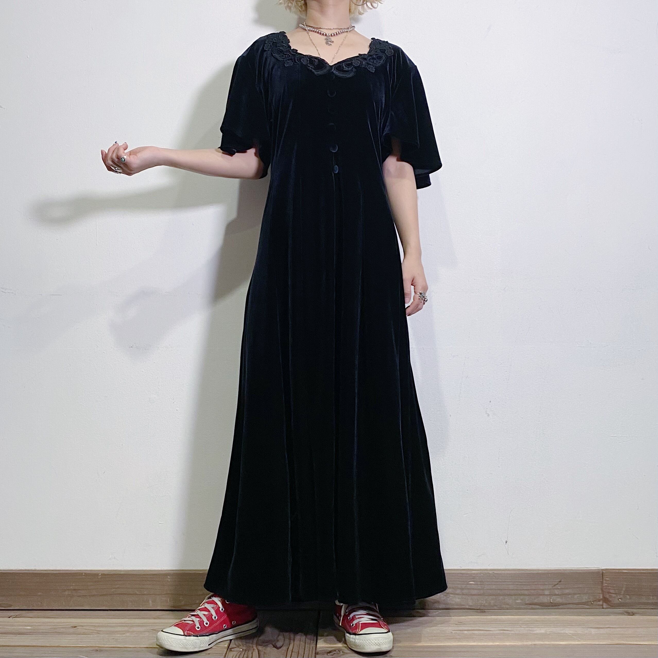 高級感のあるベロア素材がとっても可愛い、80年代のロングワンピースです。