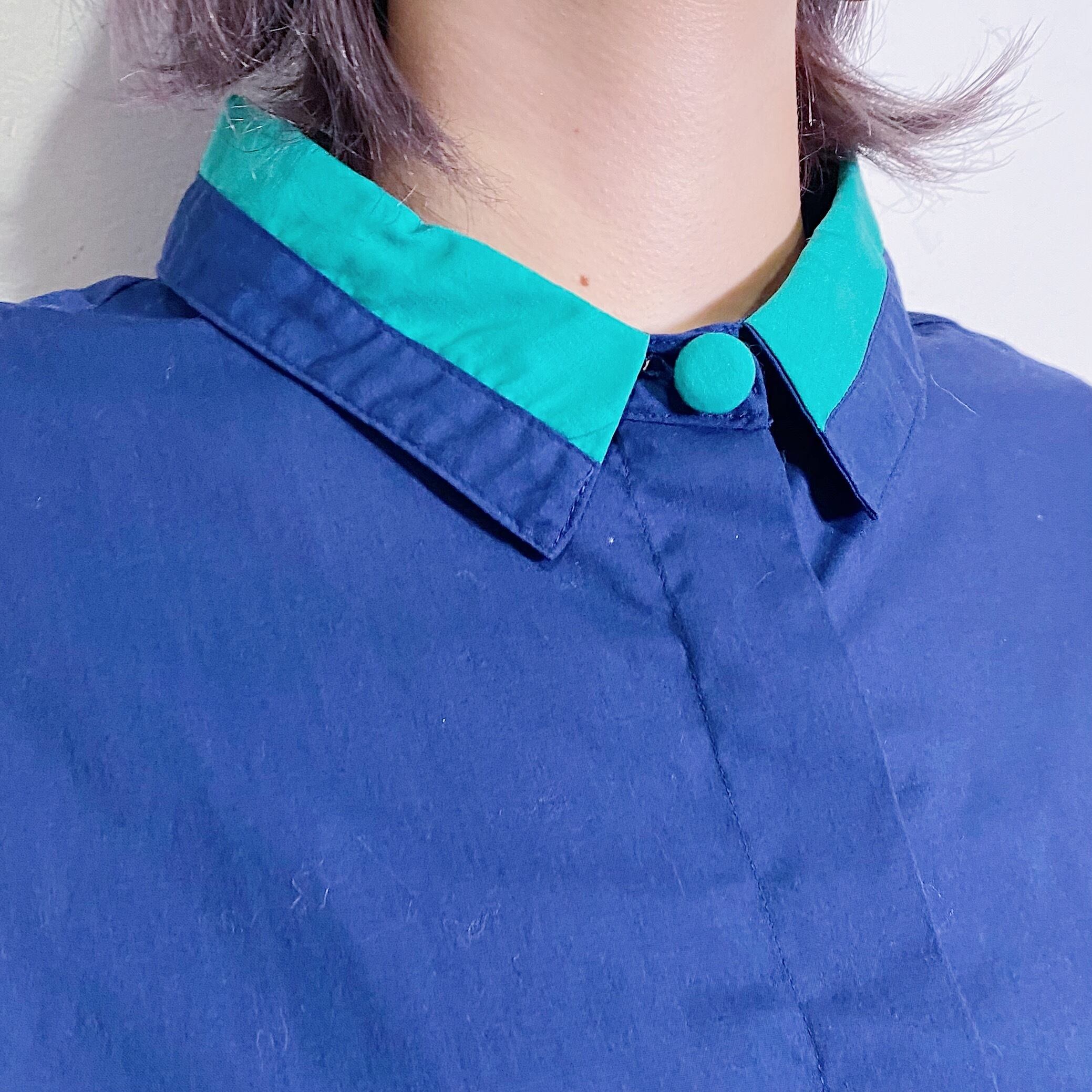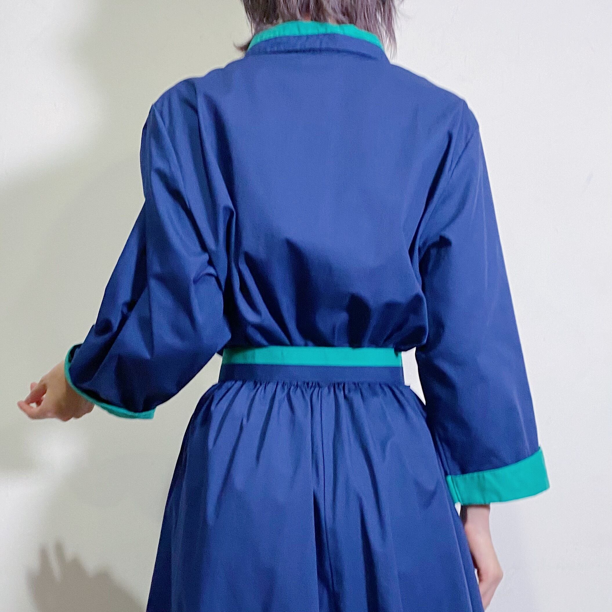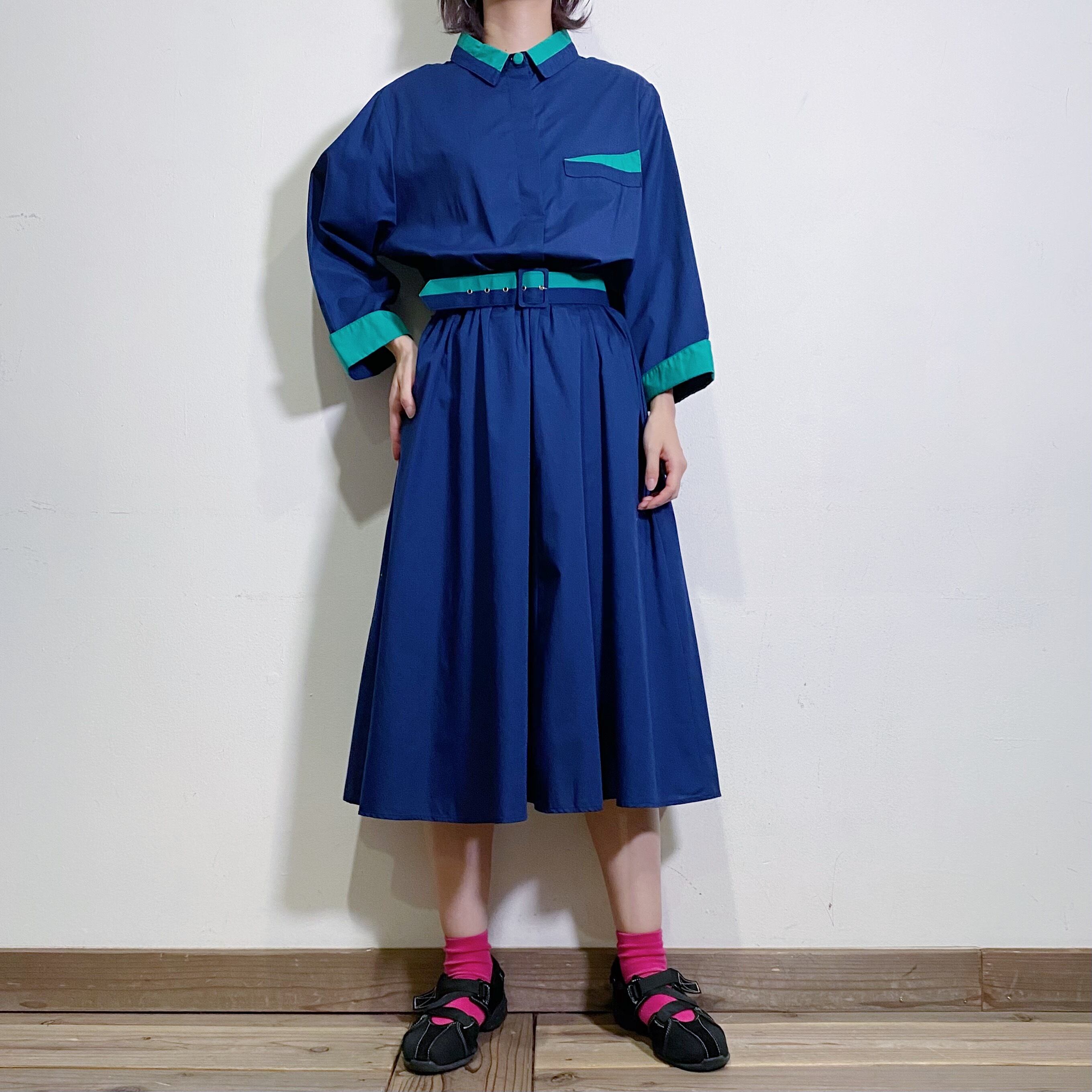 ネイビーとグリーンの組み合わせが可愛い、80年代のシャツワンピースです。