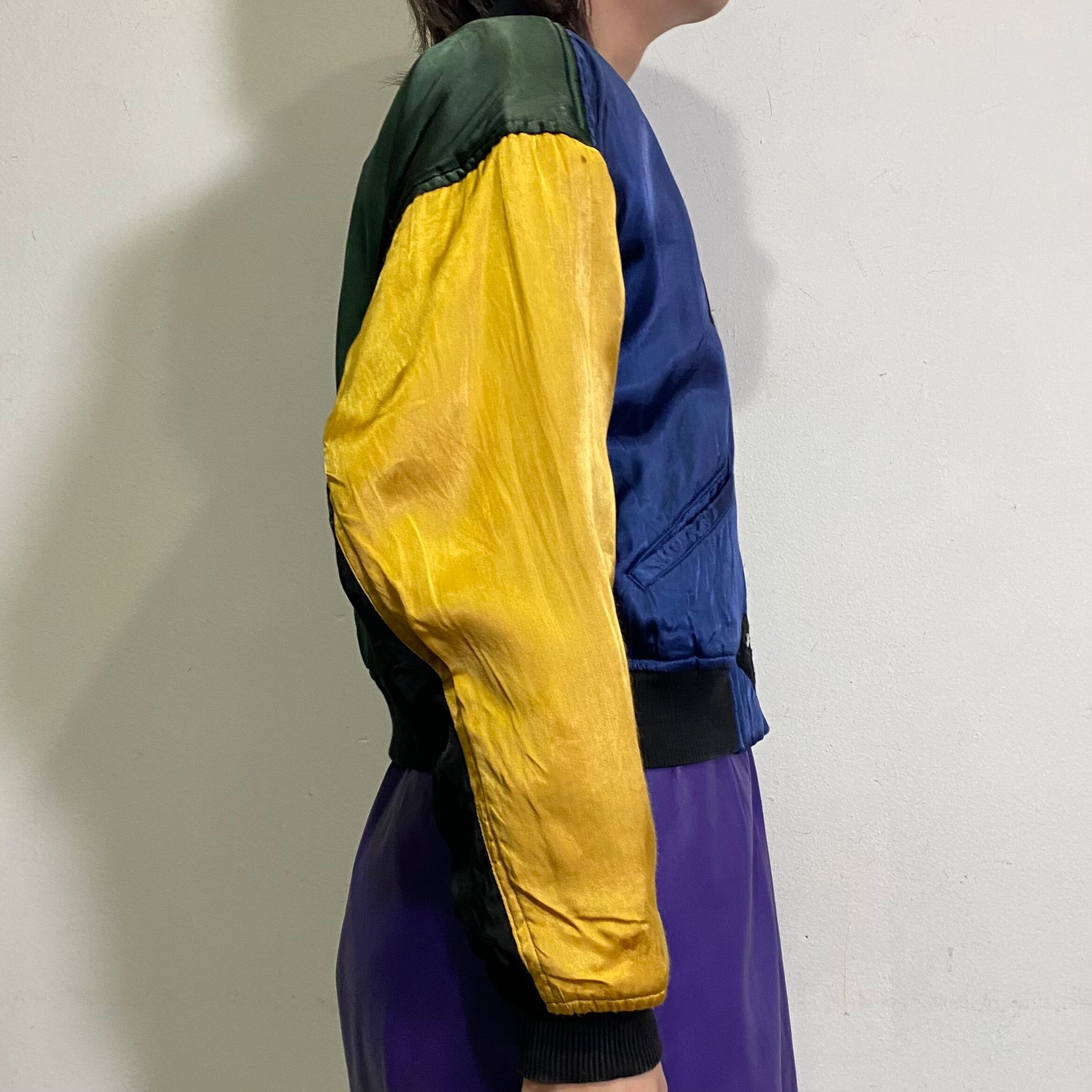 カラフルなサテン地のパッチワークが可愛い、80年代のブルゾンです。