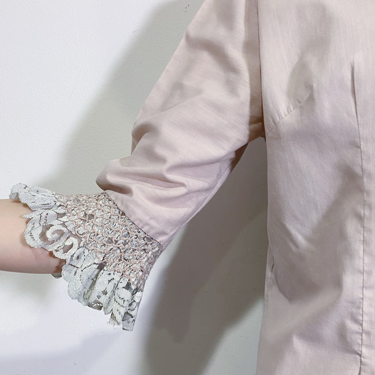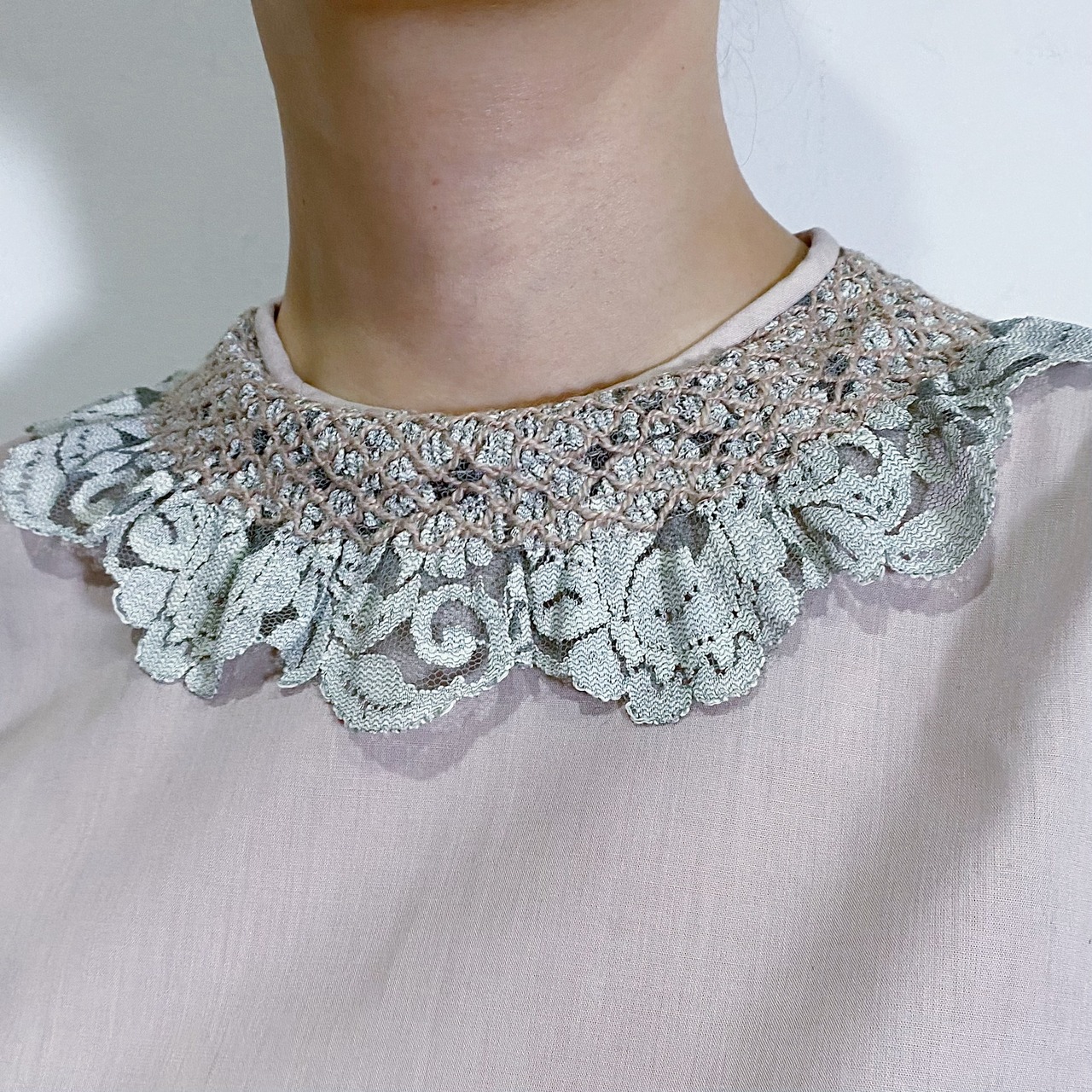 70s smoky pink lace collar blouse