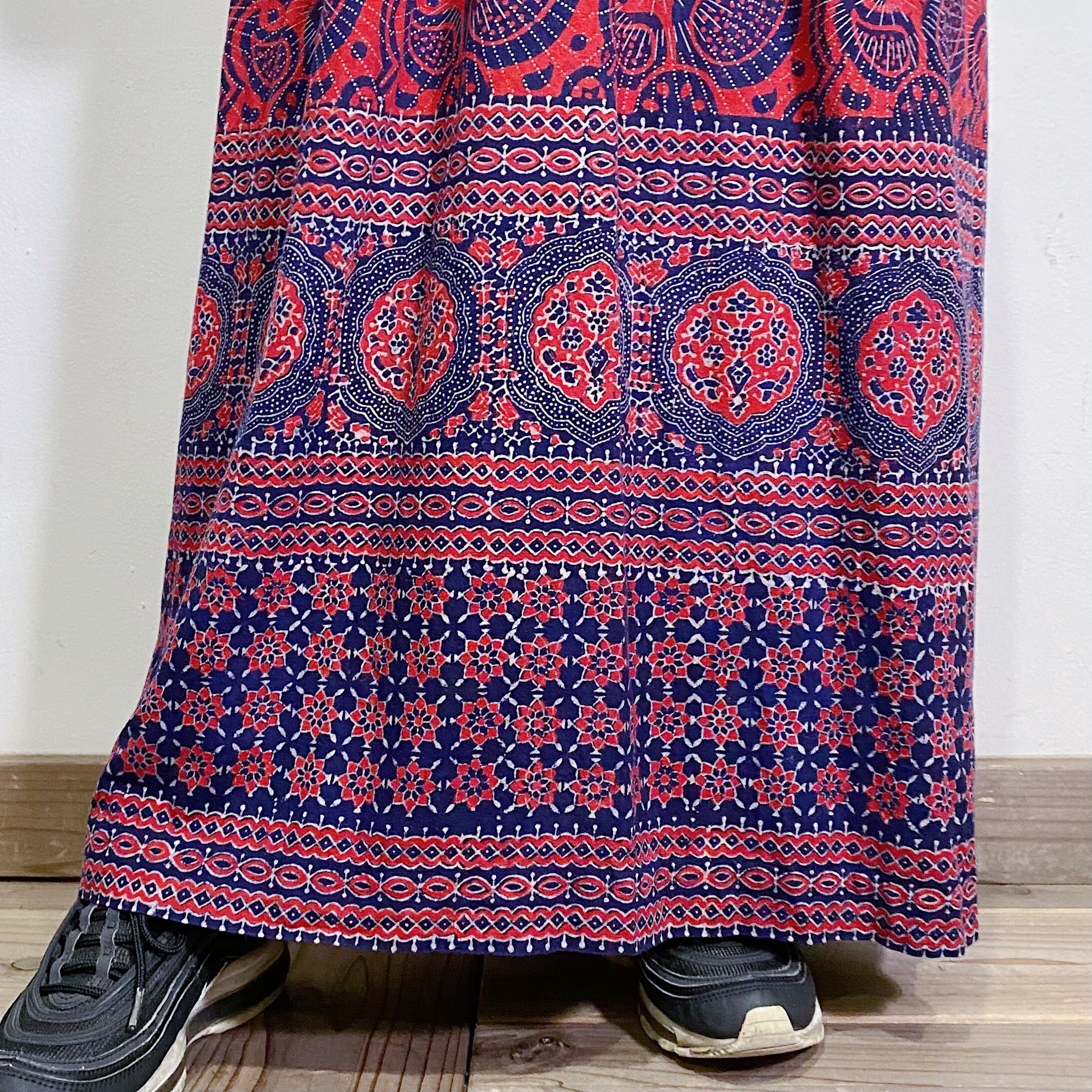 赤と青の組み合わせが可愛い、60年代のインドコットンのワンピースです。