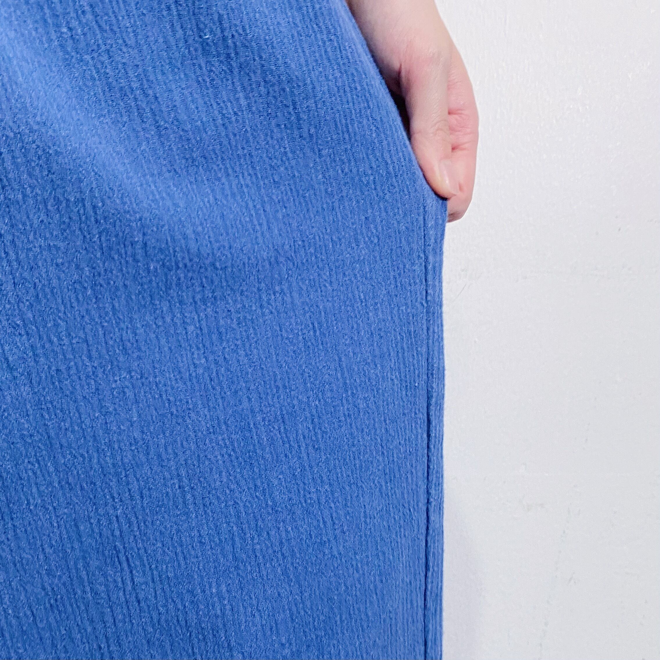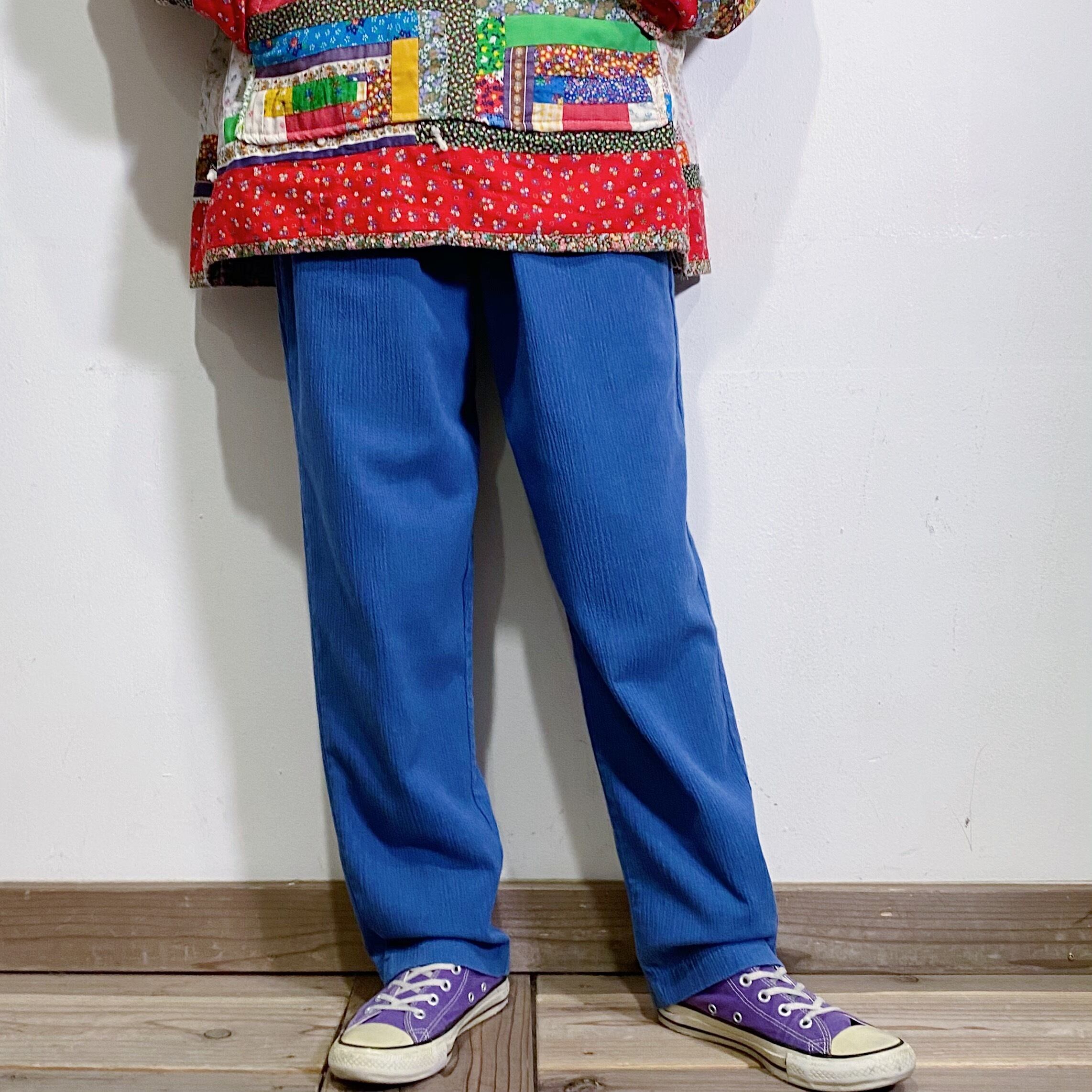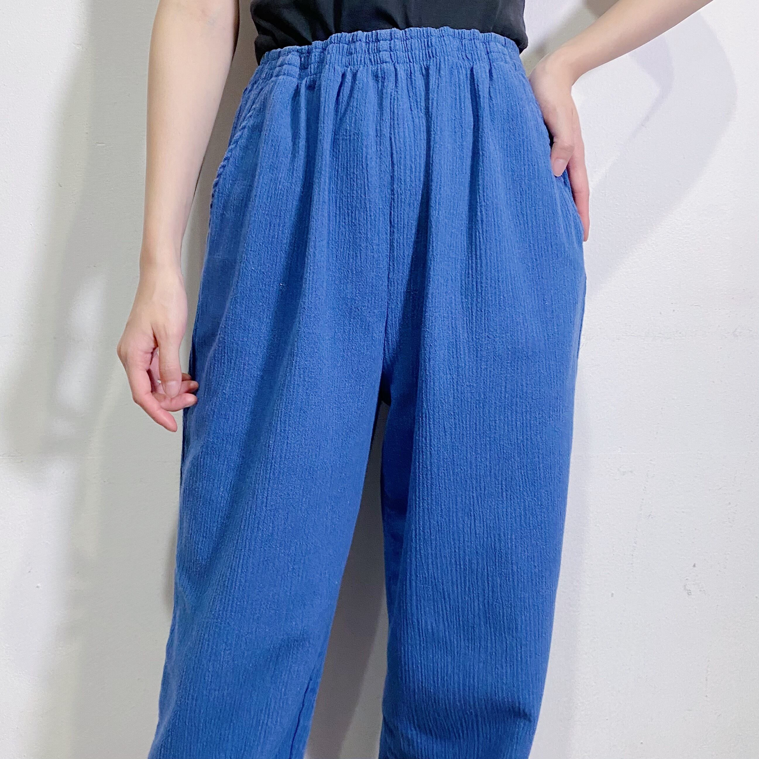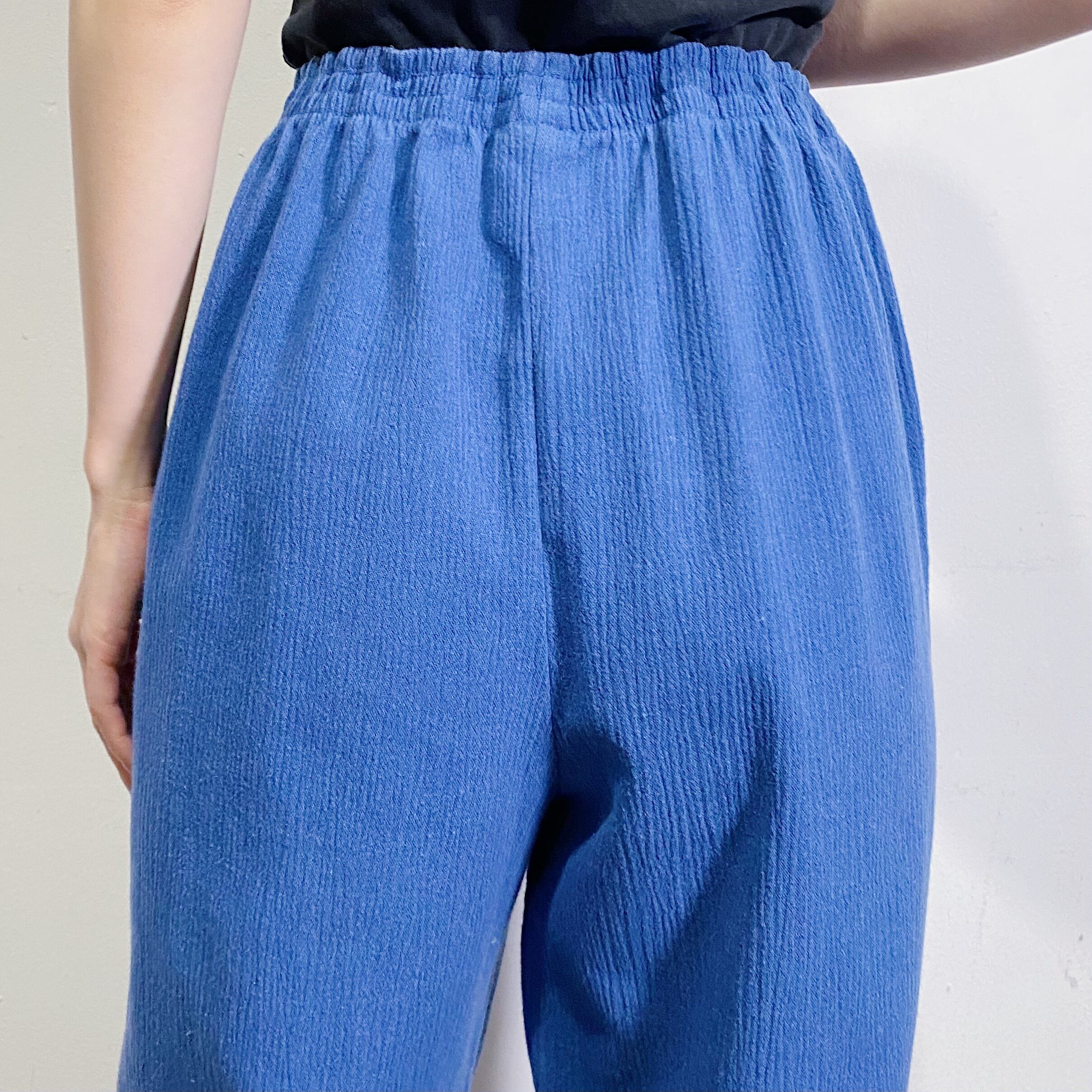 ウエストがゴムで楽ちんな、ブルーのイージーパンツです。