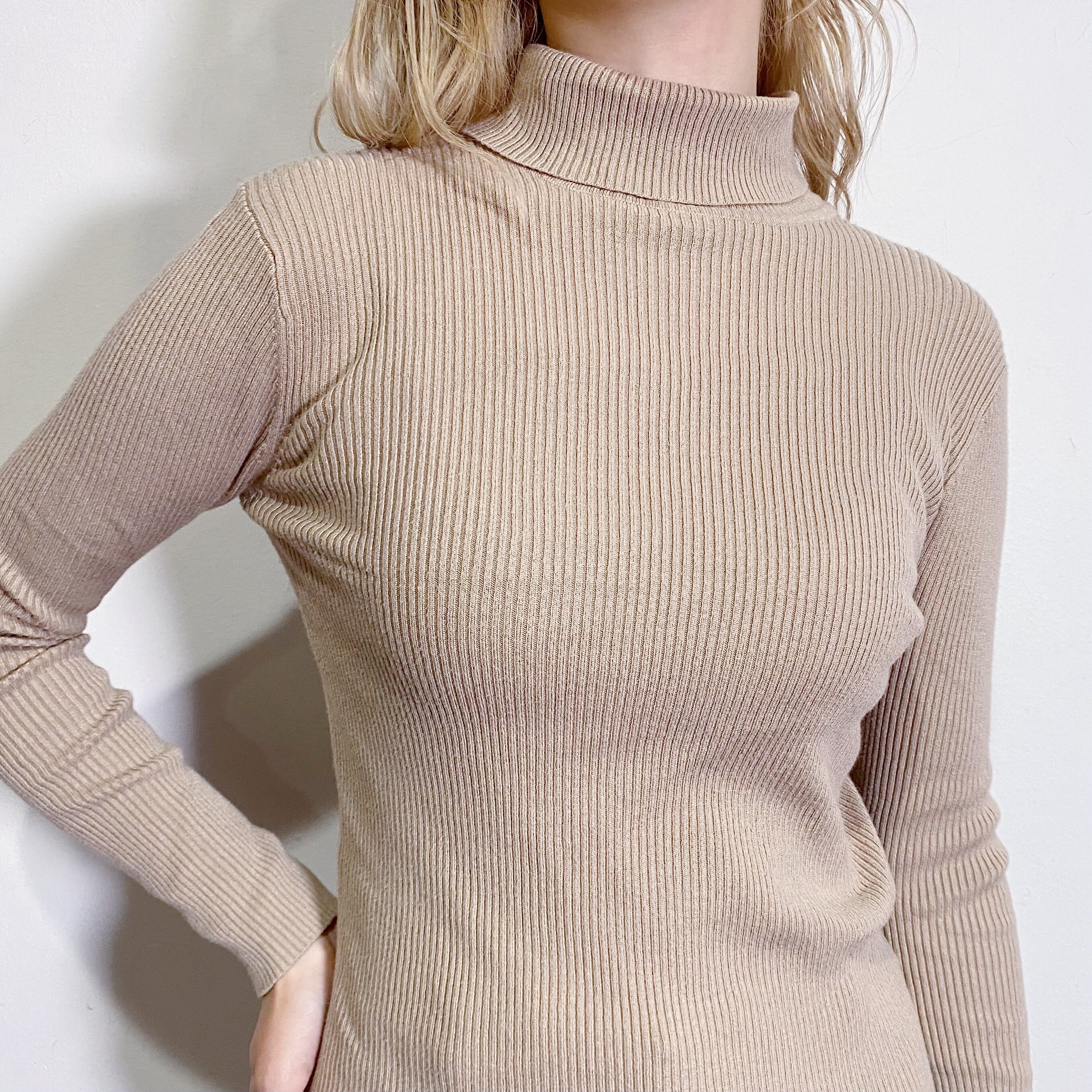 ベージュで大変使い勝手の良い、ハイネックトップスです。