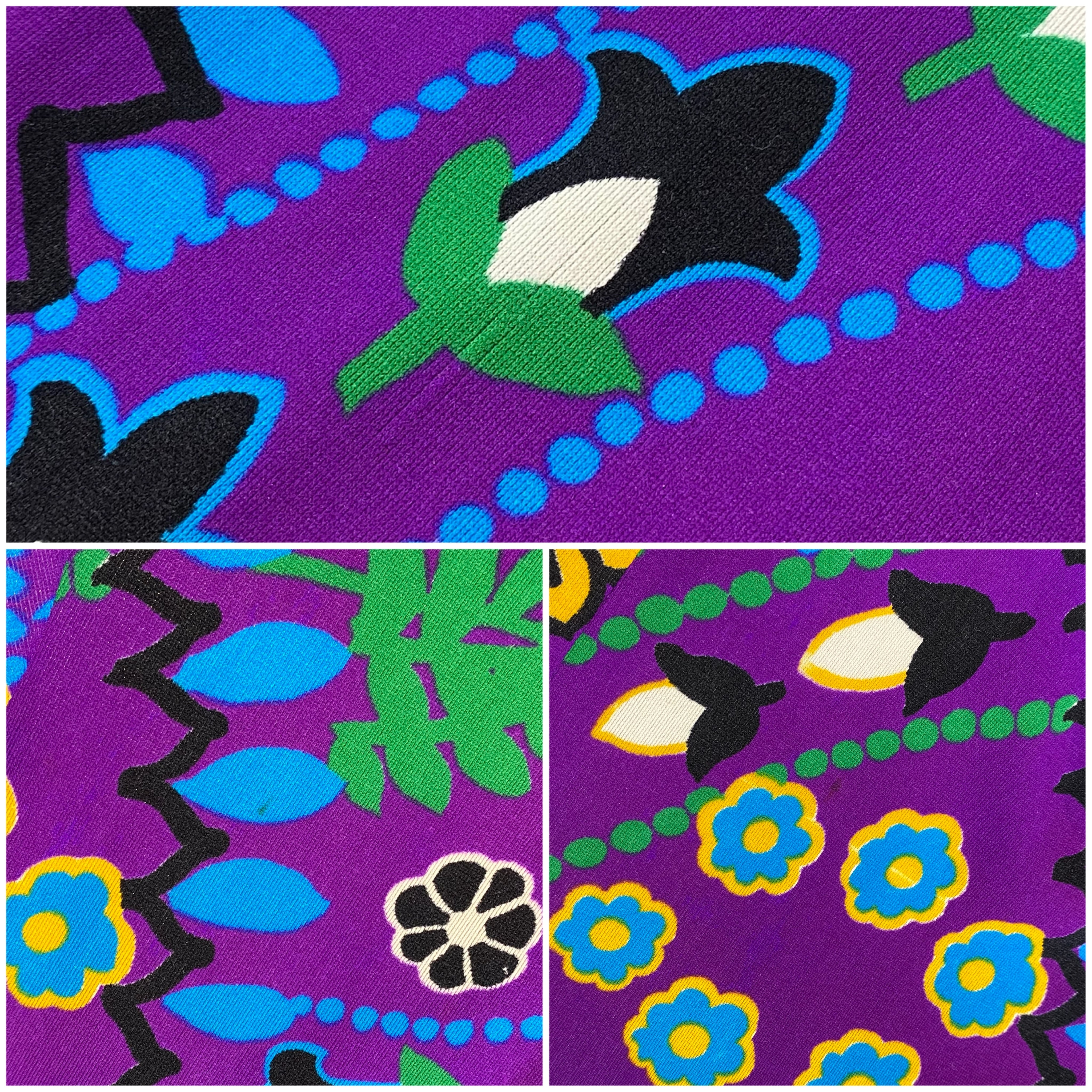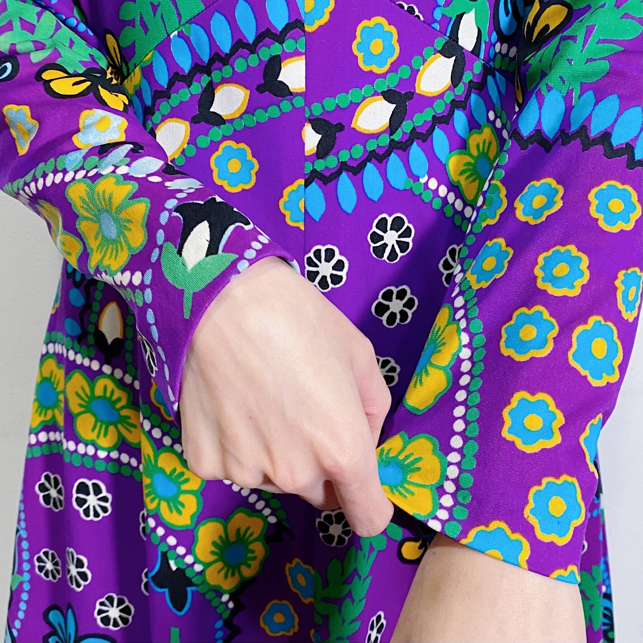 鮮やかなパープルベースに花柄が可愛い、70年代のワンピースです。