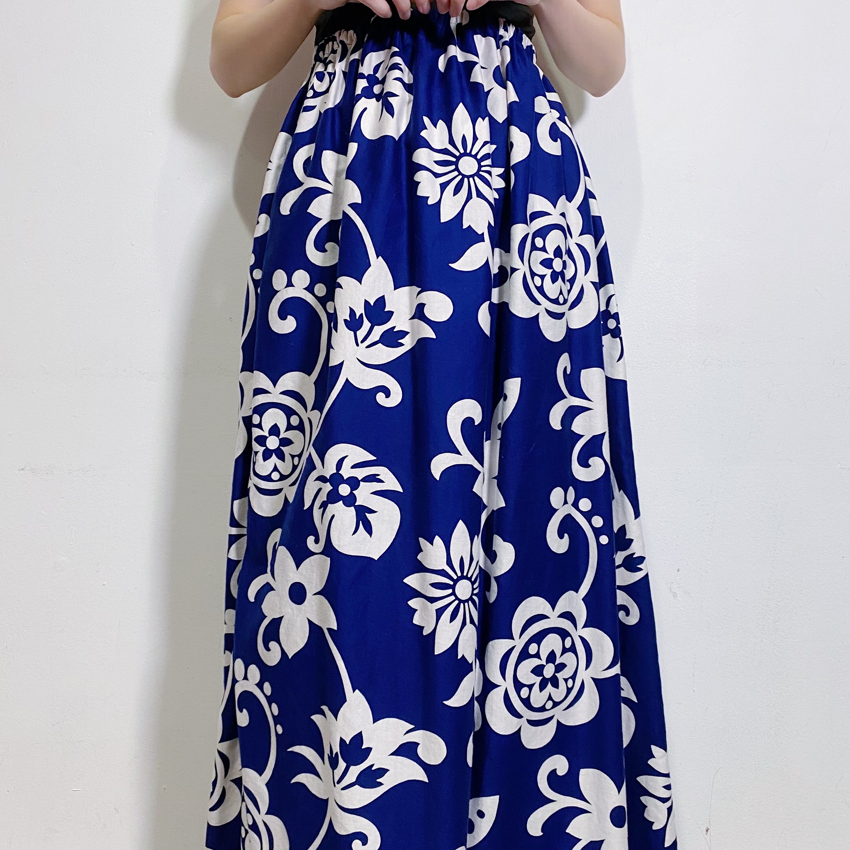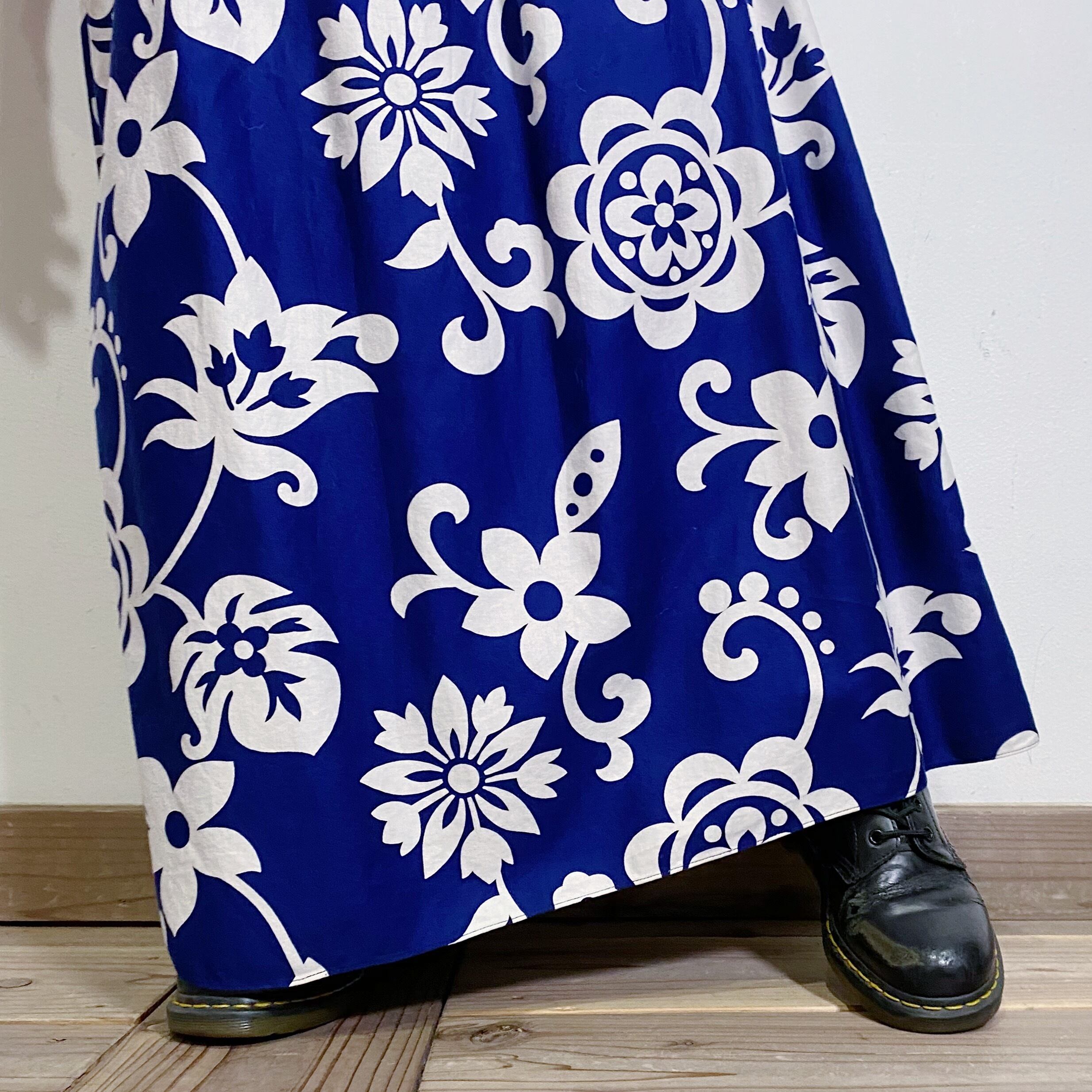 ネイビーベースに白の花柄が可愛い、70年代のスカートです。