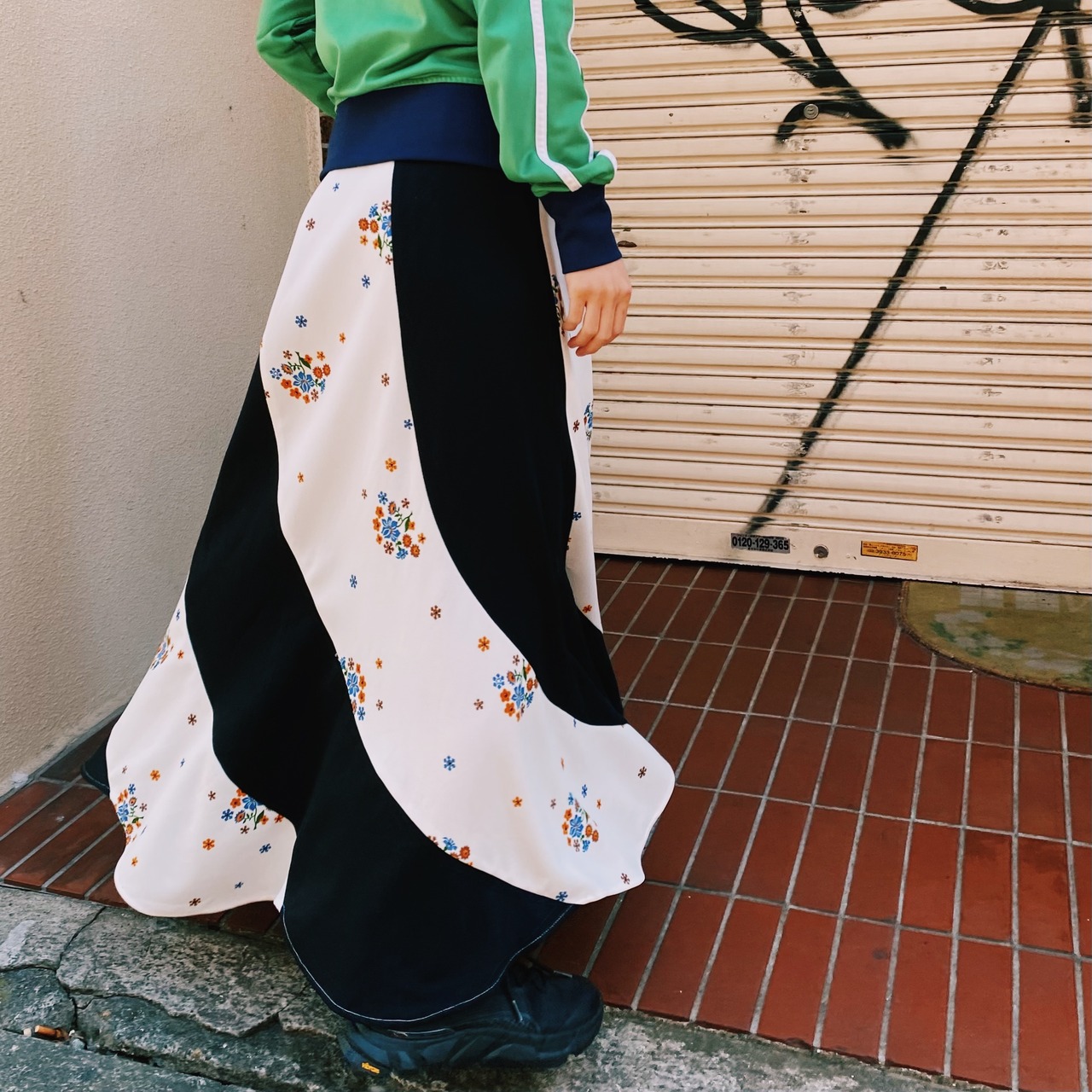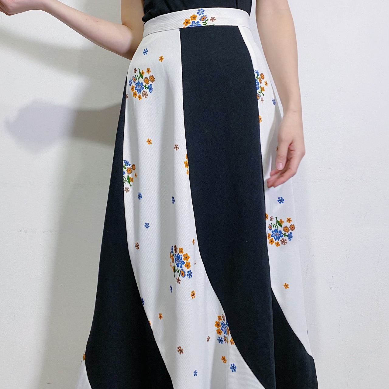 花柄と無地の切り替えが可愛い、70年代のエスカルゴスカートです。