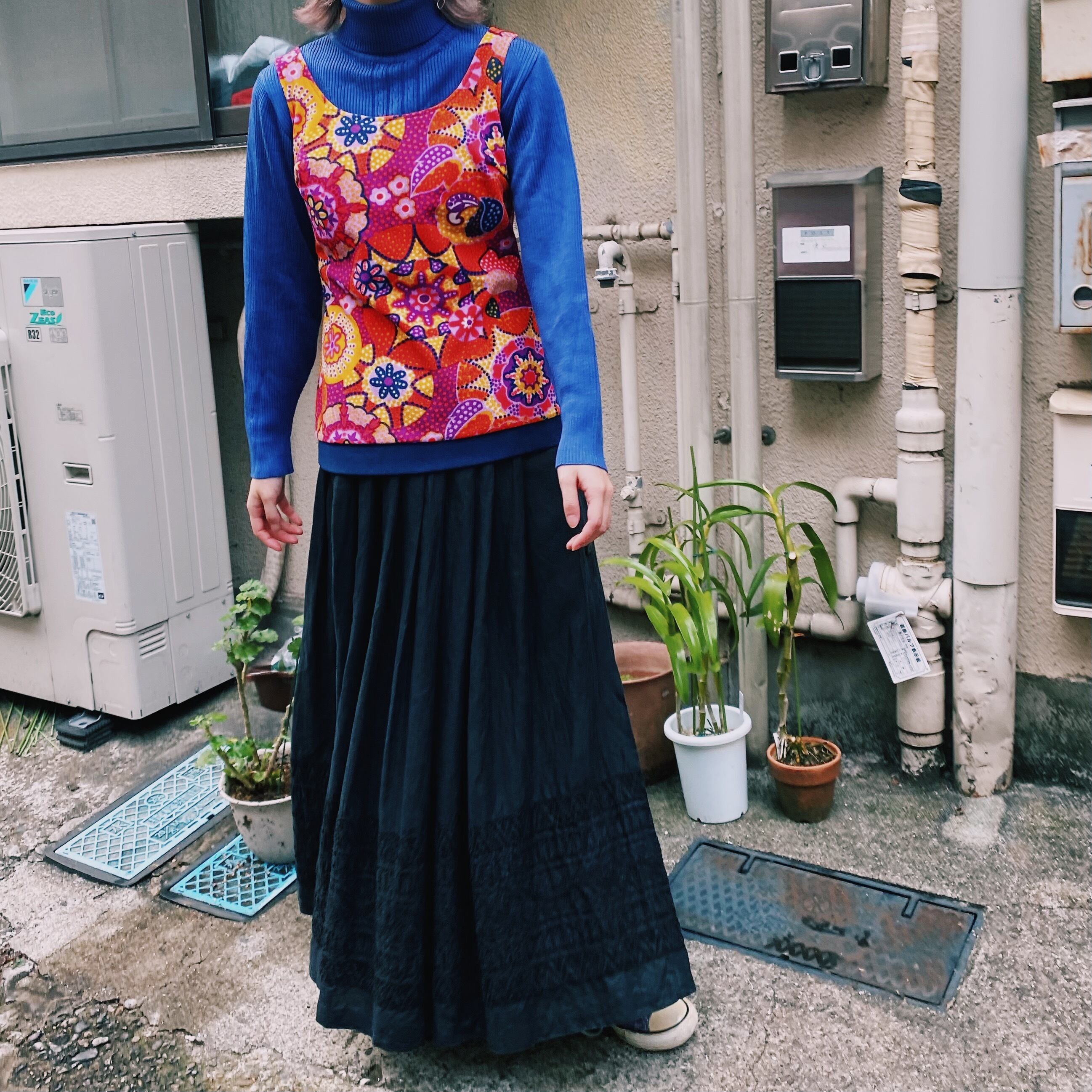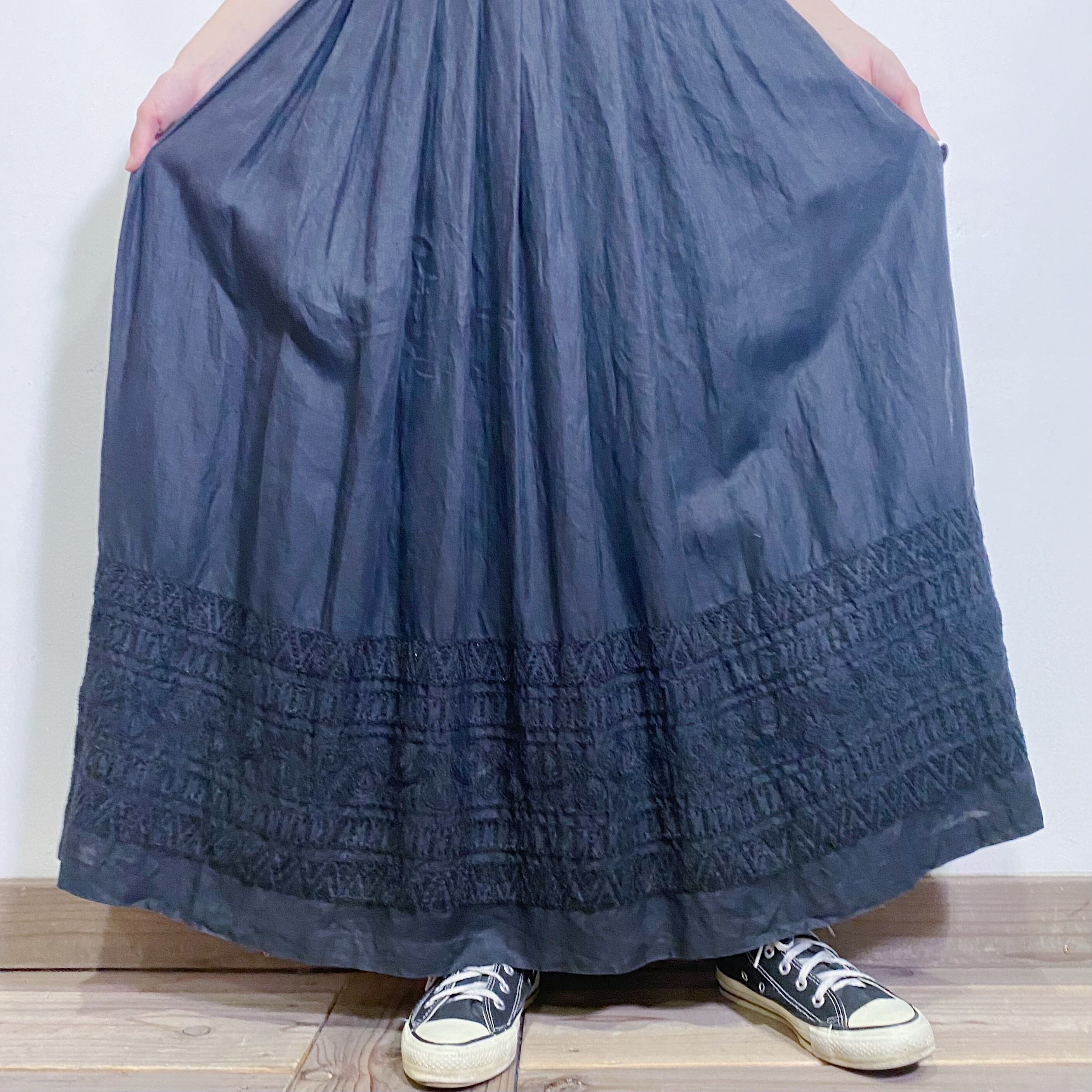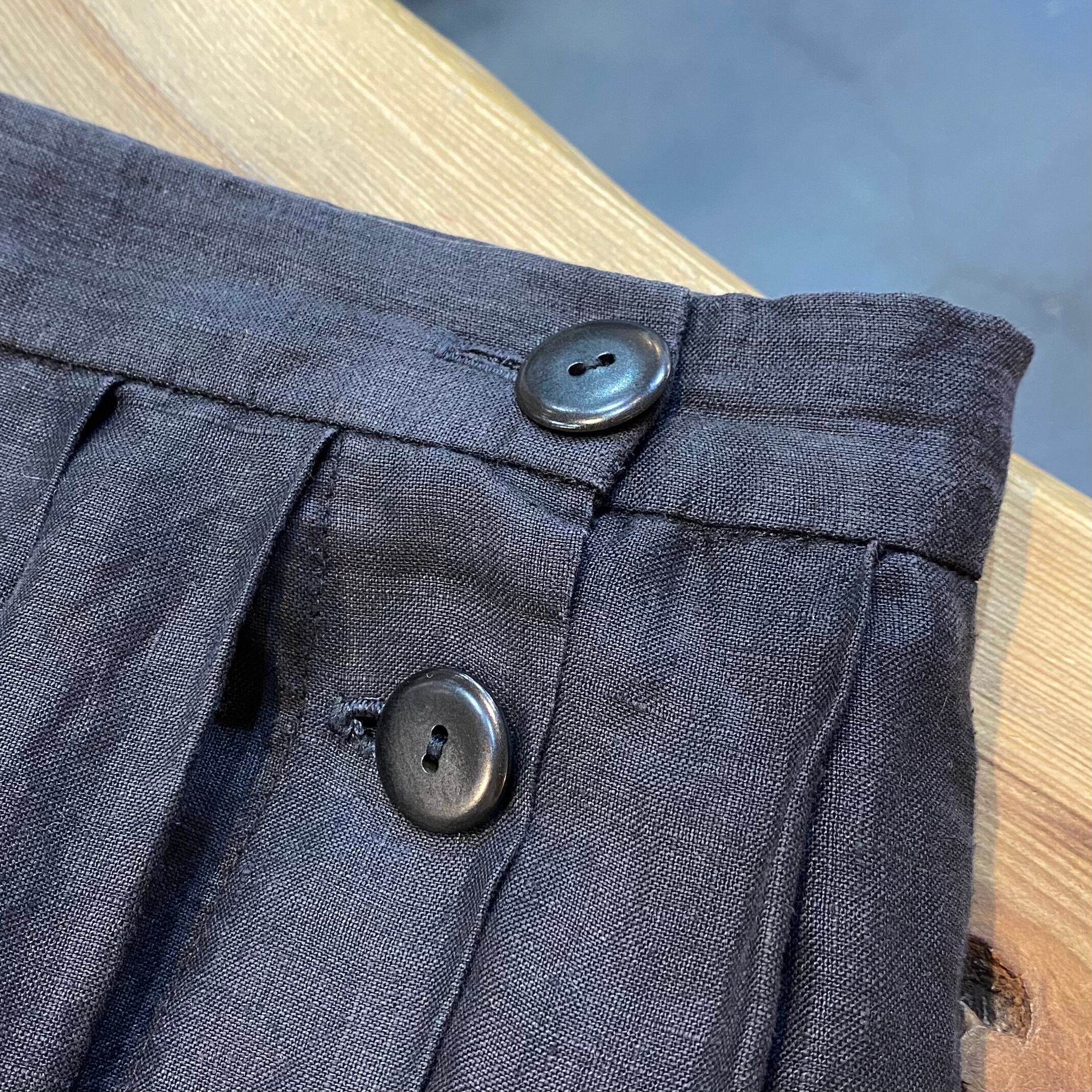 ブラックカラーで大変使い勝手の良い、リネン地のロングスカートです。