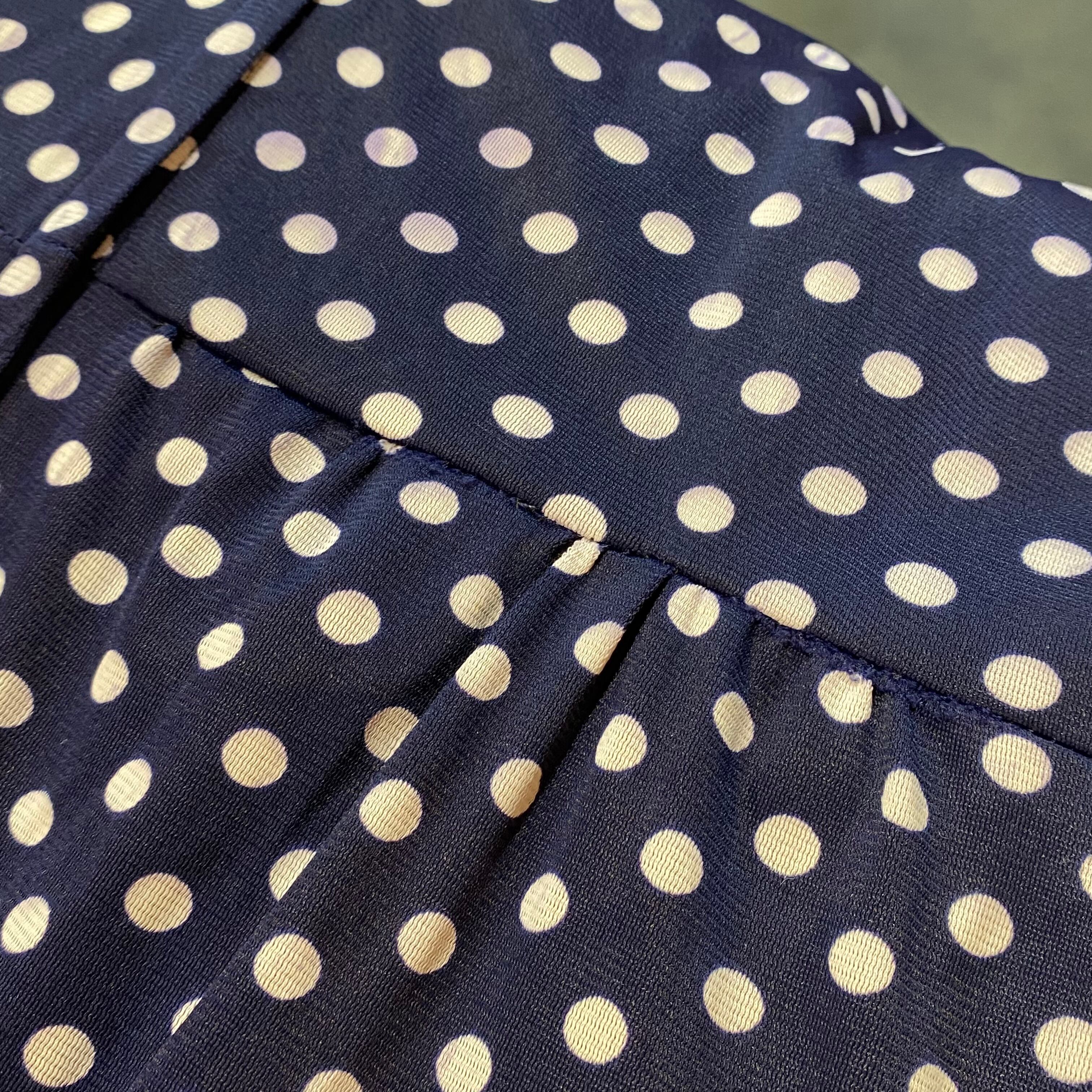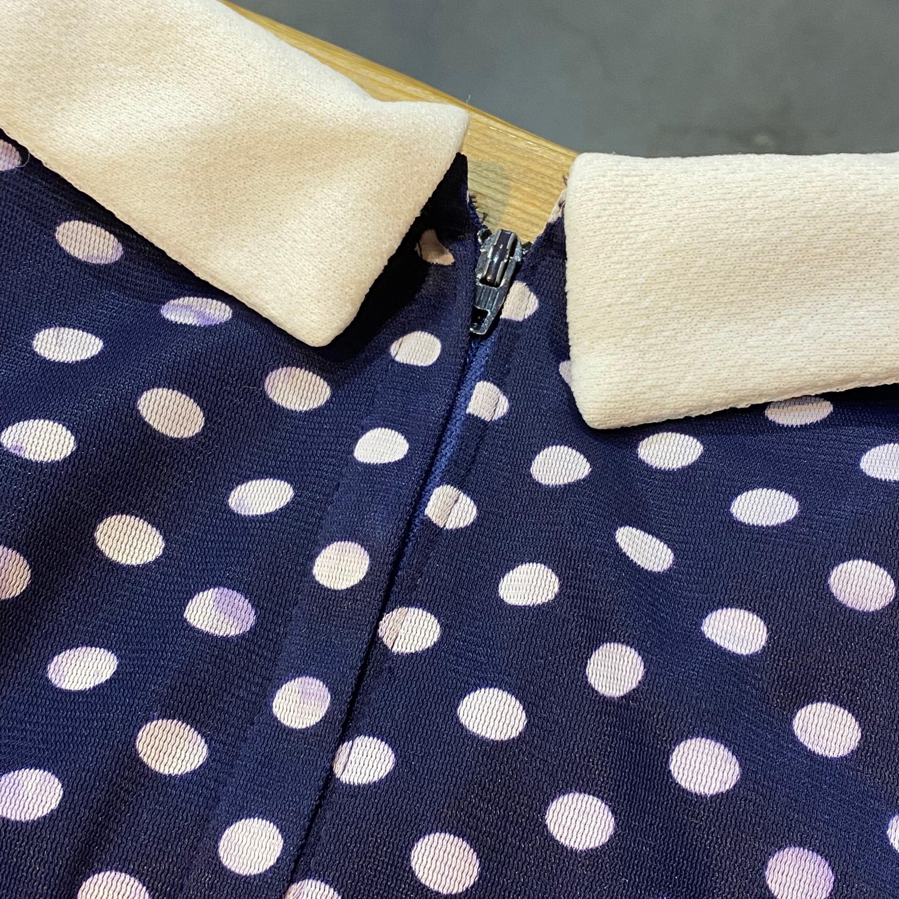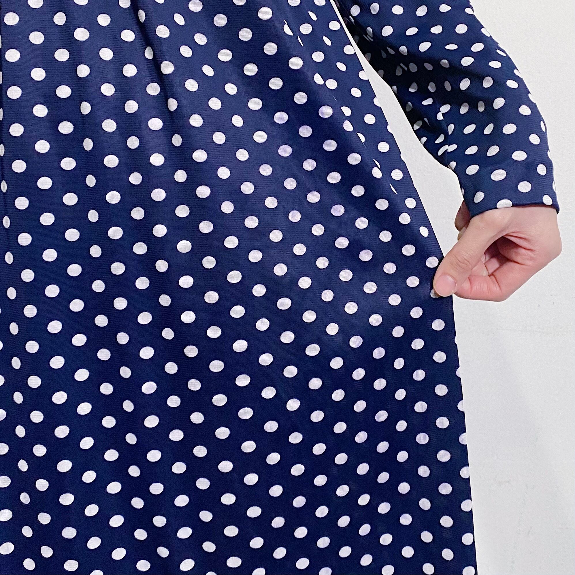 ネイビーベースにドットが可愛い、70年代のワンピースです。