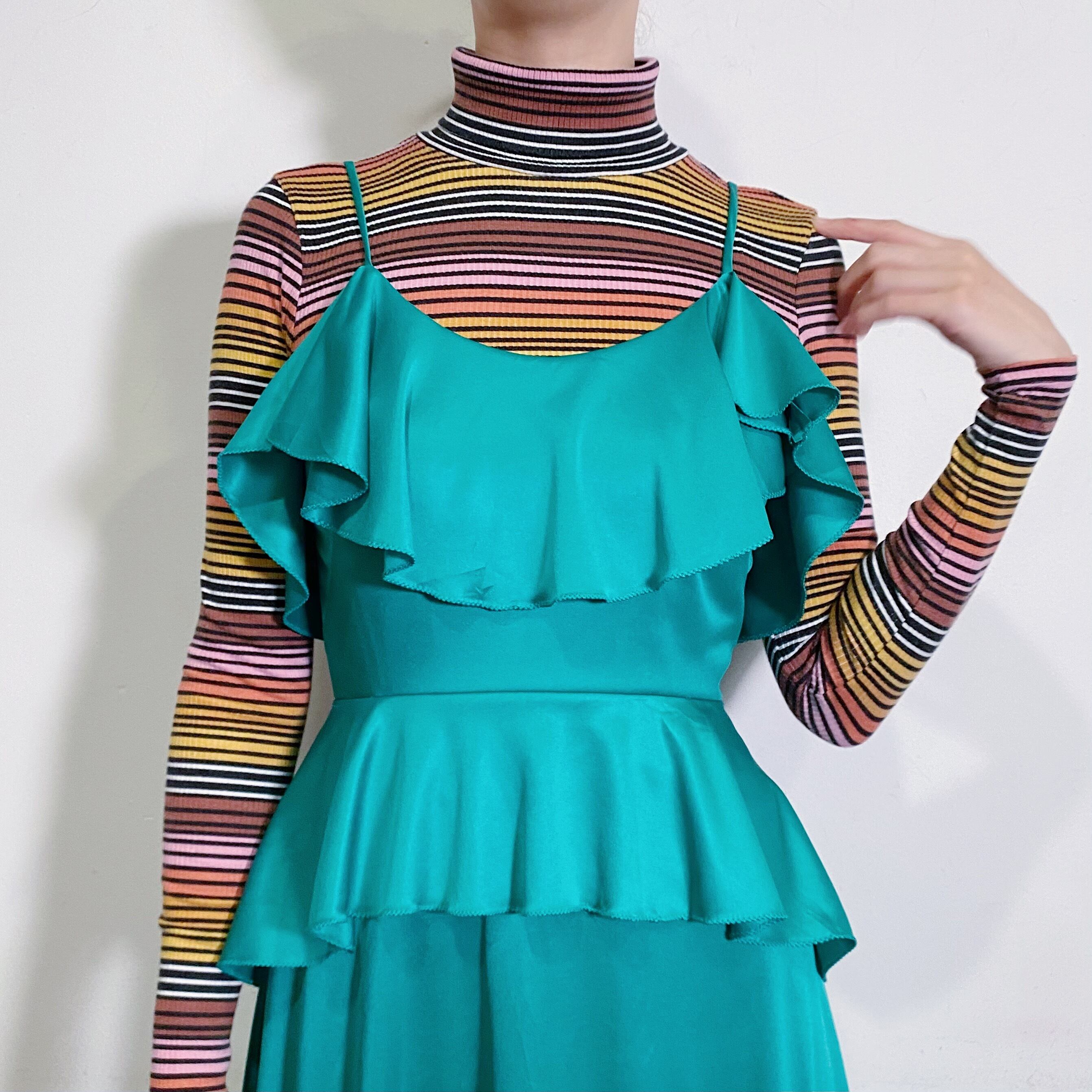 エメラルドグリーンのような綺麗な色合いが魅力の70年代のキャミワンピースです。