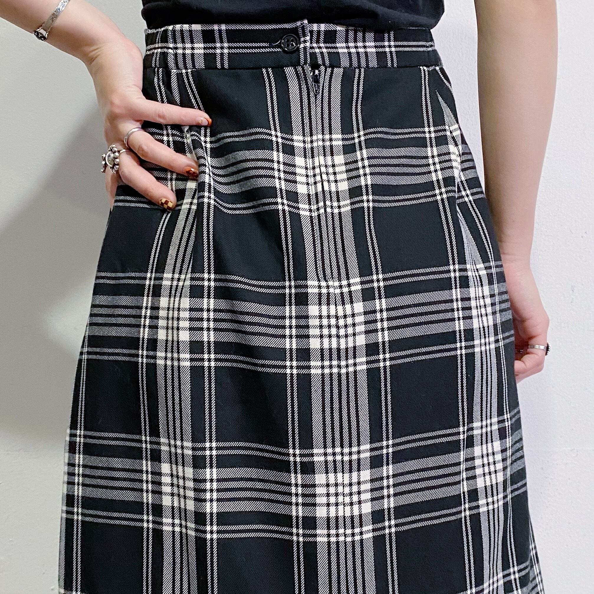 モノトーンカラーのチェックに長めのフリンジが可愛い、80年代のスカートです。