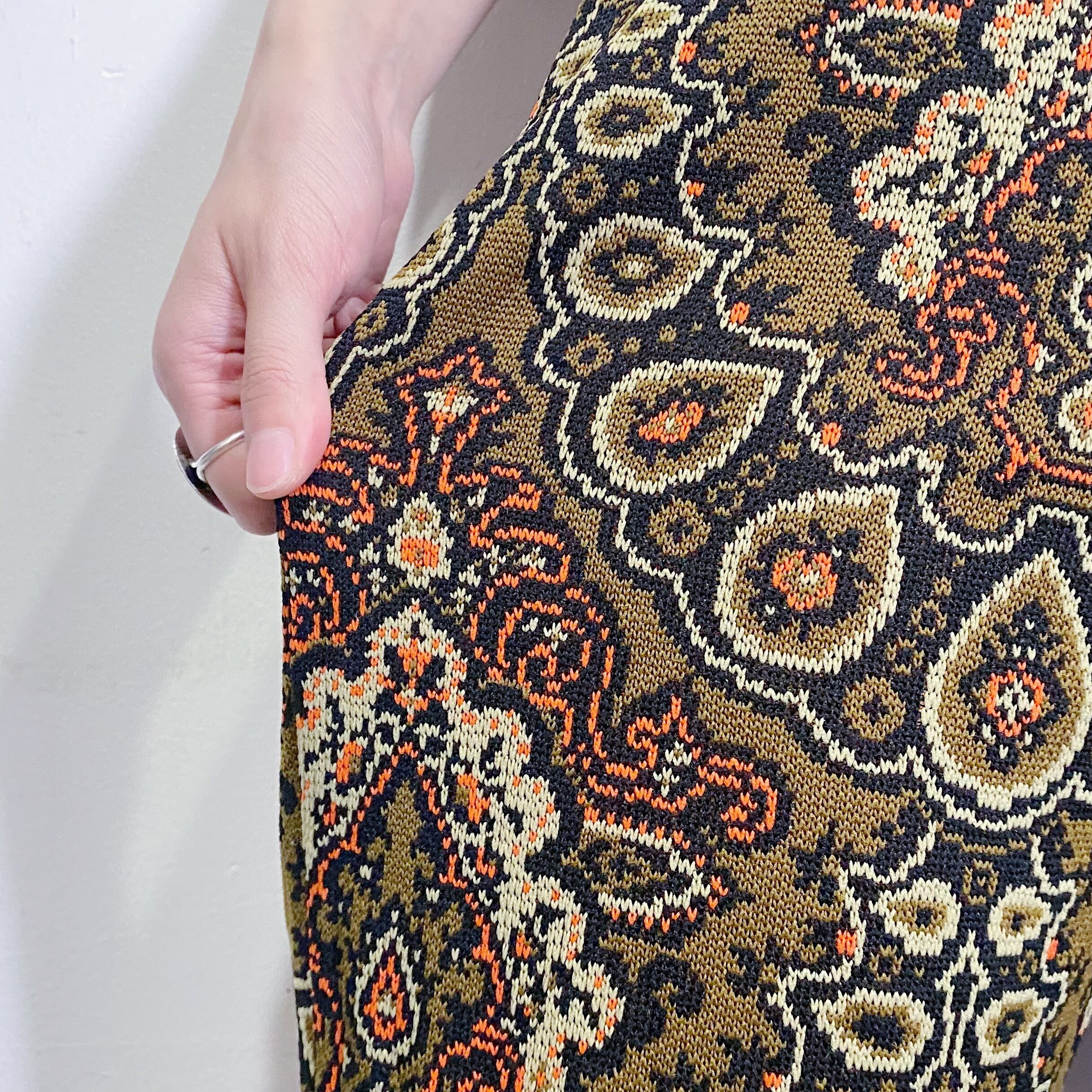 壁紙のようなテキスタイルが可愛い、60~70年代のフレアパンツです。