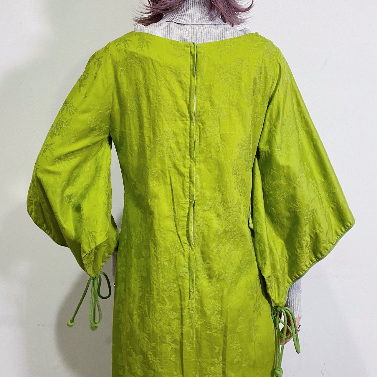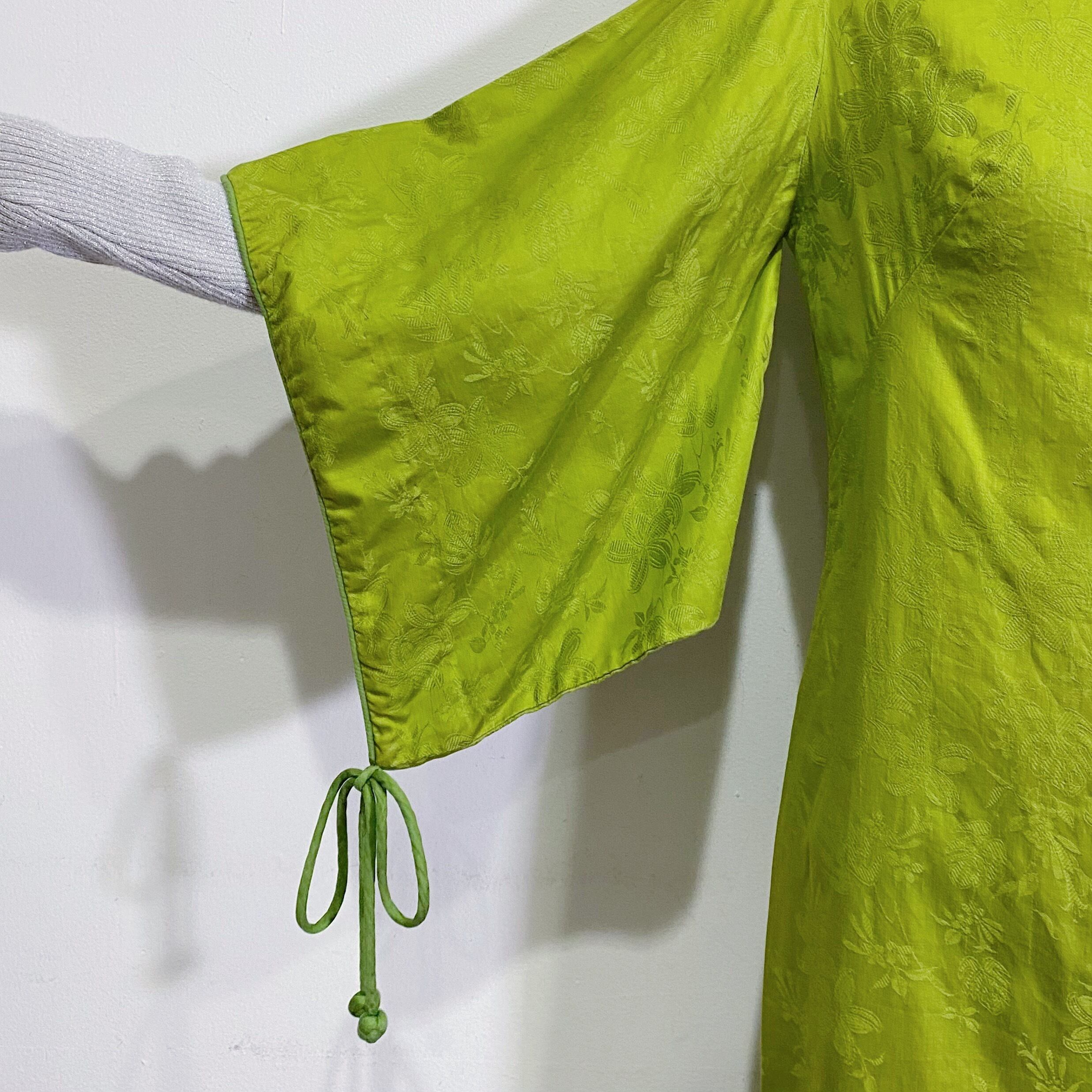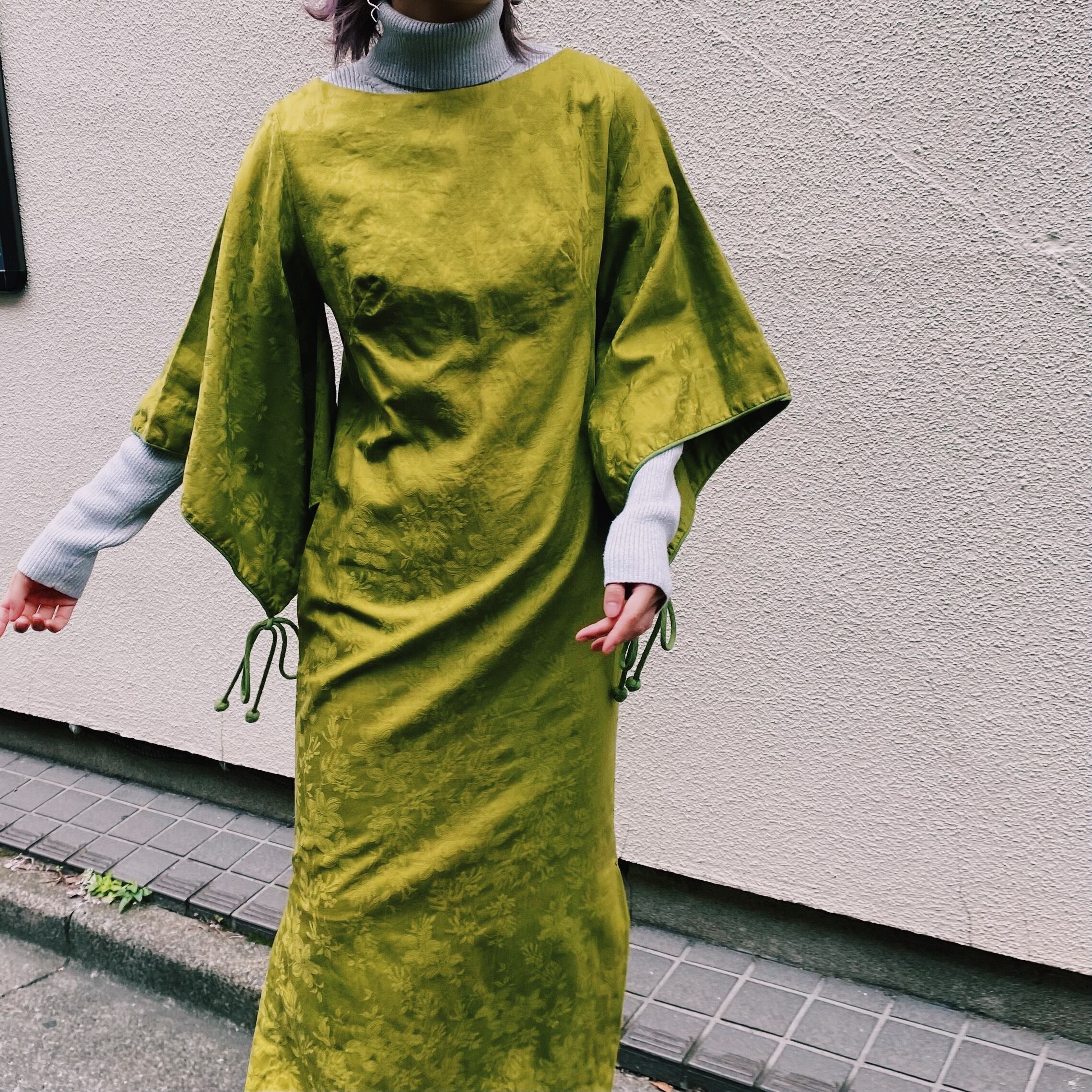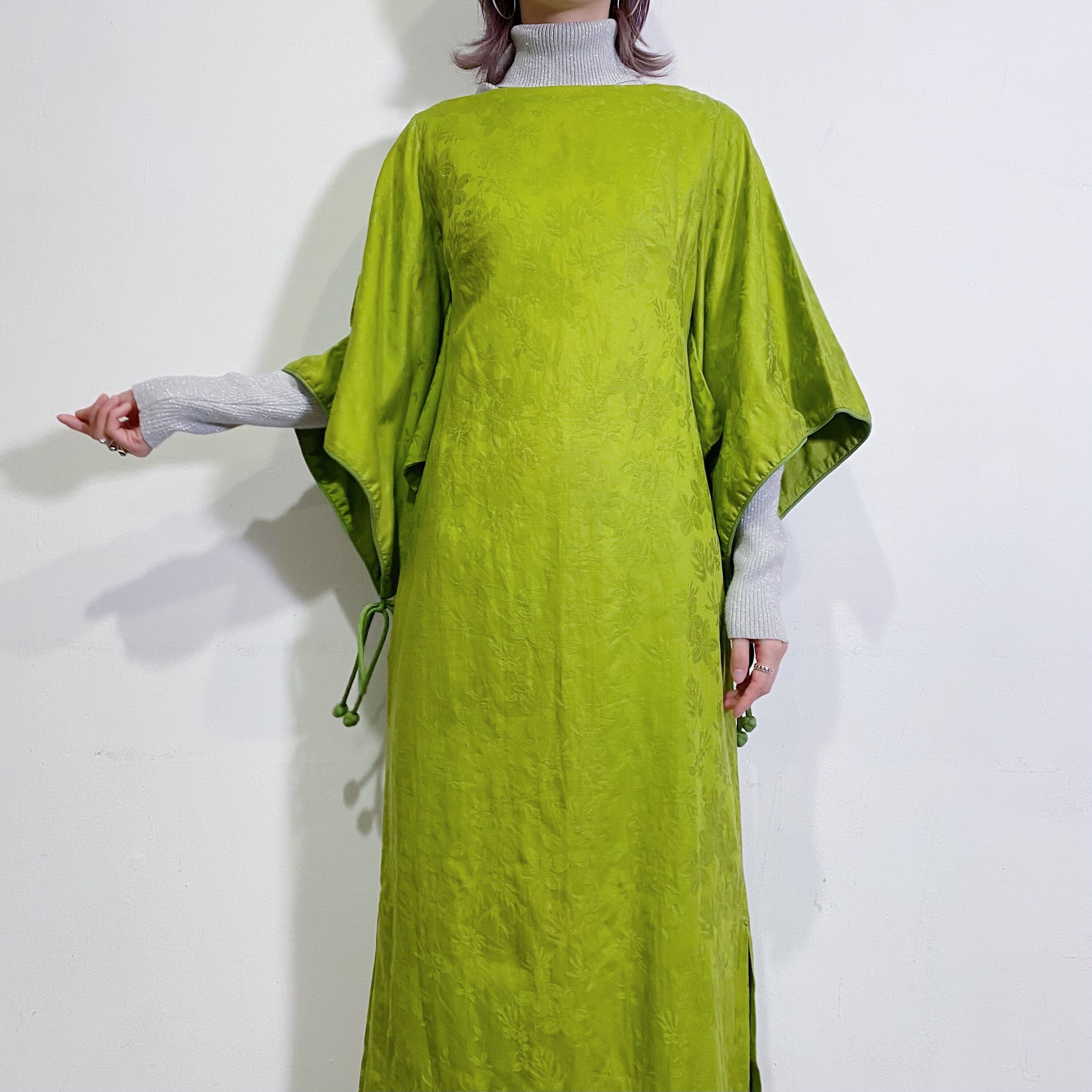 60s lime green kimono sleeves long dress