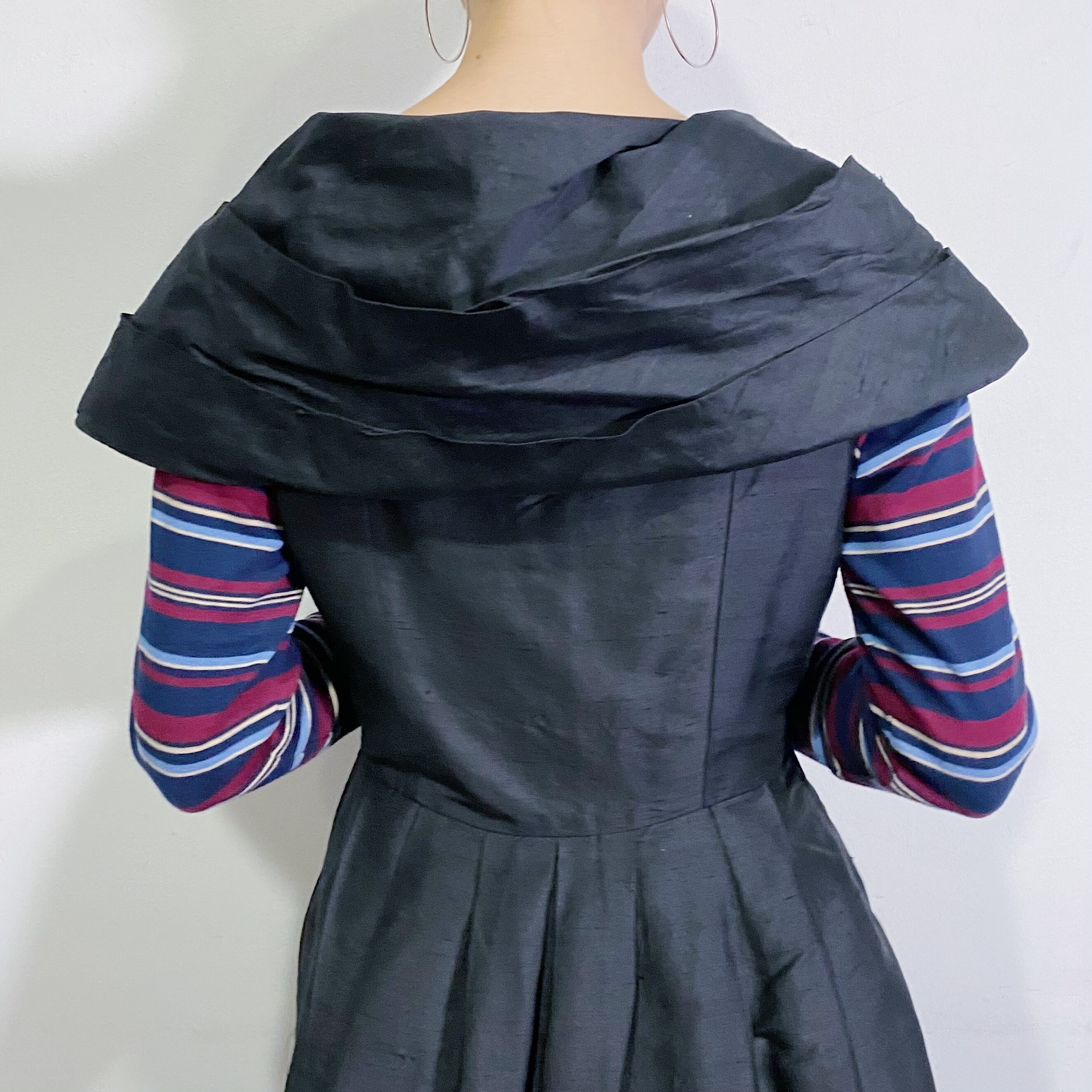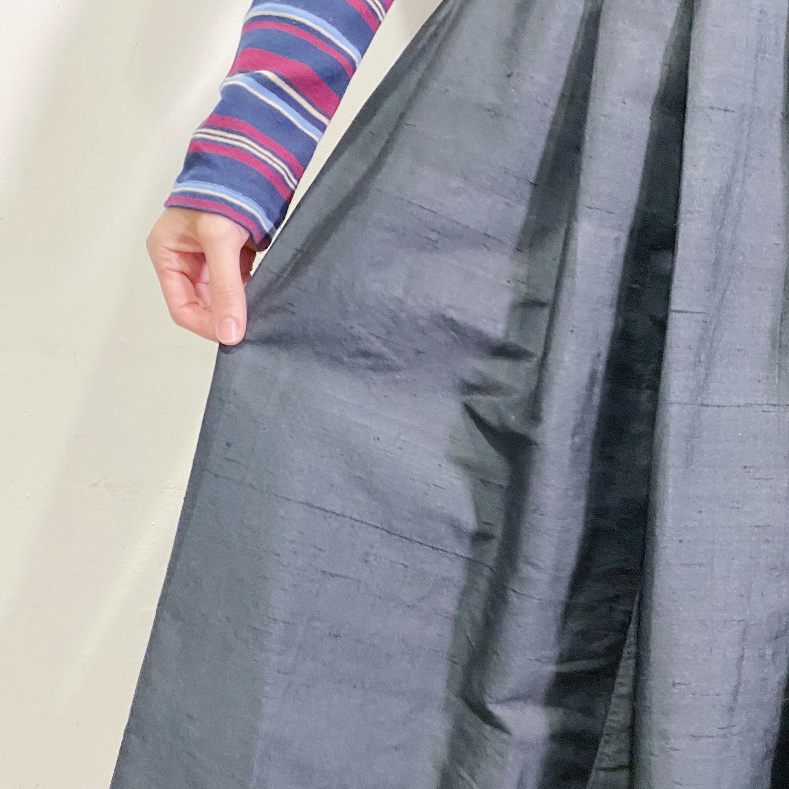 シルク特有の程よい光沢感とハリで、綺麗なAラインシルエットとなっております。
