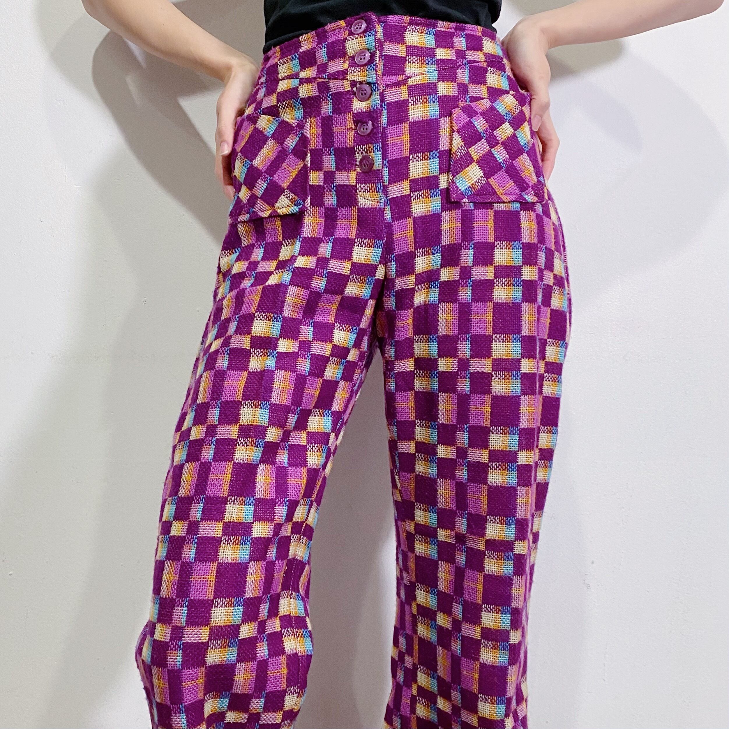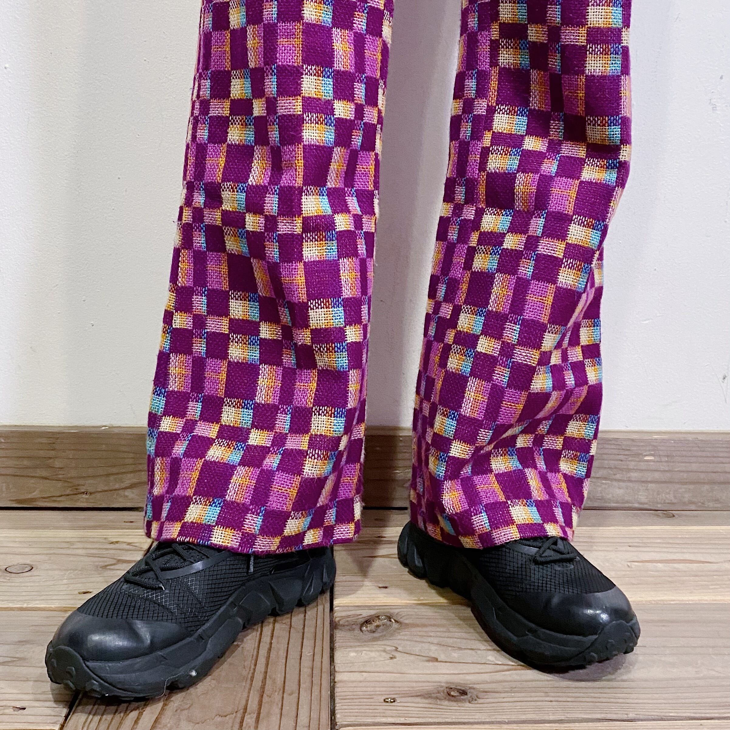 パープルベースのチェック柄が可愛い、70年代のパンツです。