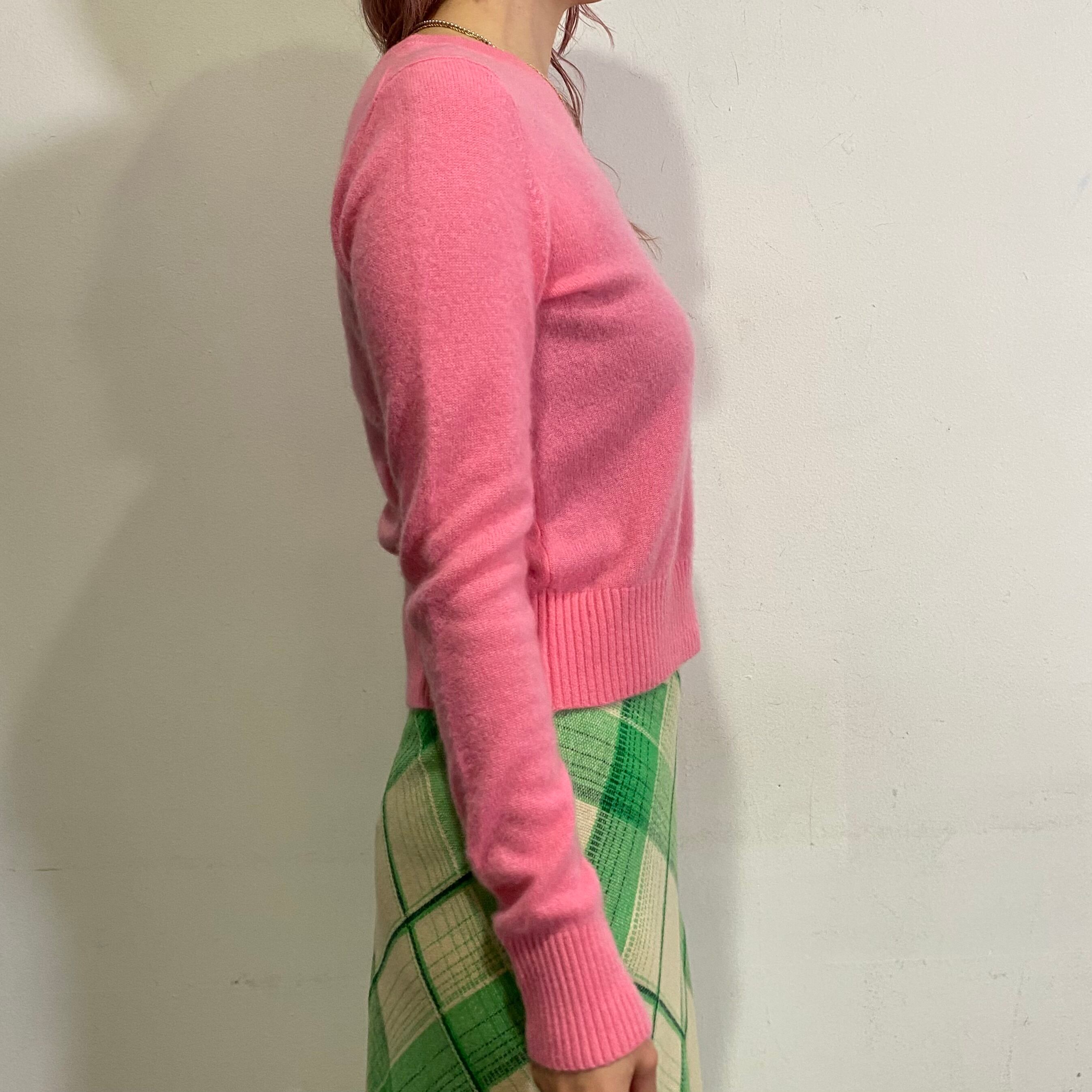 こちらはピンクの色合いも綺麗でコーデの差し色にもぴったりですし、柄アイテムとも相性良く着ていただけます。