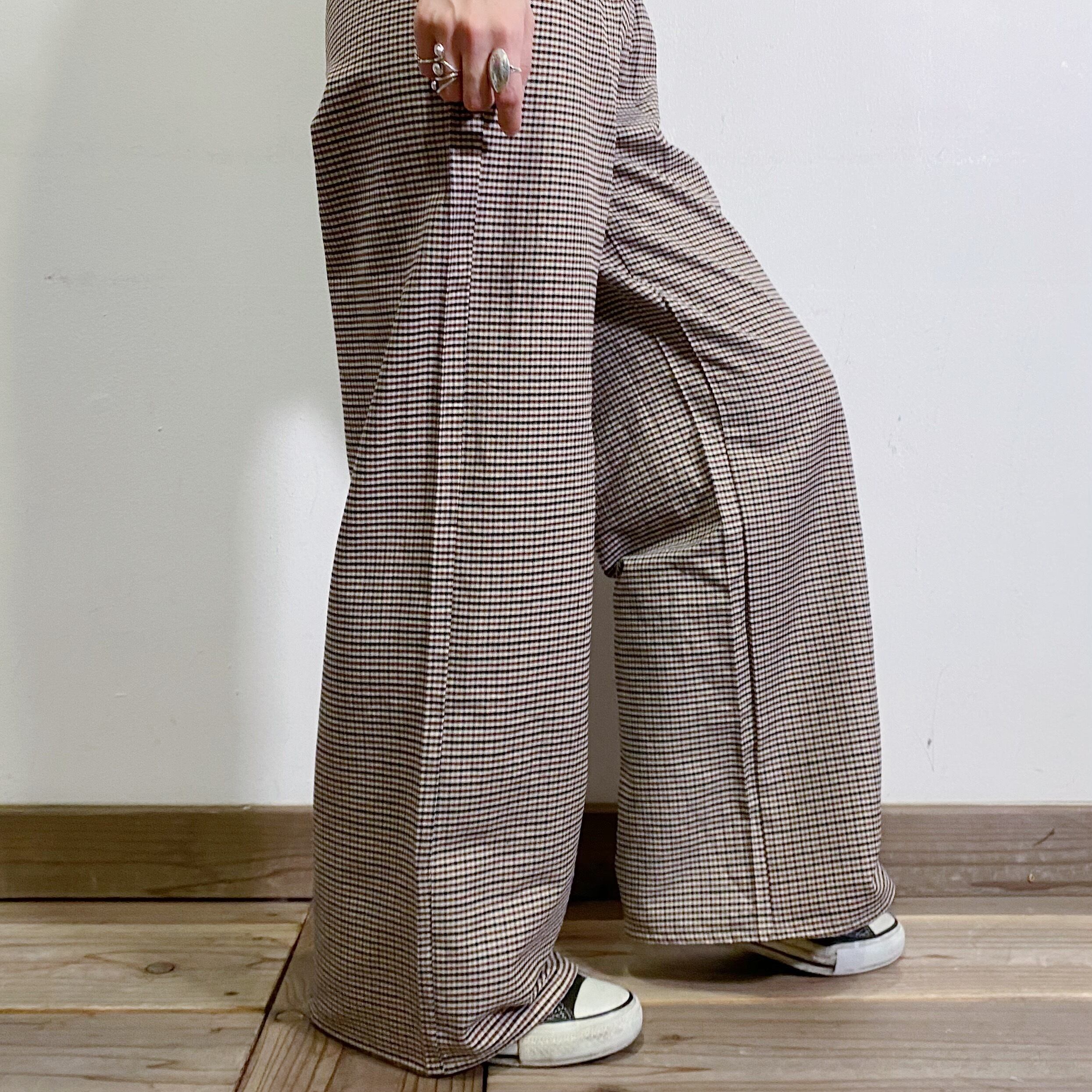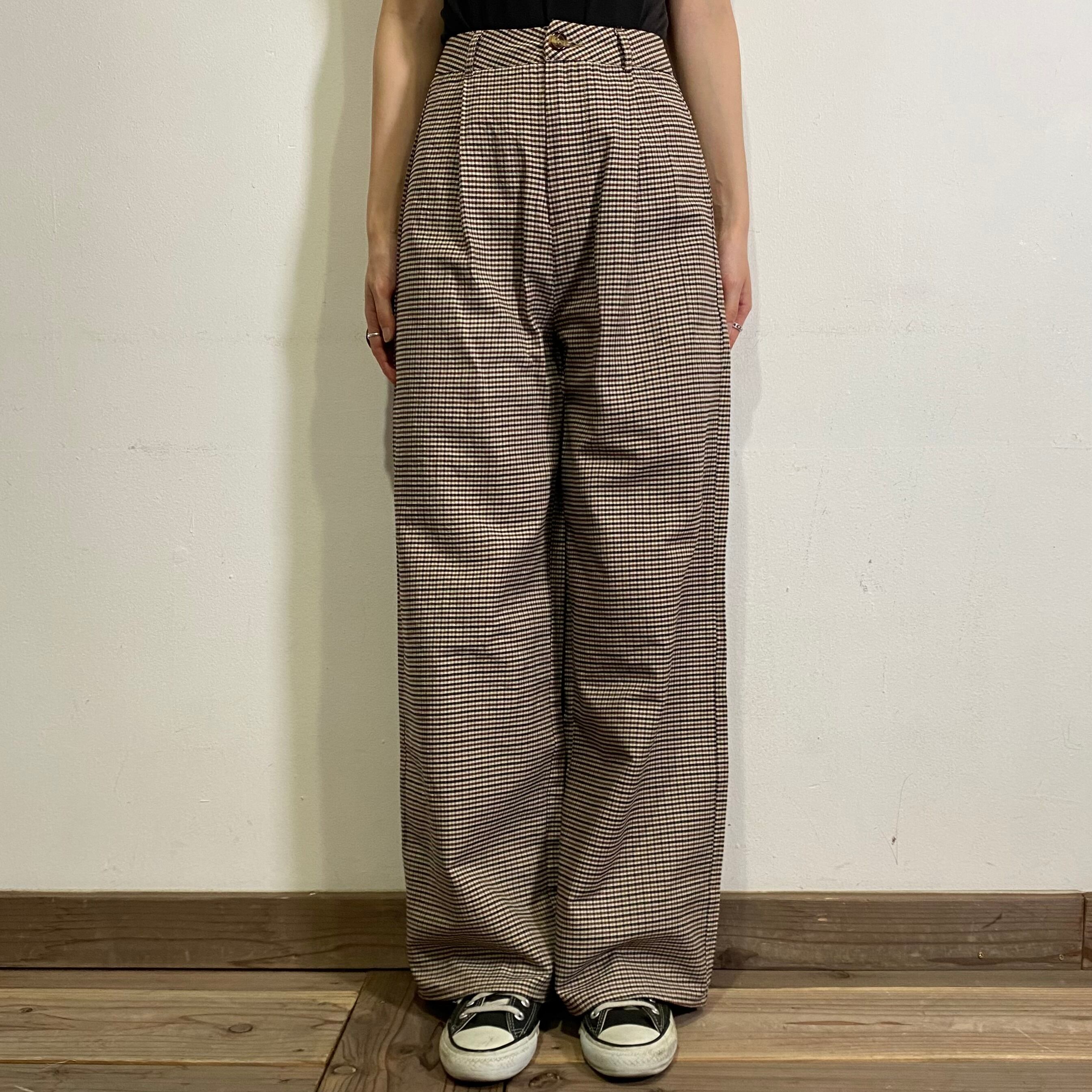 ブラウン×ベージュのチェック柄が可愛いワイドパンツです。