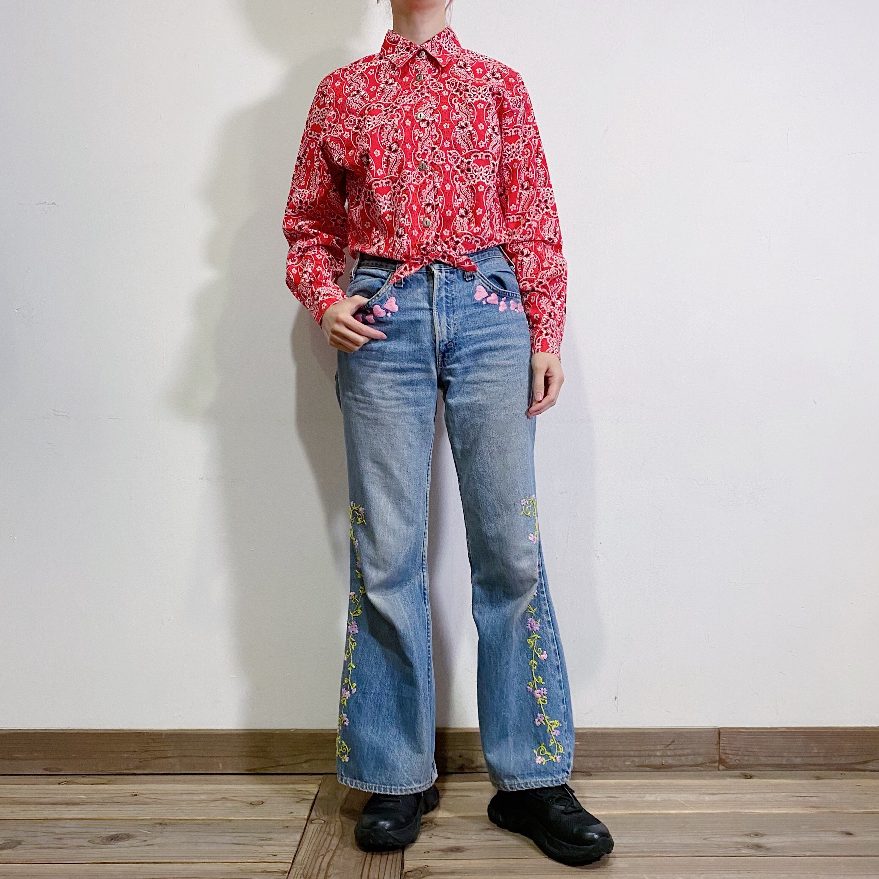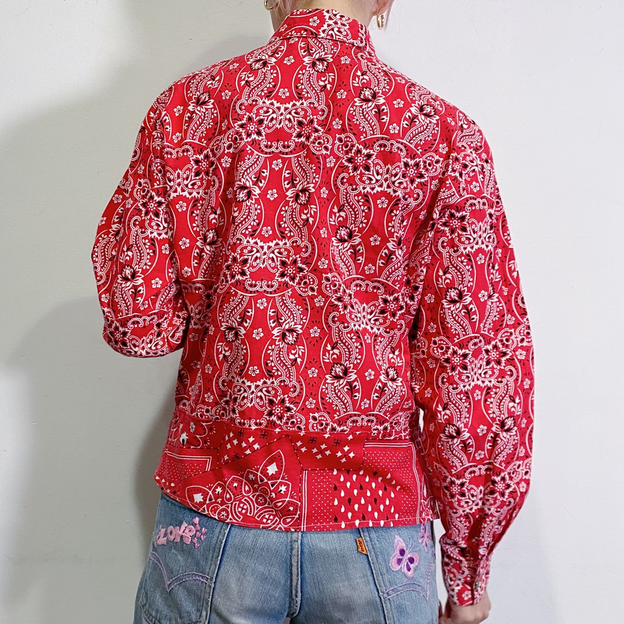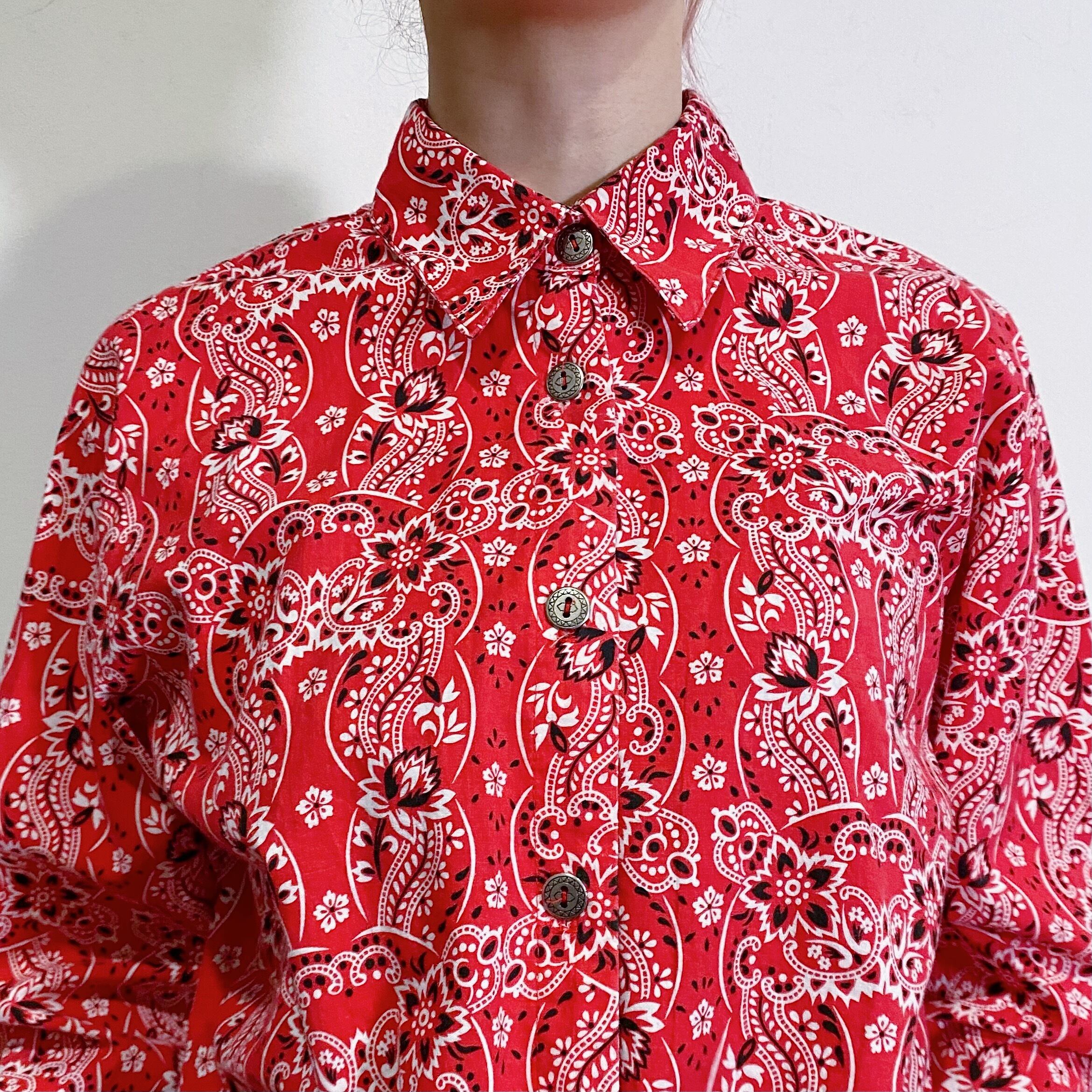 赤のバンダナ柄が可愛い、80年代の長袖シャツです。