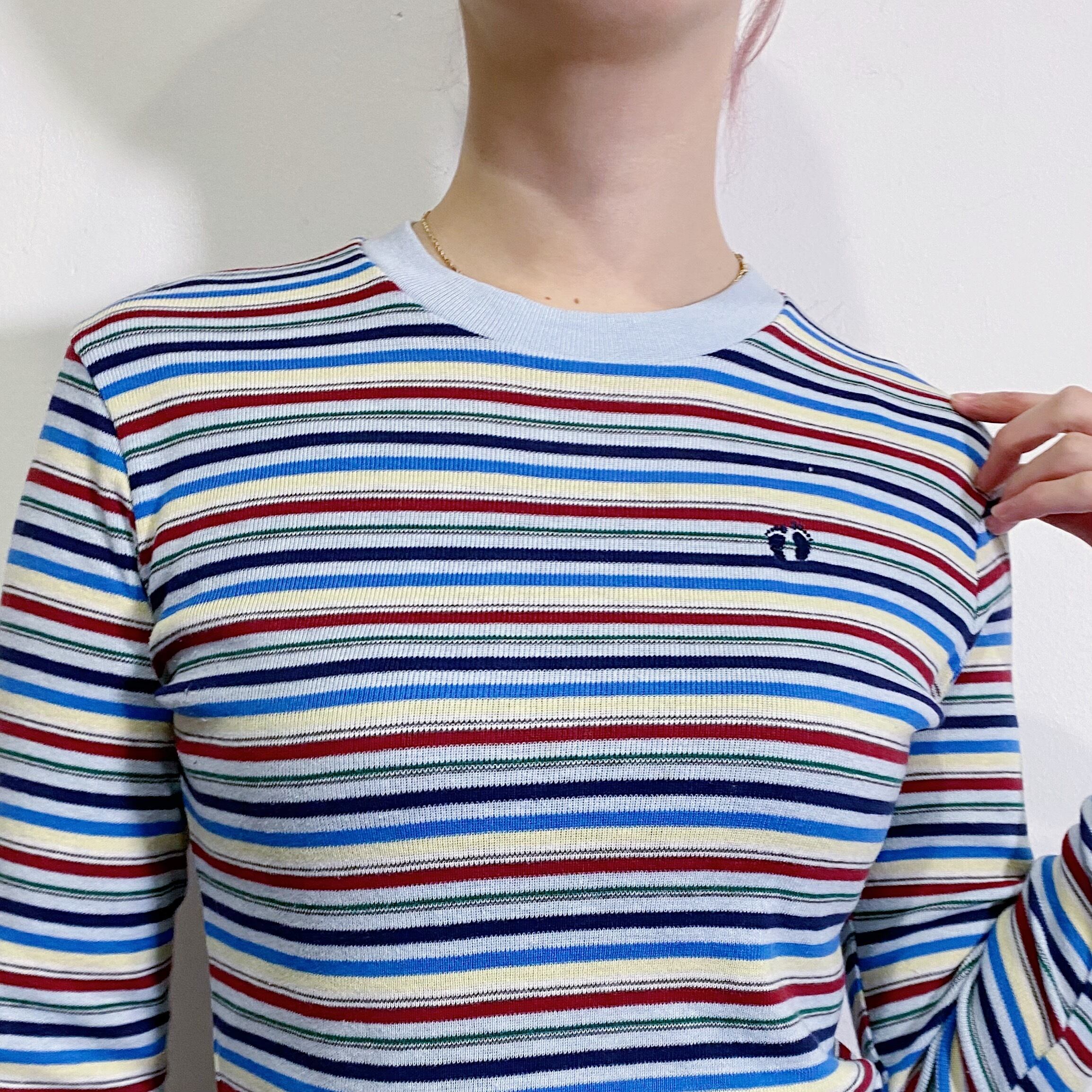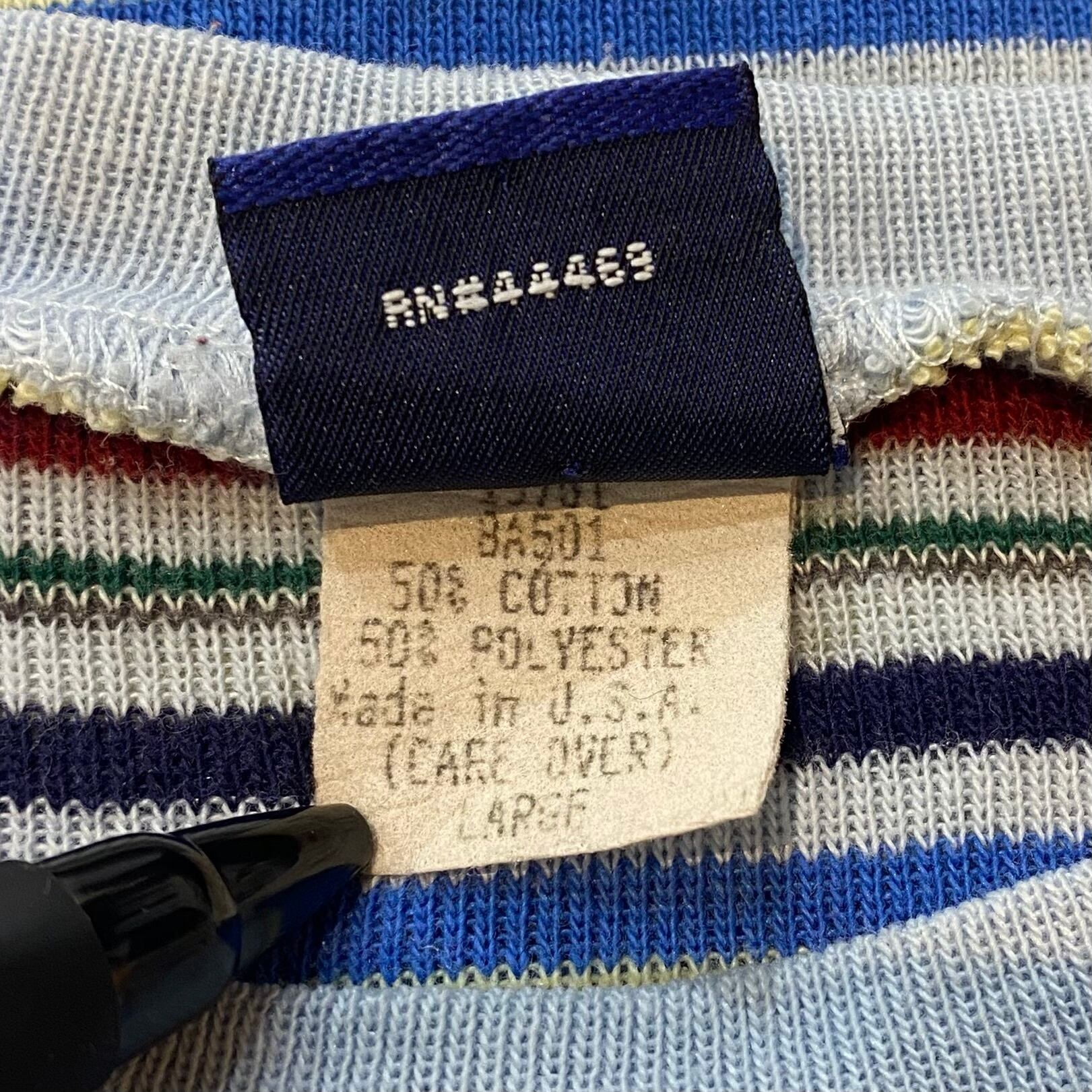 サックスブルーなどの色合いが可愛い、70年代のボーダーTです。