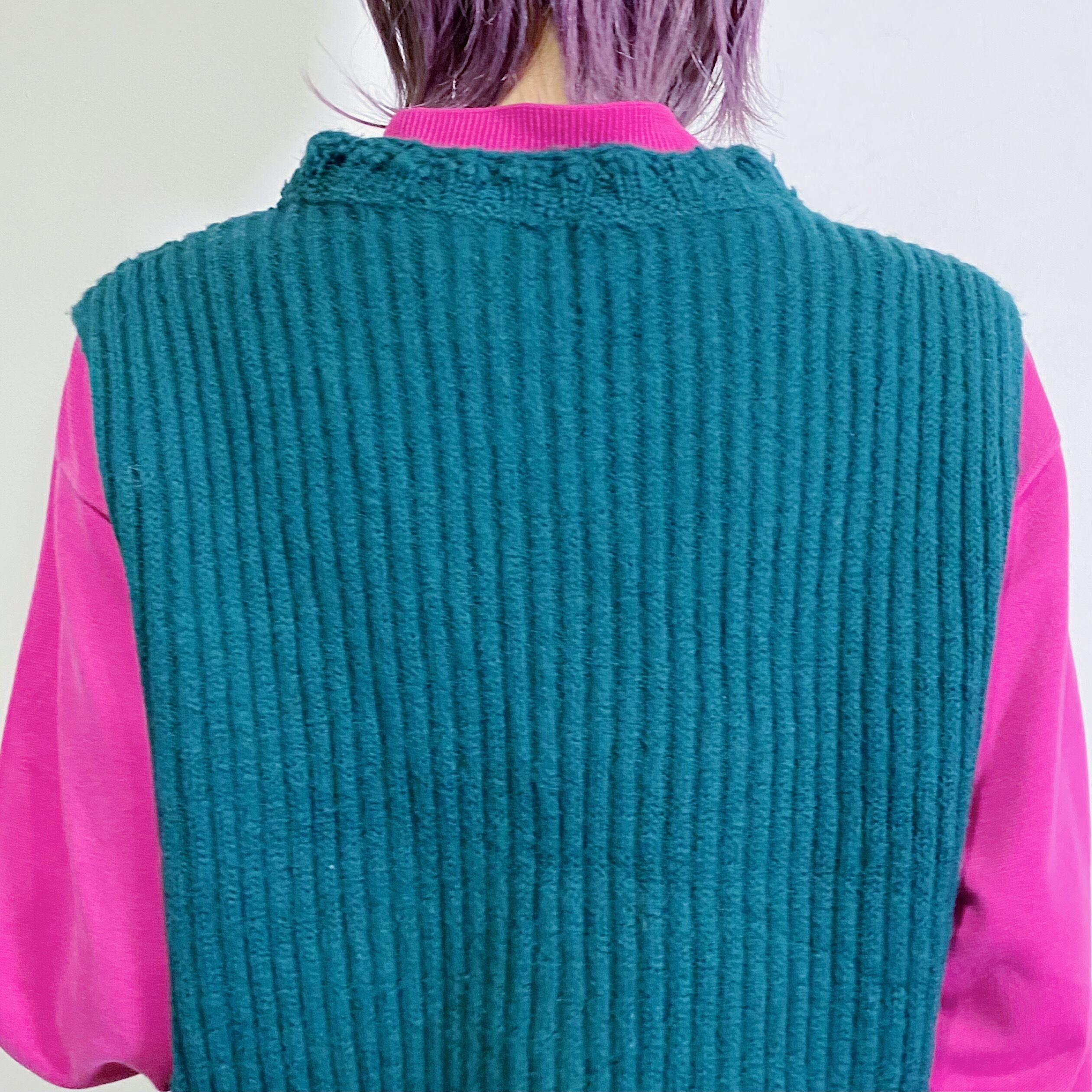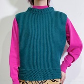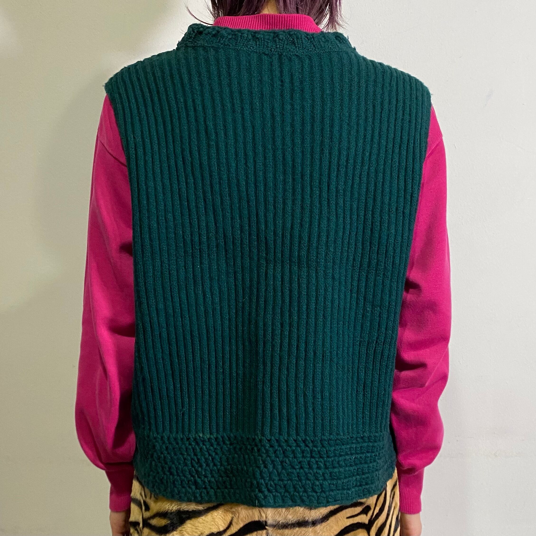 深めグリーンの色合いが着こなしやすい、70年代のニットベストです。