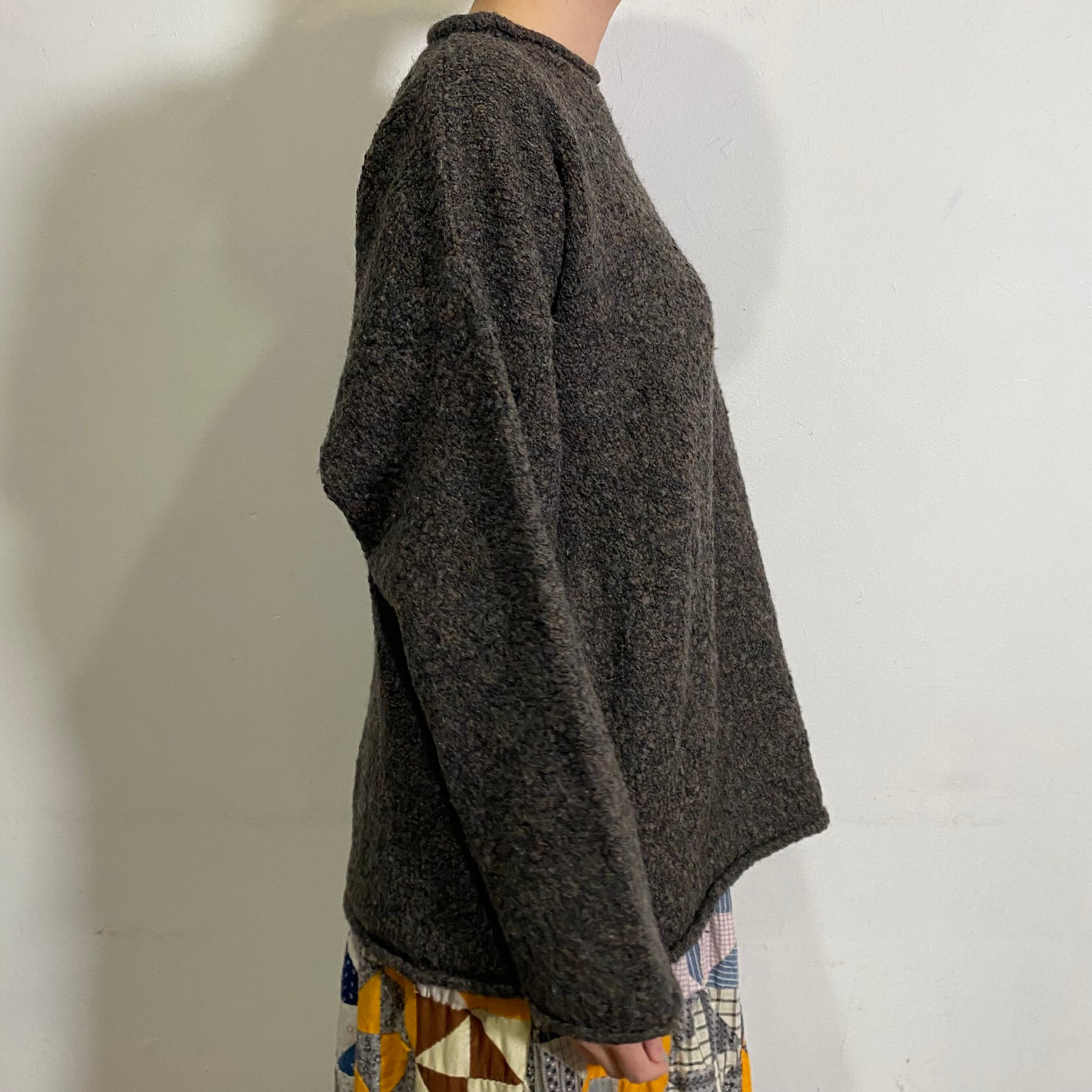 ぽこぽことしたブラウンとグレーのミックスカラーが可愛い、ニットセーターです。