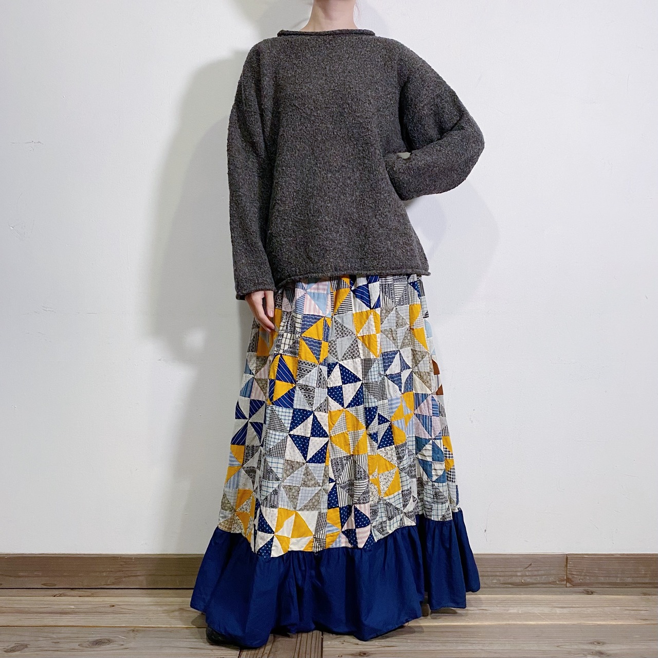 着用写真のように柄スカートやパンツとも相性良く着て頂けます。