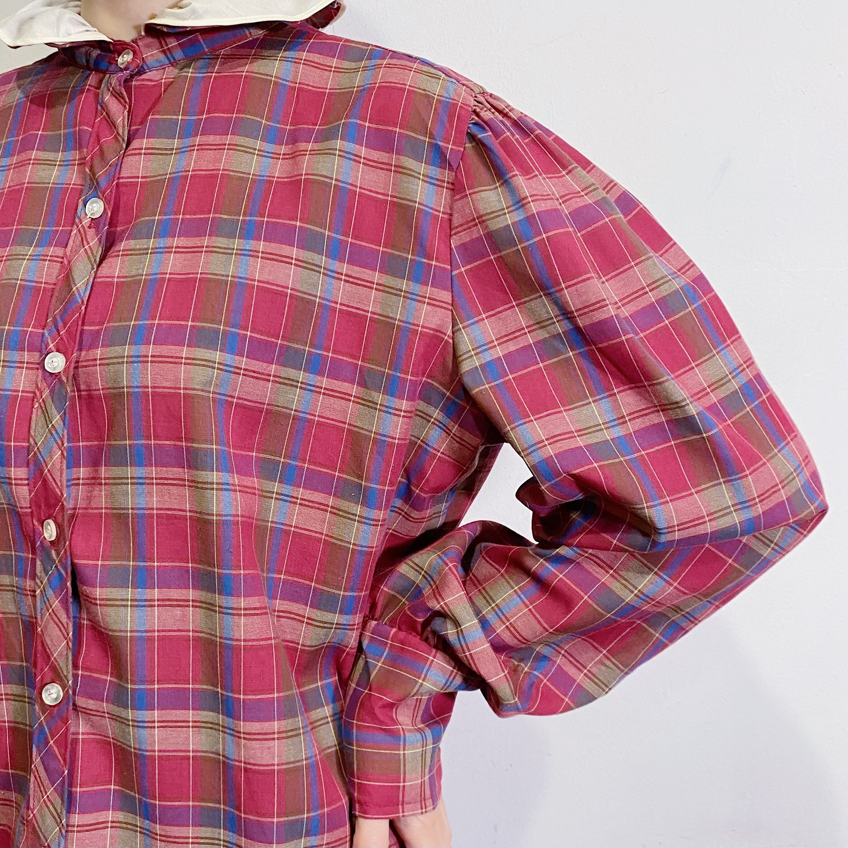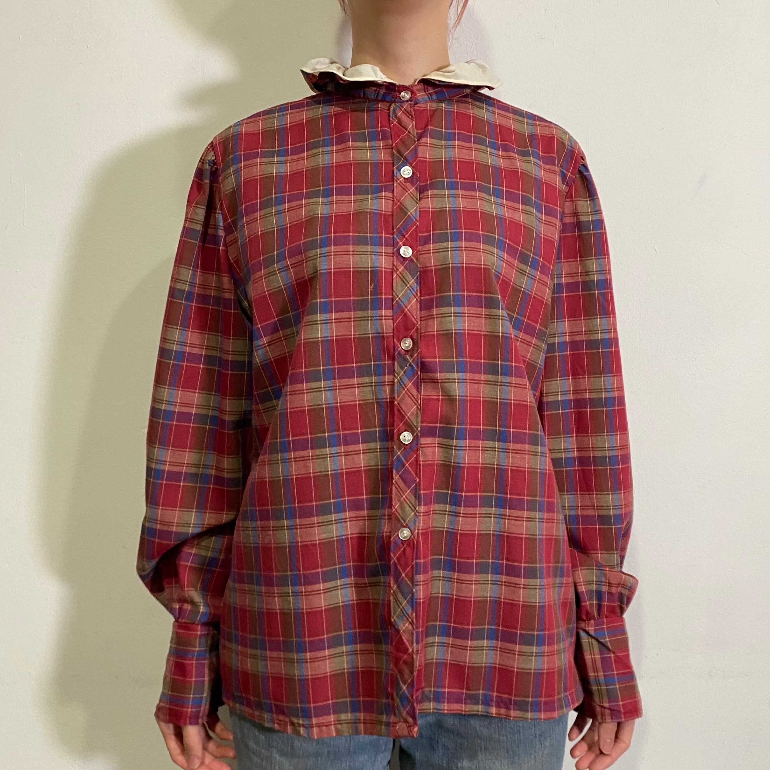 着こなしやすそうな色合いの赤チェックが可愛い、80年代頃の長袖シャツです。
