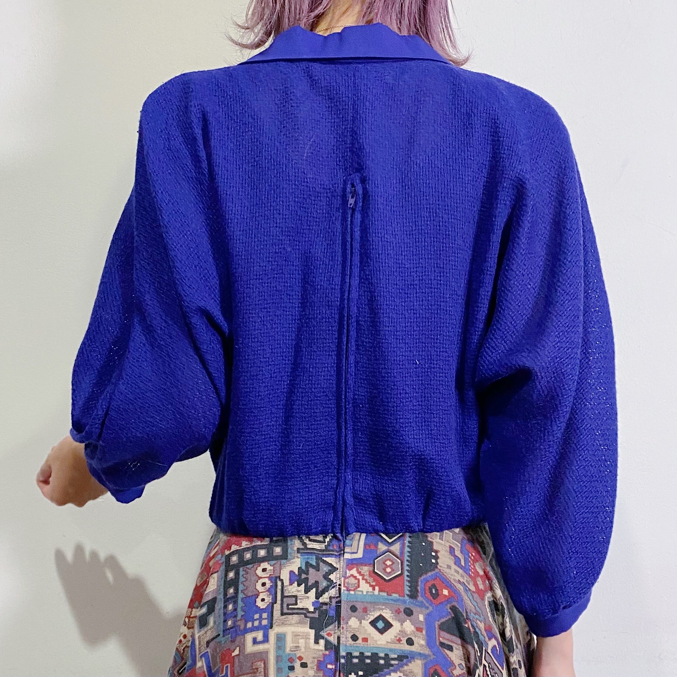 鮮やかなブルーとネイティブ柄の切り替えが可愛い、80年代のシャツワンピースです。