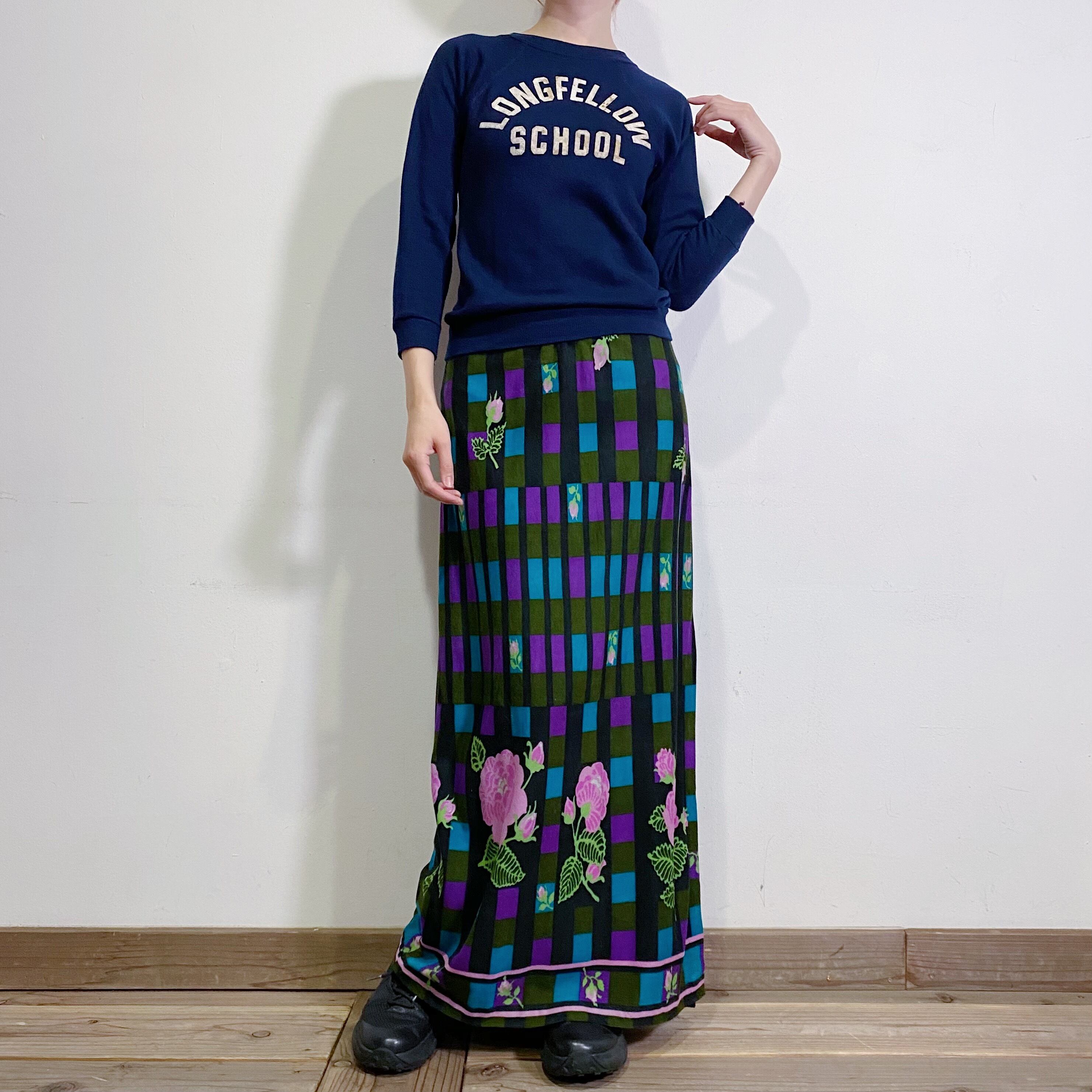 70s flower printed long skirt