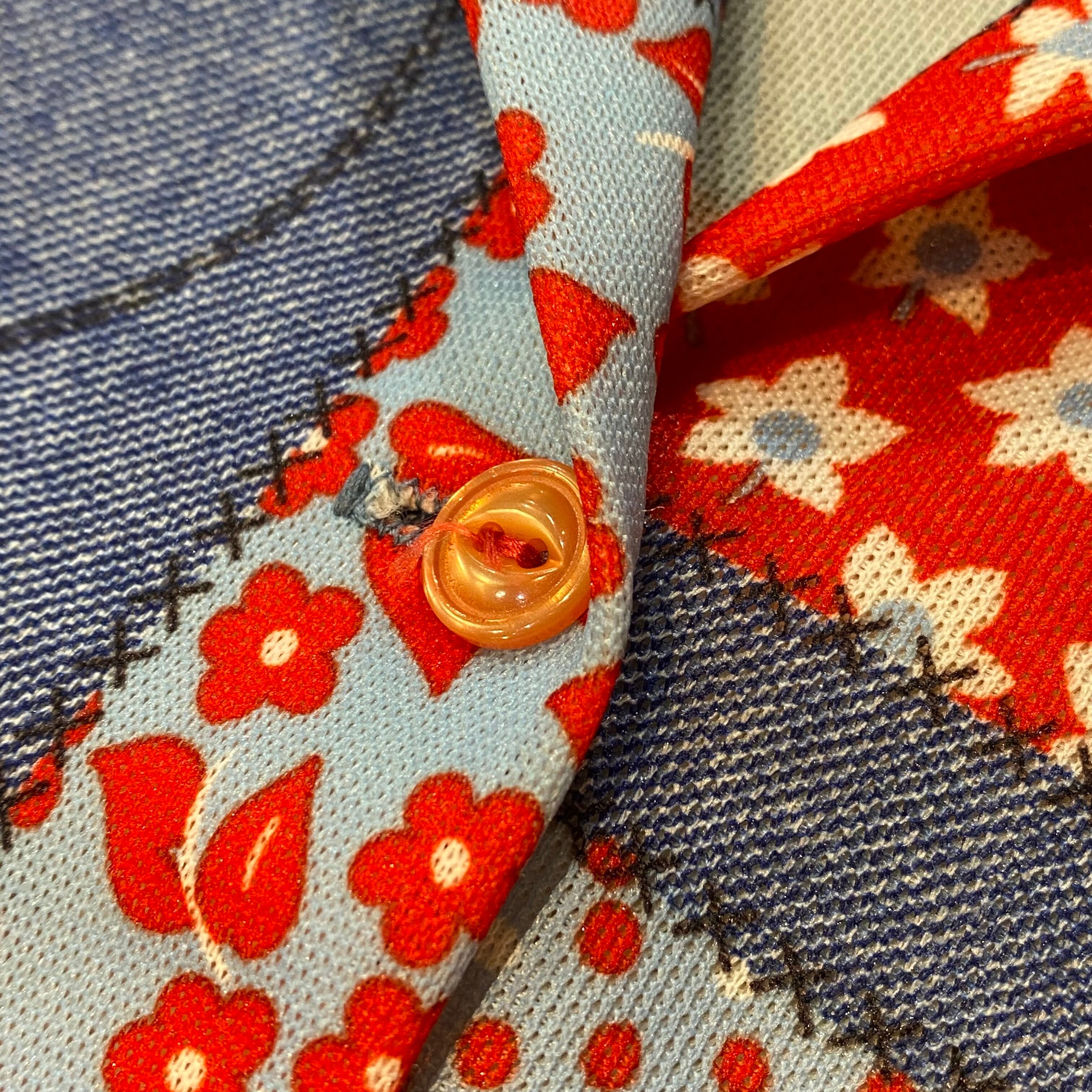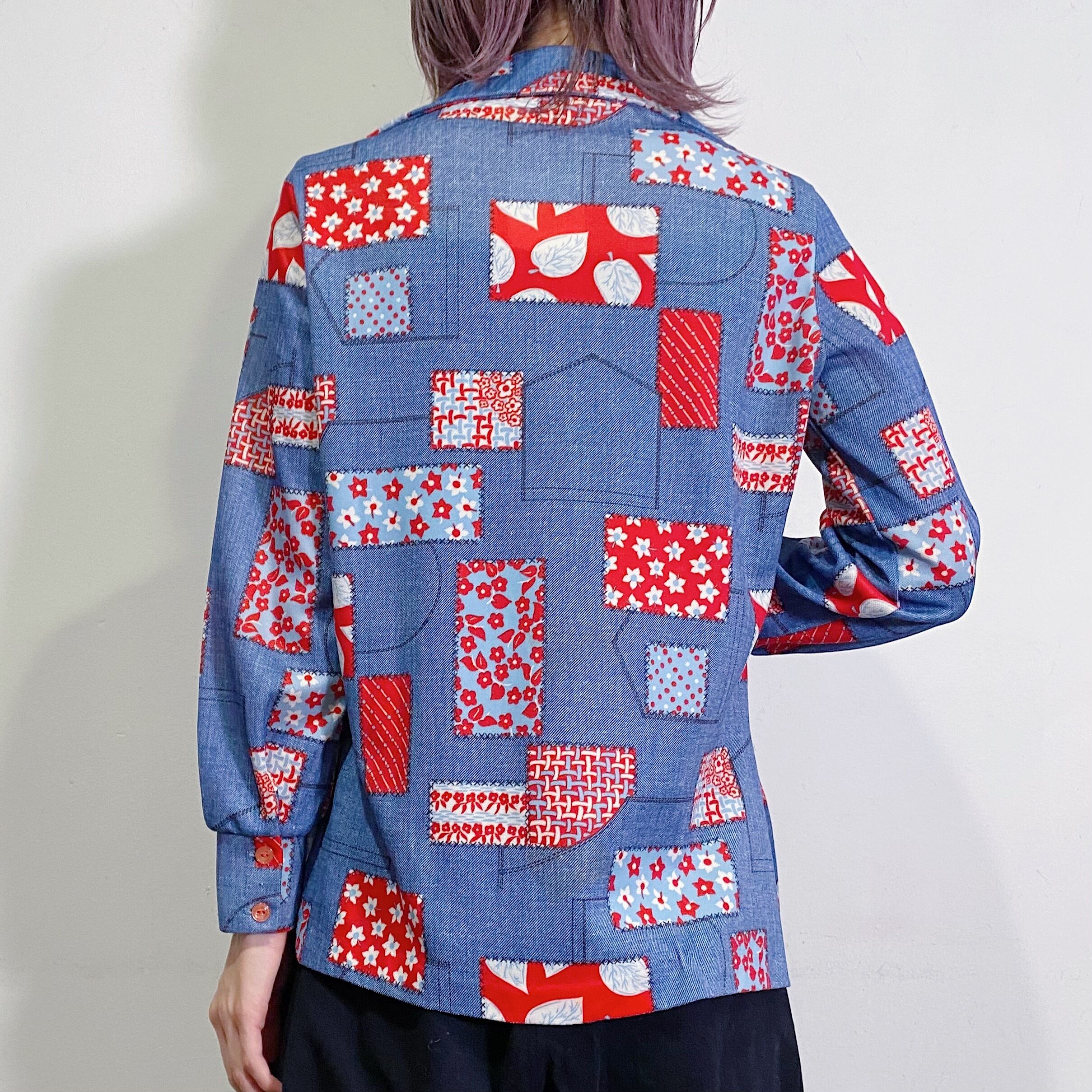 青と赤の組み合わせが可愛い、70年代の長袖シャツです。