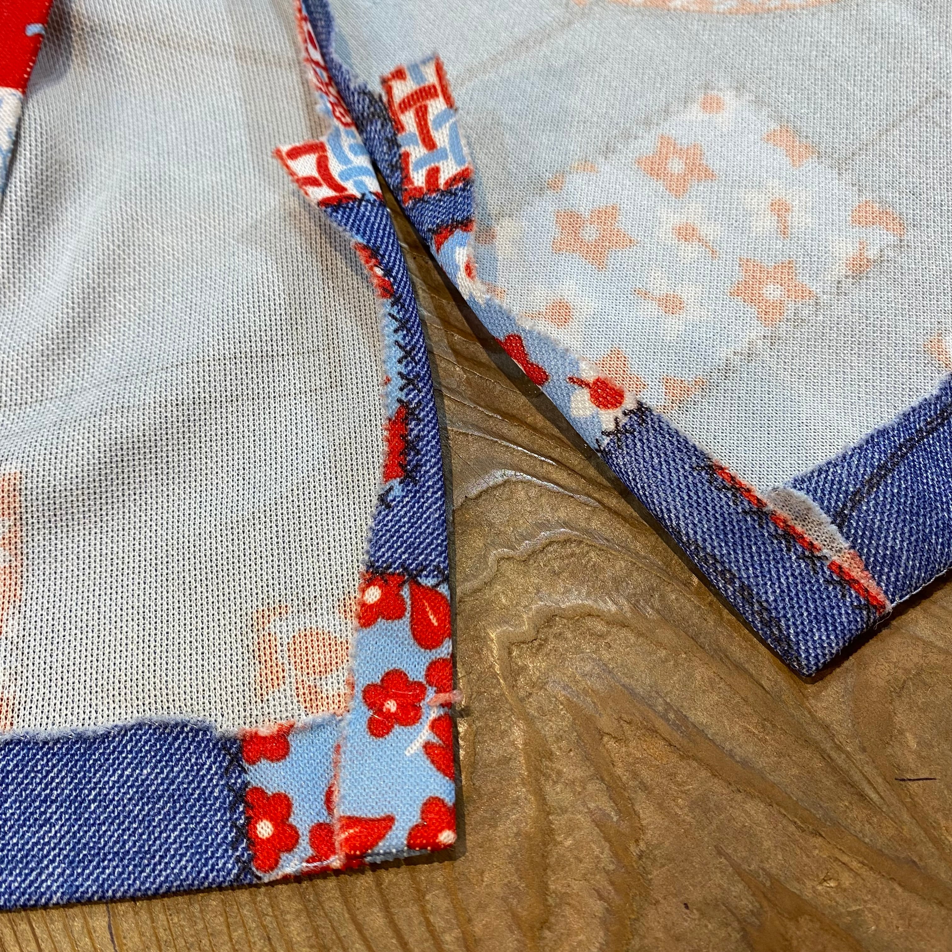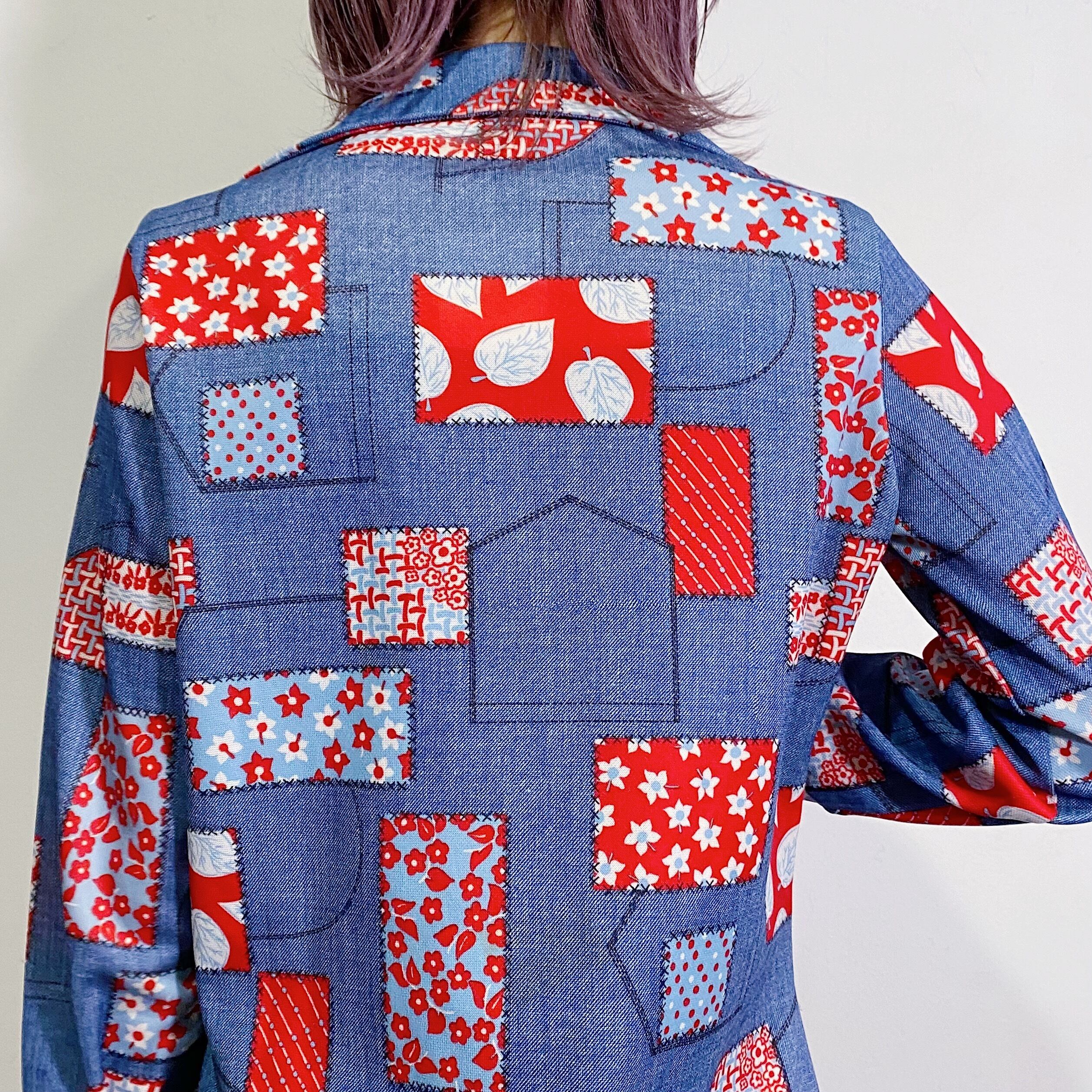 パッチワークプリントに、70sらしい大きな襟がとってもキュート。