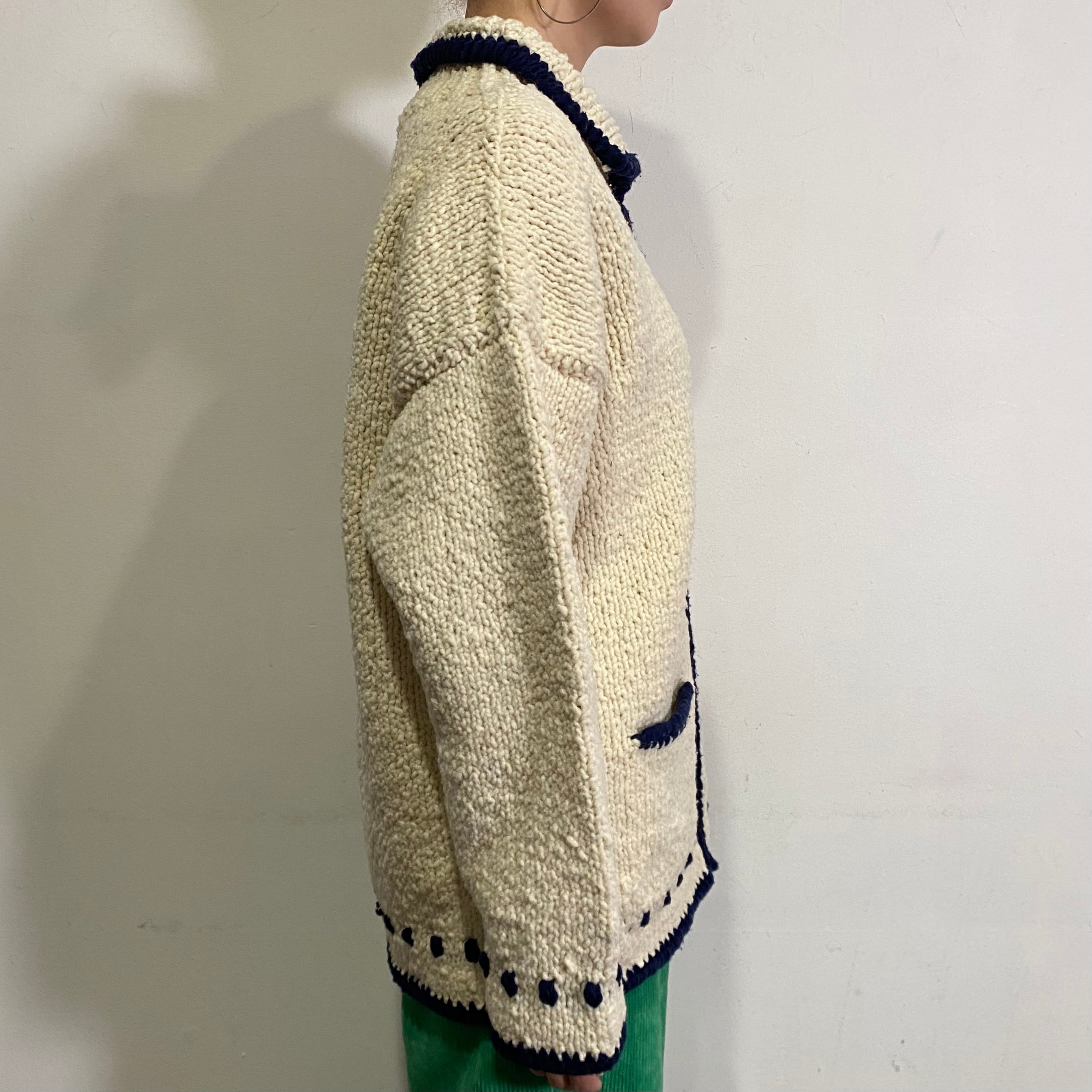 エクアドル製の手編みのニットカーディガンです。