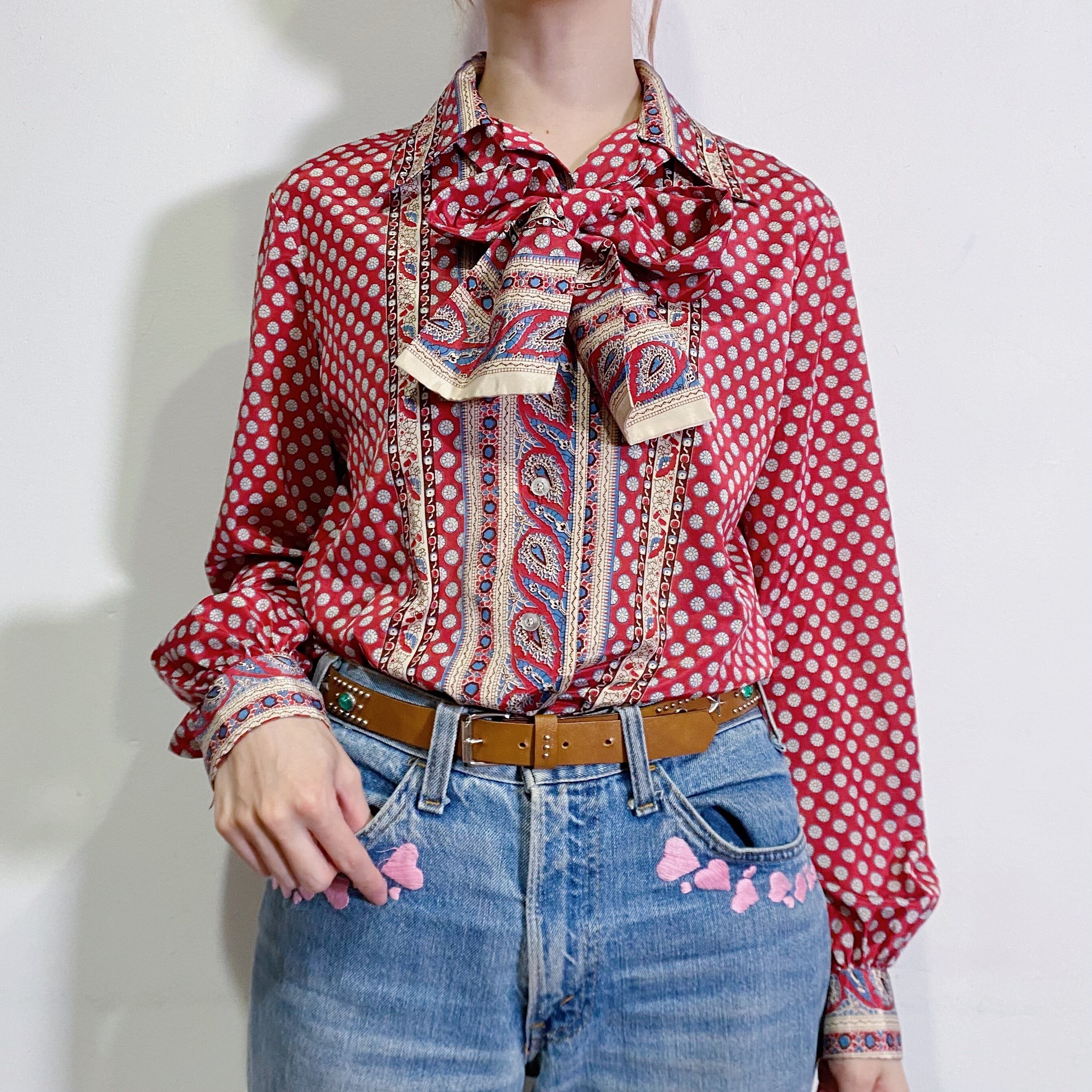 ドット柄のようにお花がプリントされて可愛い70年代のシャツです。