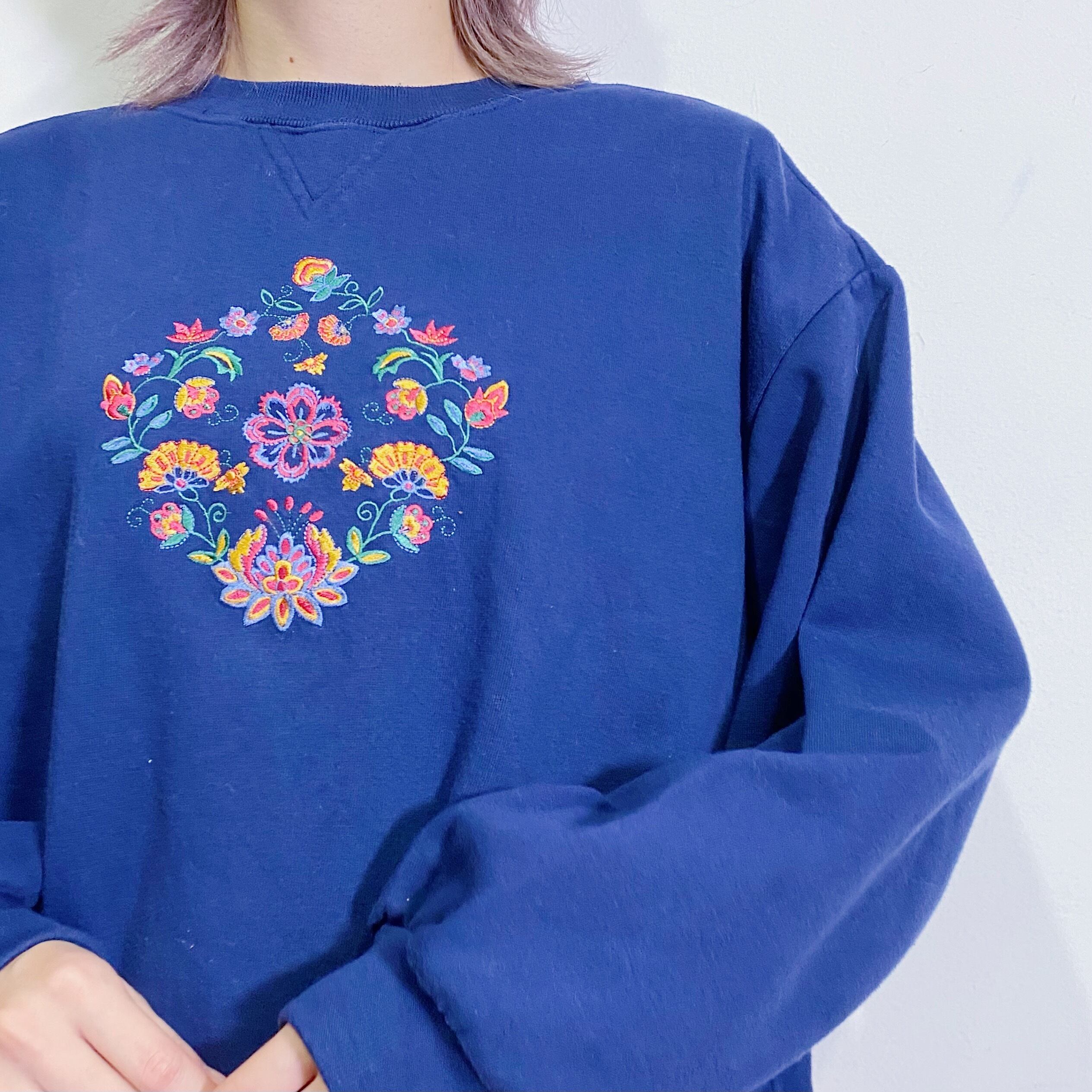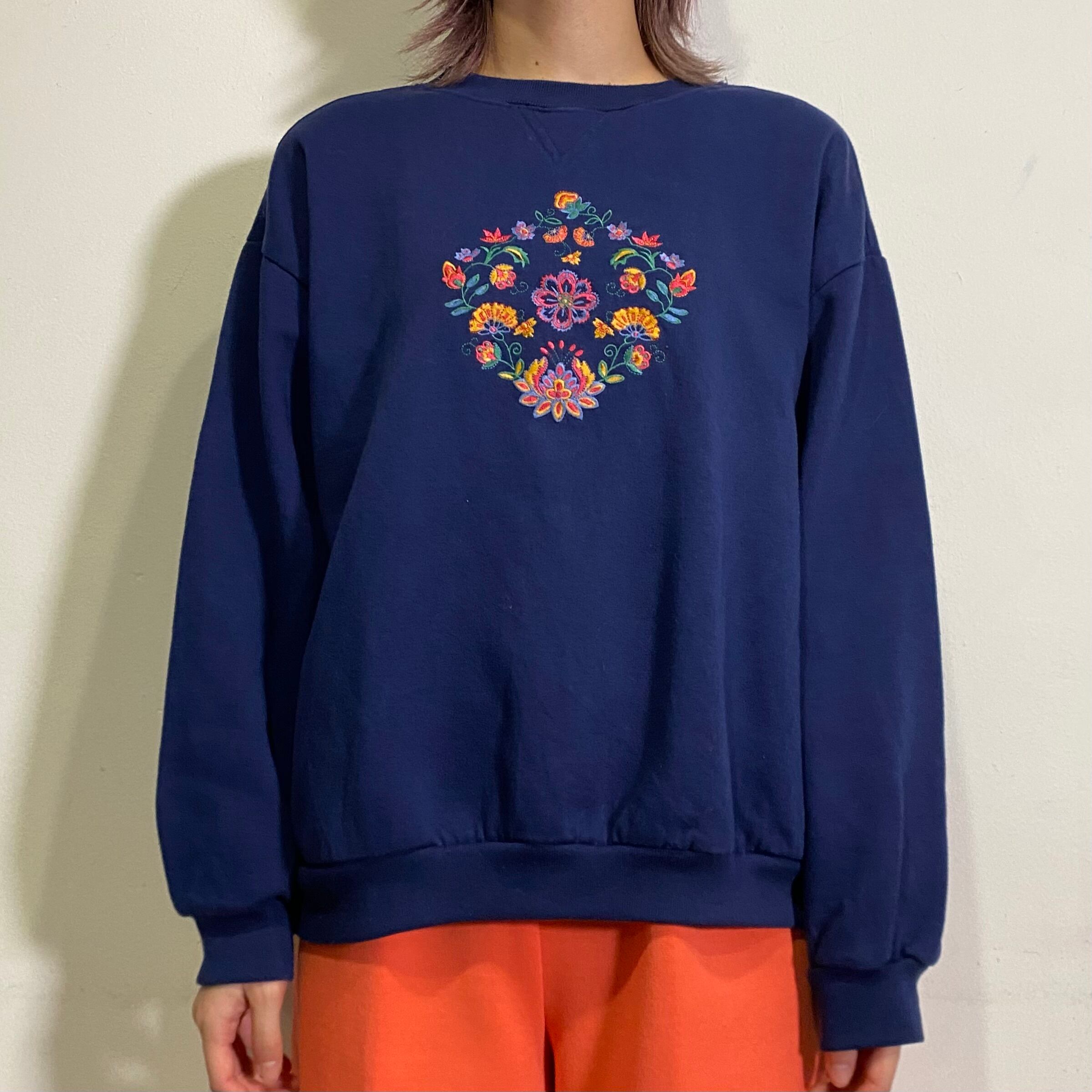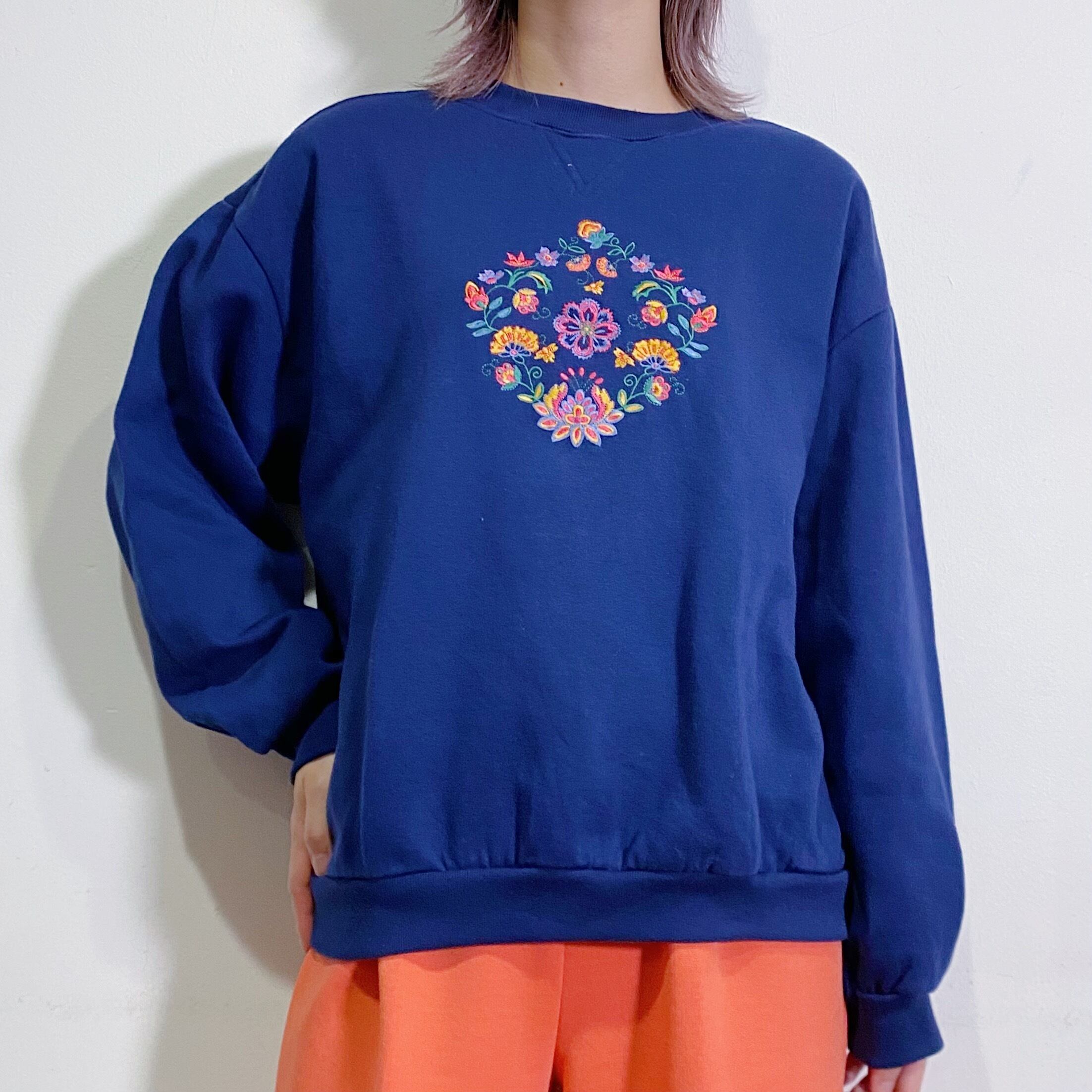 カラフルなお花の刺繍が可愛い、80年代のスウェットです。