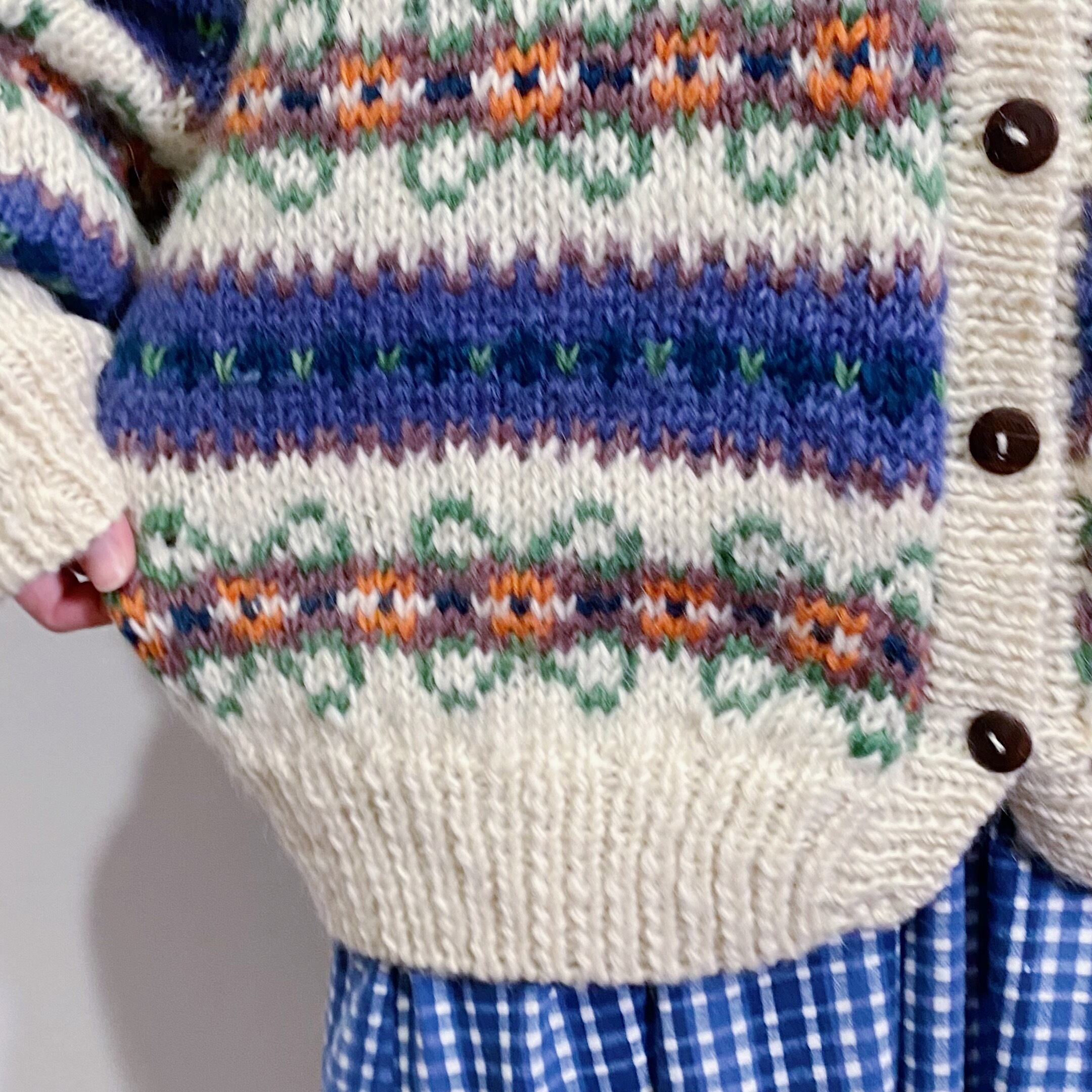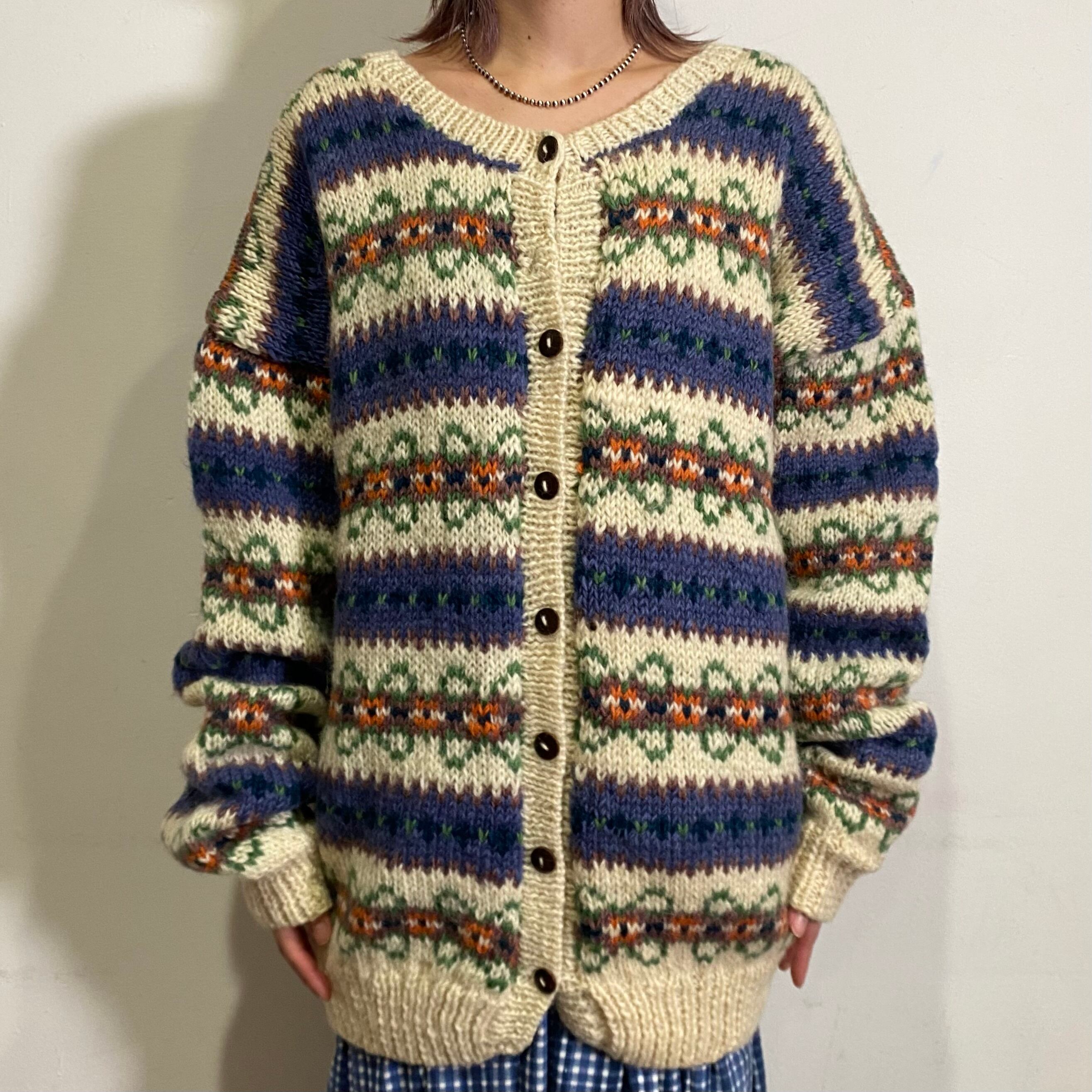 ホワイトとブルーのボーダー柄が可愛い、ウールニットカーディガンです。