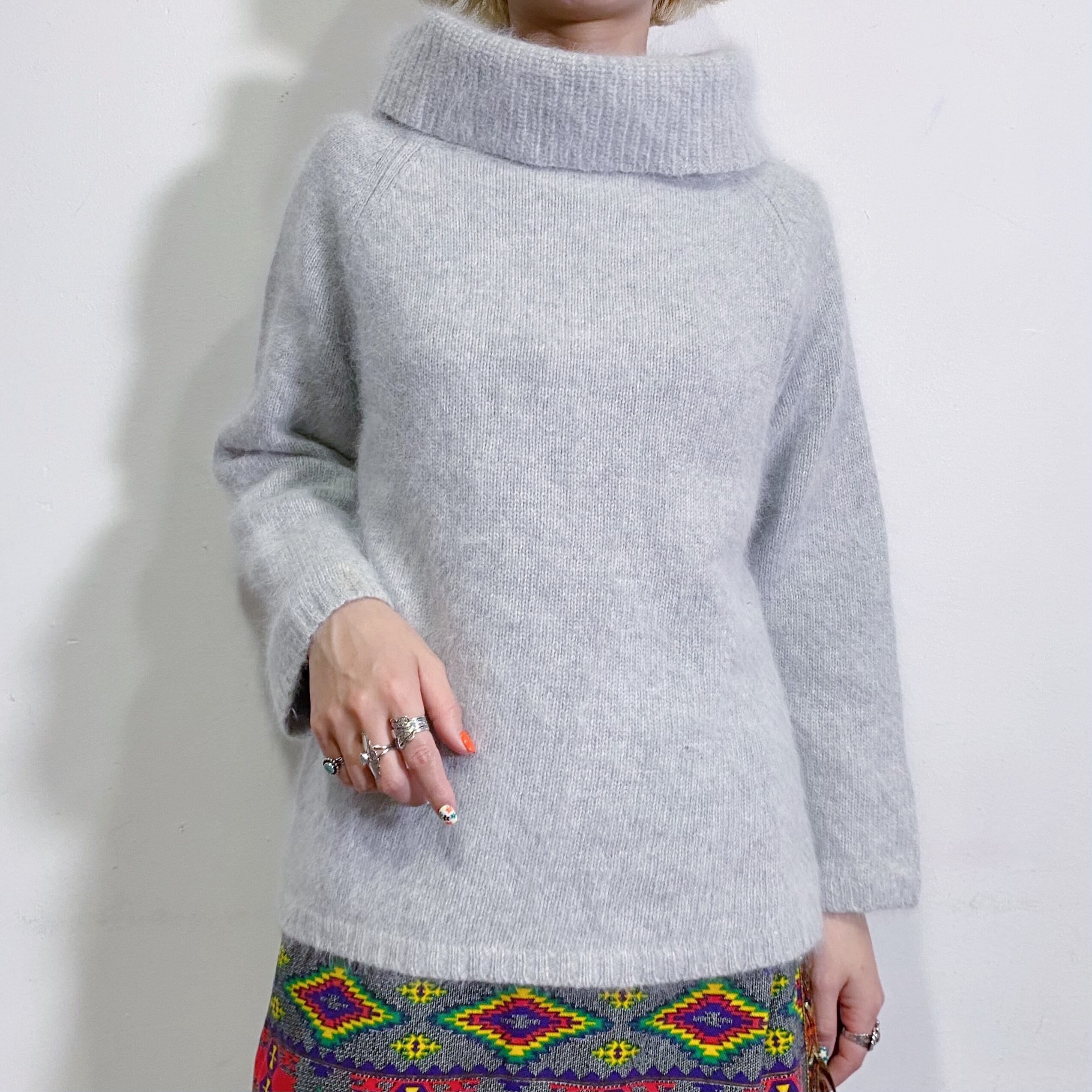 毛足の長いアンゴラファーのハイネックニットセーターです。