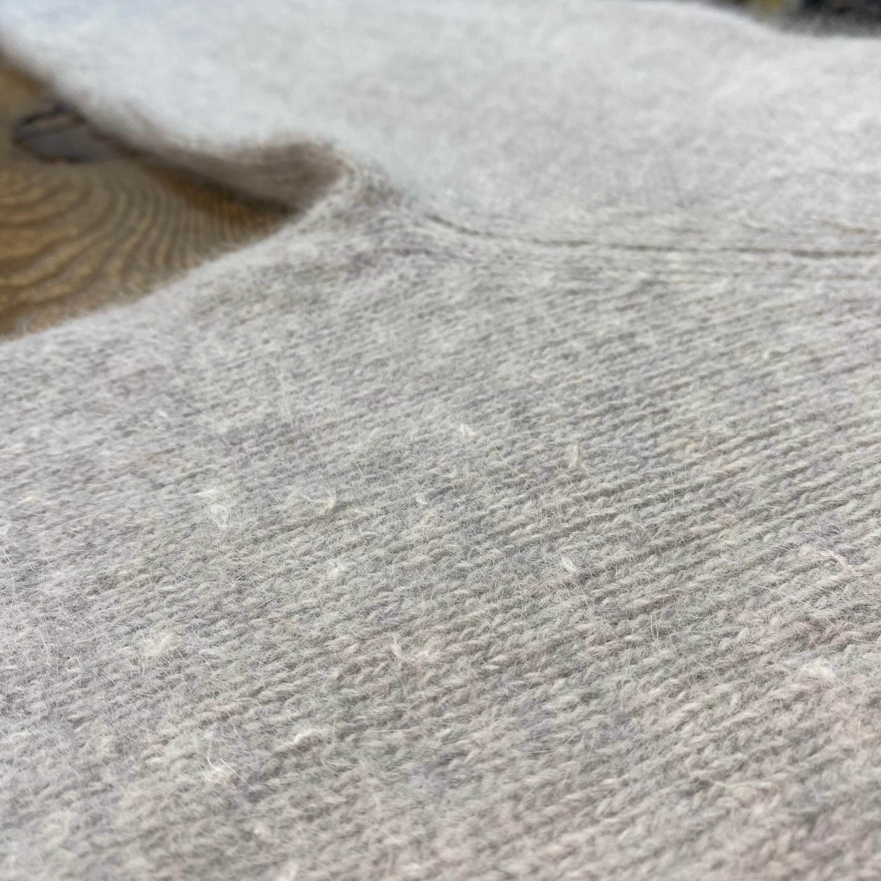 ライトグレーで着こなしやすく、着用写真のような柄スカートと相性良く着られるのが嬉しいですね。
